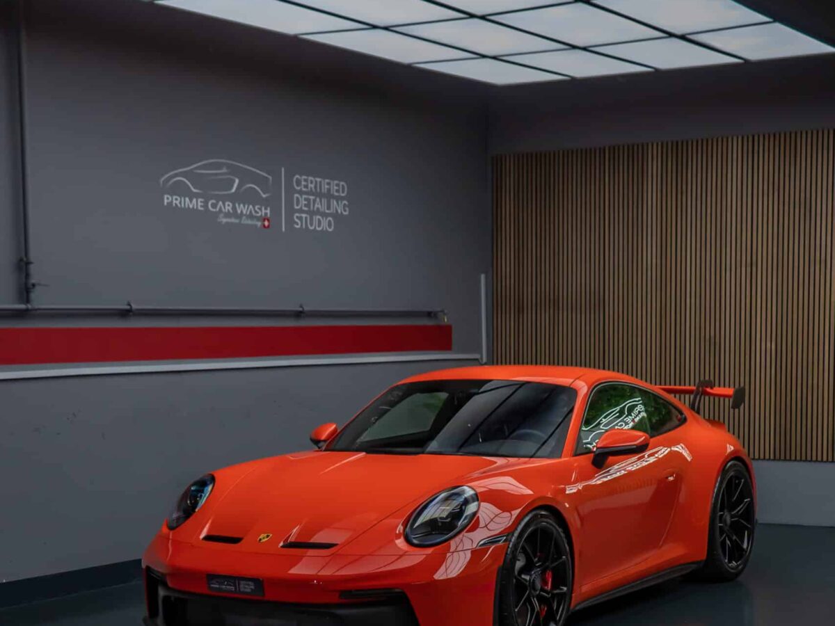 An diesem 992 GT3 haben wir die Frontpartie mit der XPEL Ultimate Plus Lackschutzfolie optimal geschützt. Zu Beginn wurde das Fahrzeug gründlich gewaschen, um eine saubere Basis für die Installation zu schaffen. Anschliessend wurde der Lack sorgfältig und porentief gereinigt, um selbst kleinste Verunreinigungen zu entfernen, die beim Waschen nicht vollständig beseitigt werden konnten. Danach wurden die von uns bearbeiteten und passgenau zugeschnittenen Schablonen auf das Fahrzeug aufgebracht, um einen präzisen und nahezu unsichtbaren Schutz zu gewährleisten.