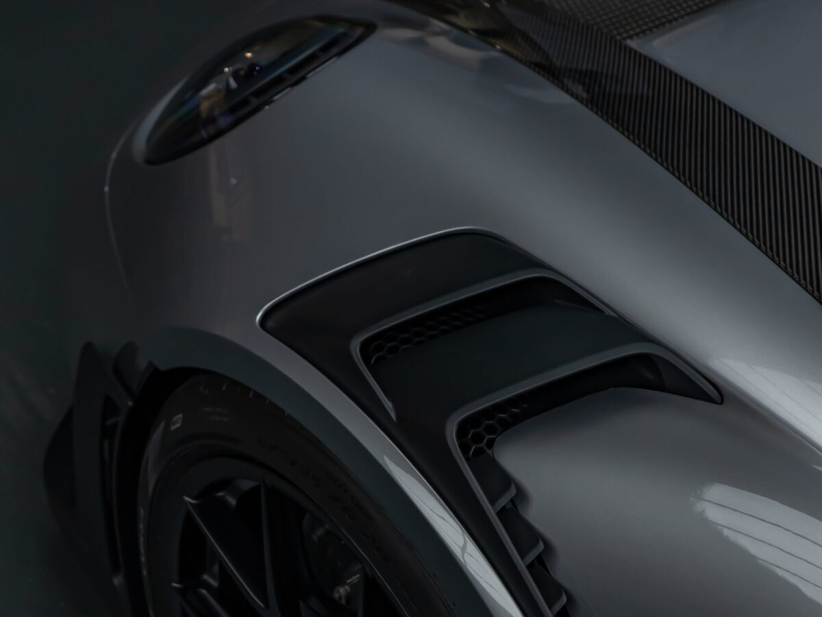 Die glasklare, selbstheilende Folie schützt den hochwertigen GT-Silber-Metallic-Lack zuverlässig vor Steinschlägen, Kratzern, Insektenresten und Umwelteinflüssen, ohne das originale Finish zu verändern. Jede Linie, jede Kante des GT3 RS wurde mit höchster Präzision foliert – für eine nahezu unsichtbare Optik und kompromisslosen Werterhalt.