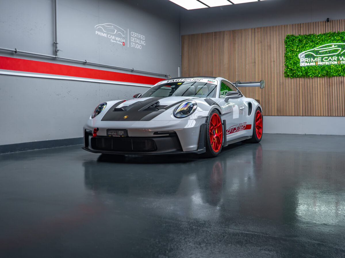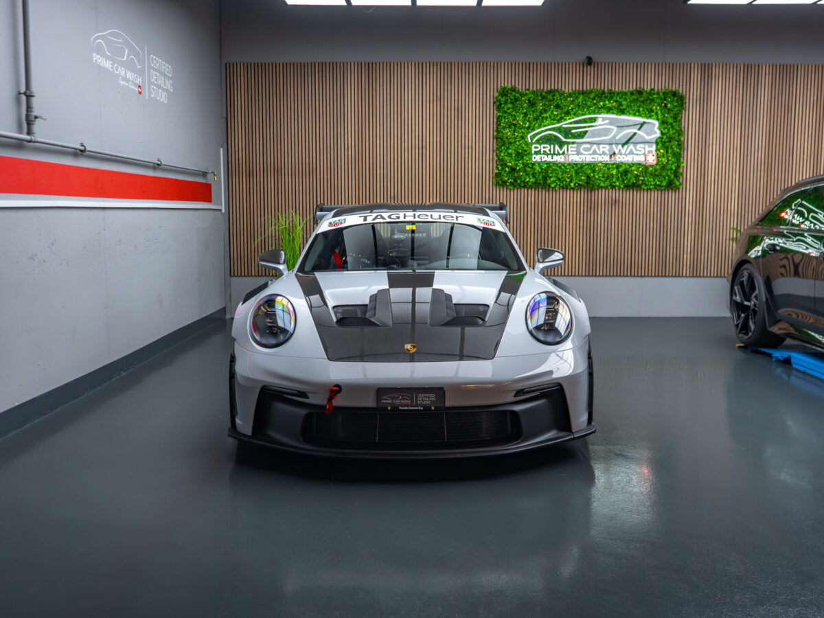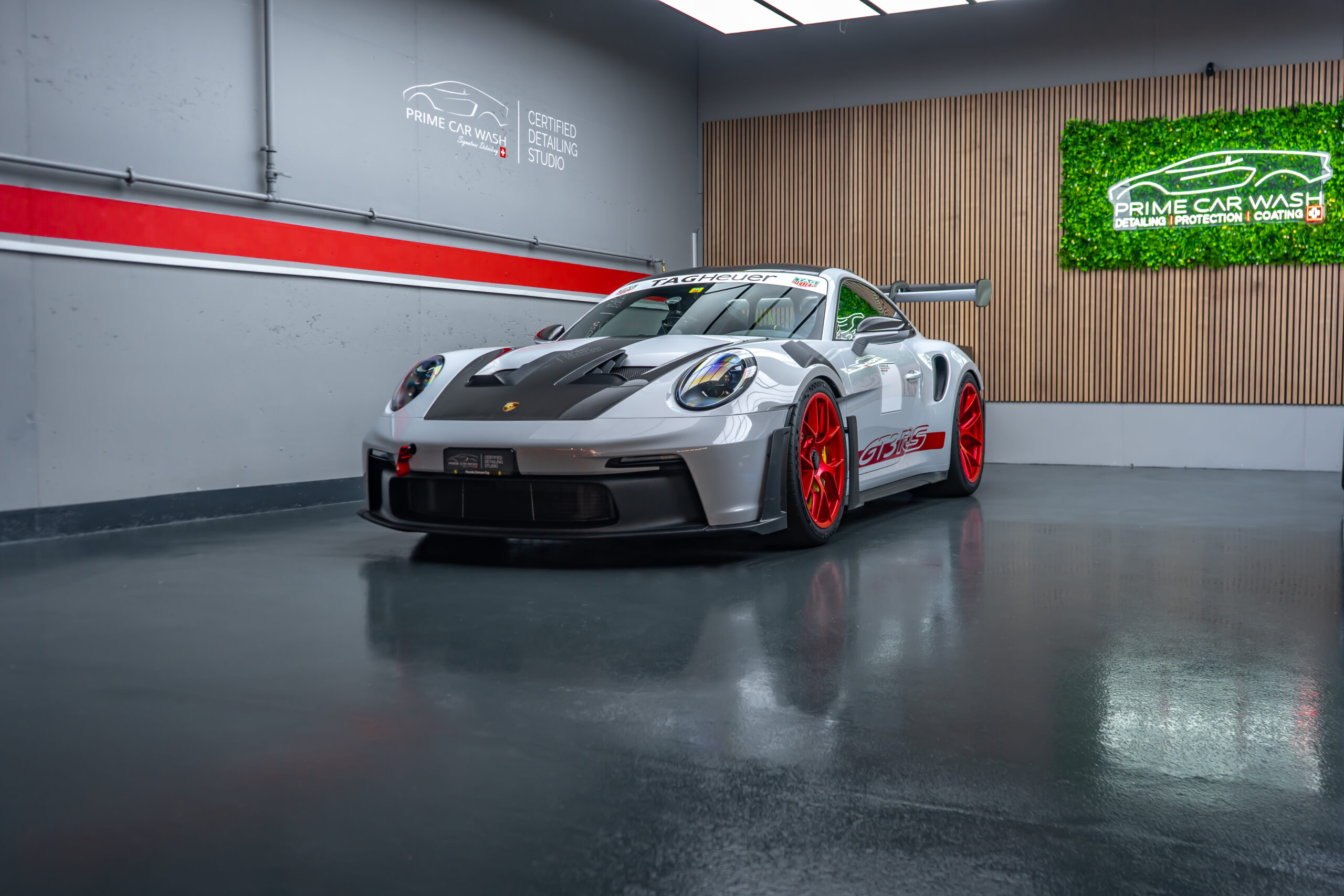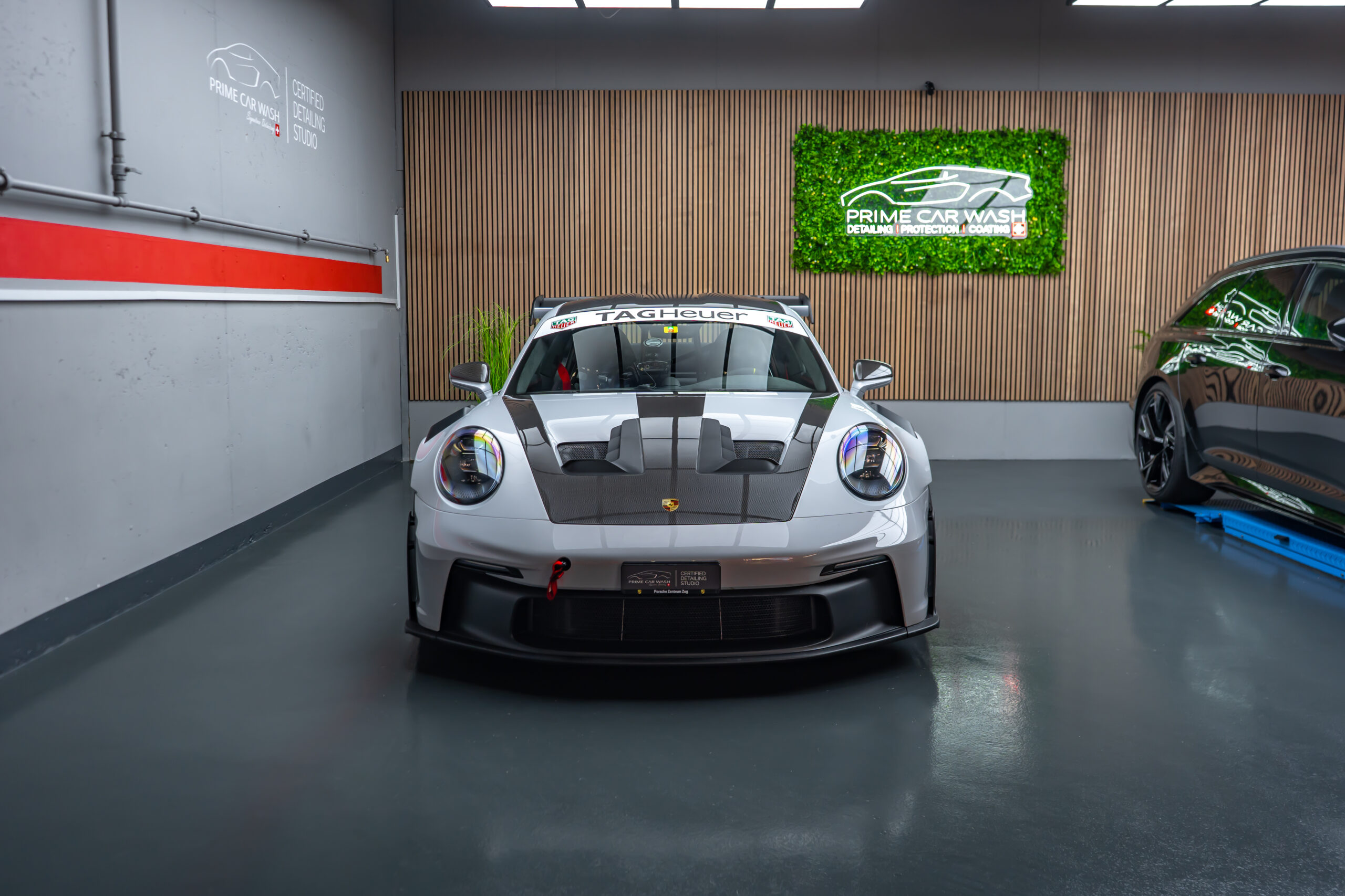 Diesen 992 GT3 RS Weissach haben wir direkt nach der abholung beim PZ komplett mit der Selbstheilenden Steinschlag / Lackschutzfolie geschützt. Im Gegensatz zu herkömmlichen Folien bietet unsere Folie mit einer Dicke von 200μ maximalen Schutz, selbst auf der Rennstrecke. Darüber hinaus wurde das gesamte Fahrzeug mit unserer Keramikbeschichtung versehen.
