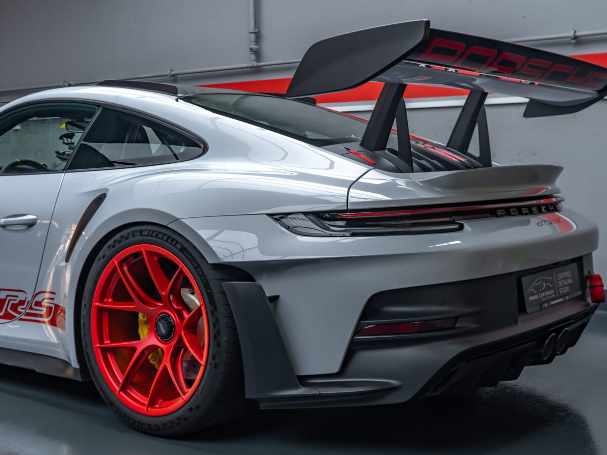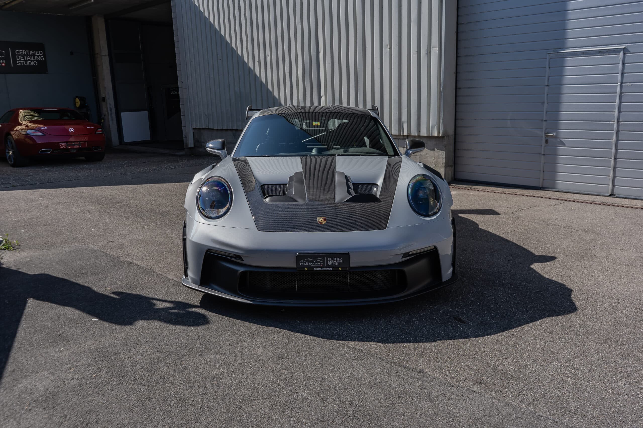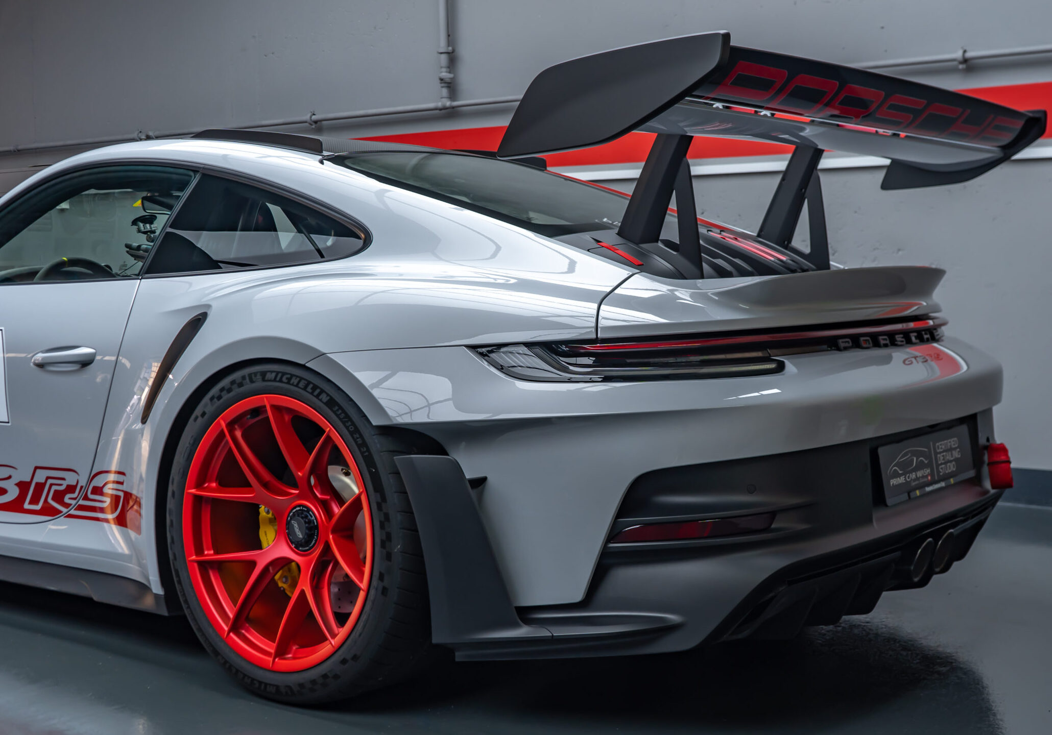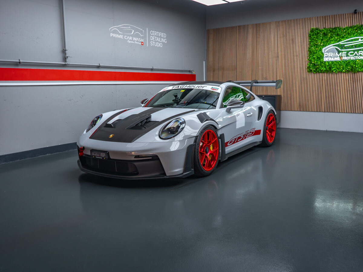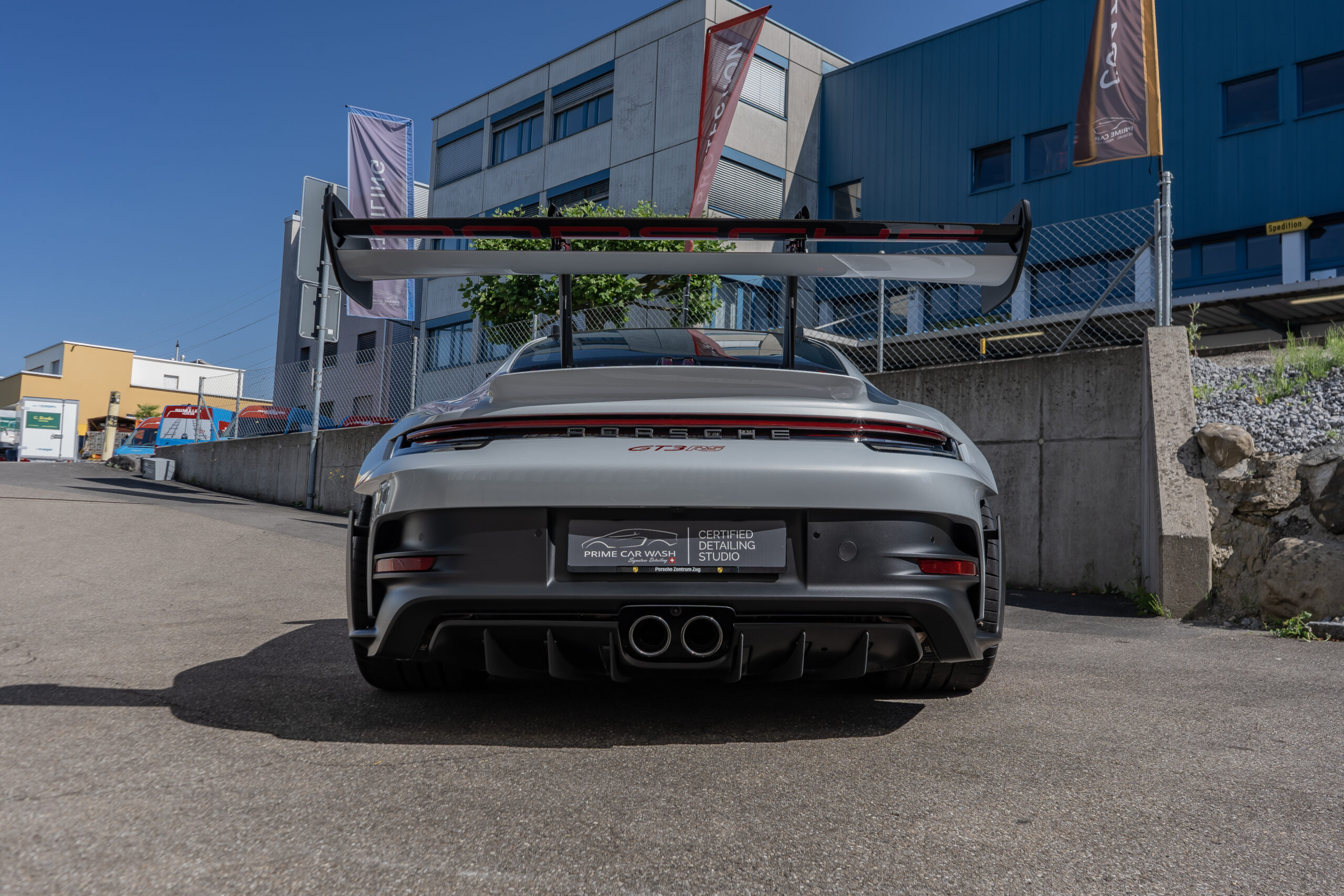 Diesen 992 GT3 RS Weissach haben wir direkt nach der abholung beim PZ komplett mit der Selbstheilenden Steinschlag / Lackschutzfolie geschützt. Im Gegensatz zu herkömmlichen Folien bietet unsere Folie mit einer Dicke von 200μ maximalen Schutz, selbst auf der Rennstrecke. Darüber hinaus wurde das gesamte Fahrzeug mit unserer Keramikbeschichtung versehen.