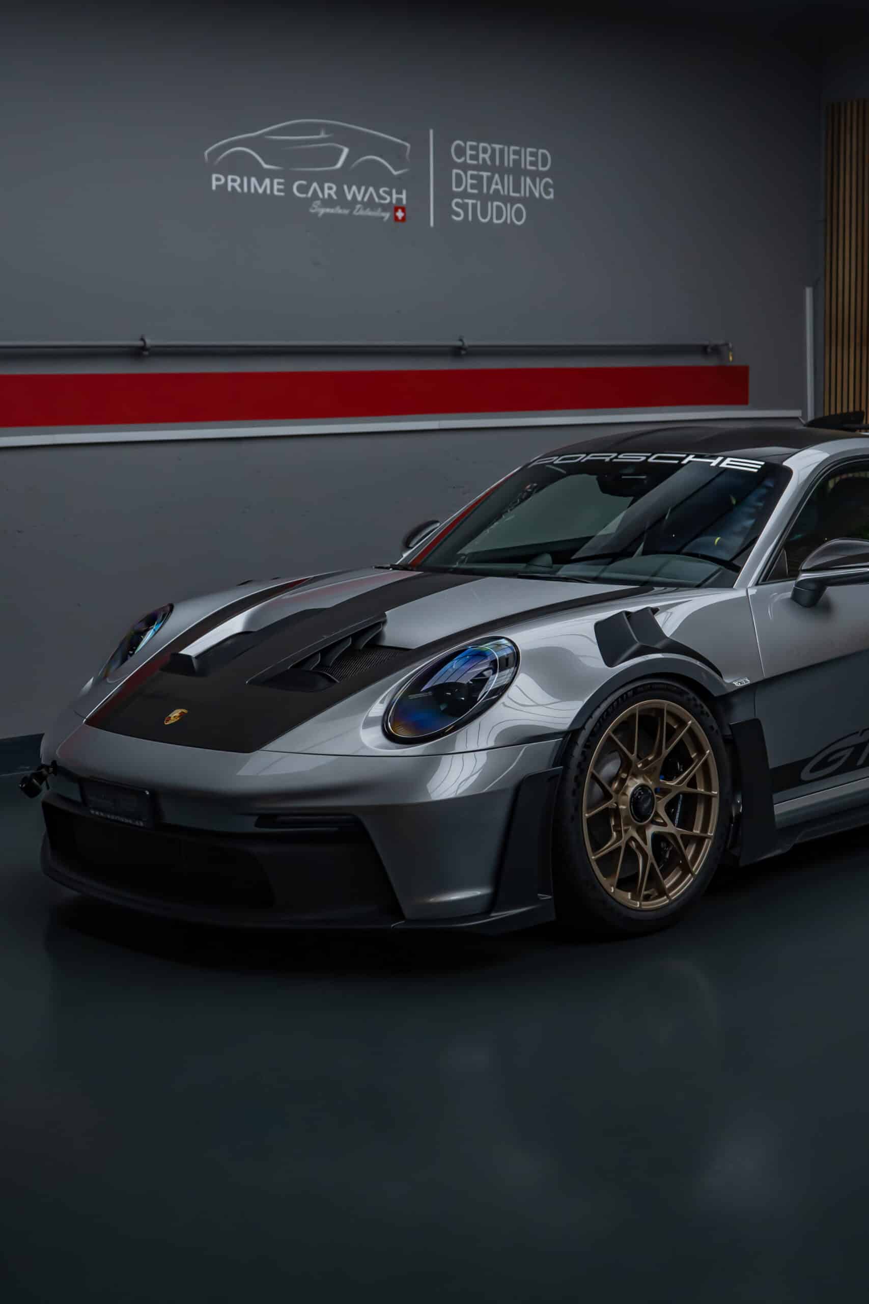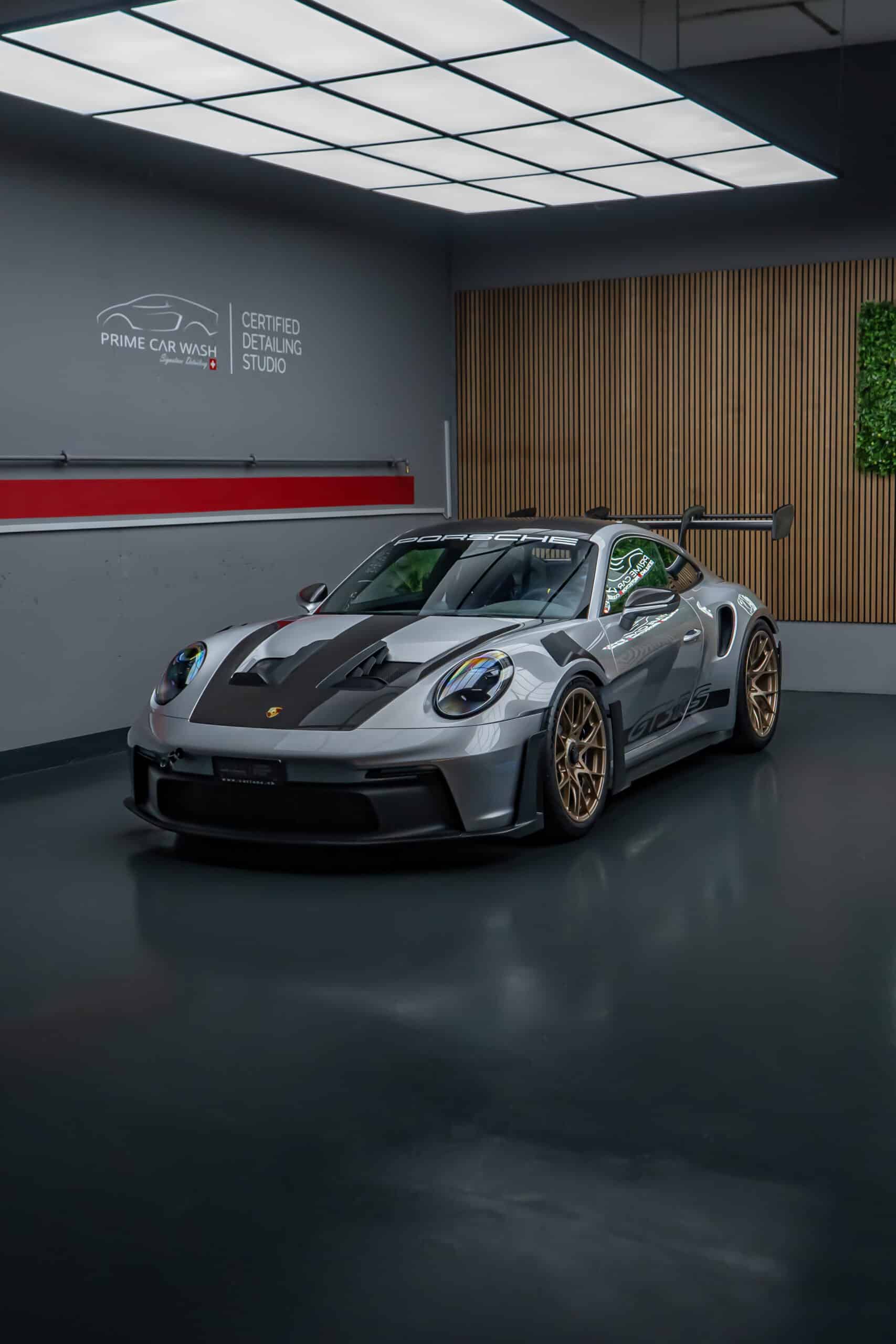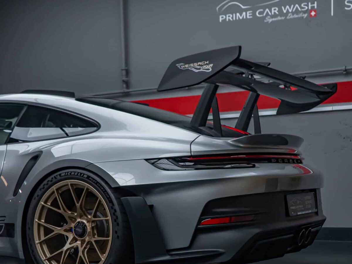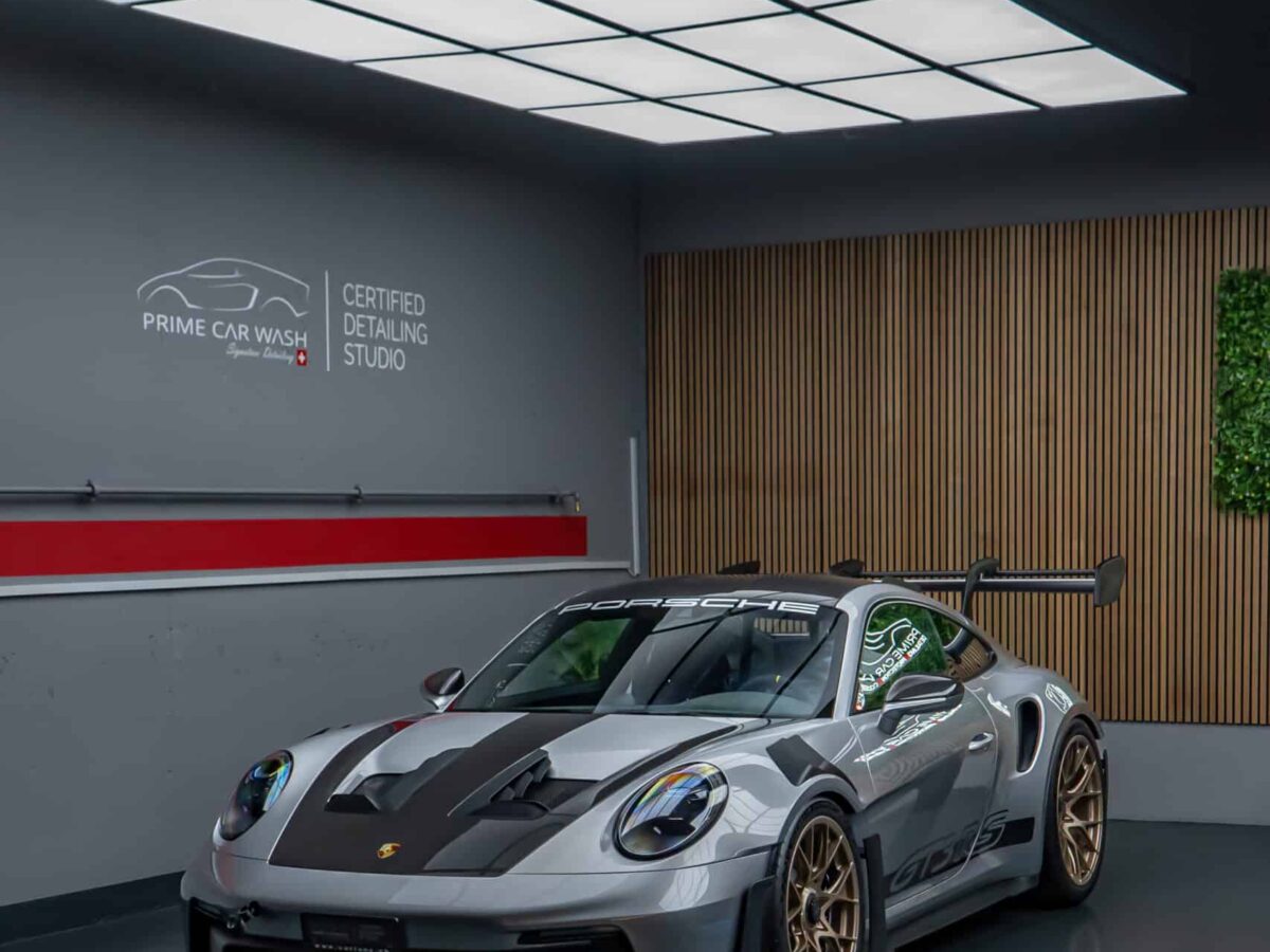 Bei diesem 992 GT3 RS Weissach haben wir die komplette Karosserie professionell mit der XPEL Ultimate Plus Lackschutzfolie versehen. Um optimale Bedingungen für die Folienmontage zu schaffen, wurde das Fahrzeug zunächst gründlich gewaschen. Im Anschluss daran erfolgte eine tiefgehende Lackreinigung, bei der auch feinste Rückstände entfernt wurden, die durch die Vorwäsche nicht vollständig beseitigt werden konnten. Danach brachten wir unsere präzise angepassten Schablonen passgenau auf die Karosserie an, um einen langlebigen und nahezu unsichtbaren Schutz des Lacks zu erzielen.