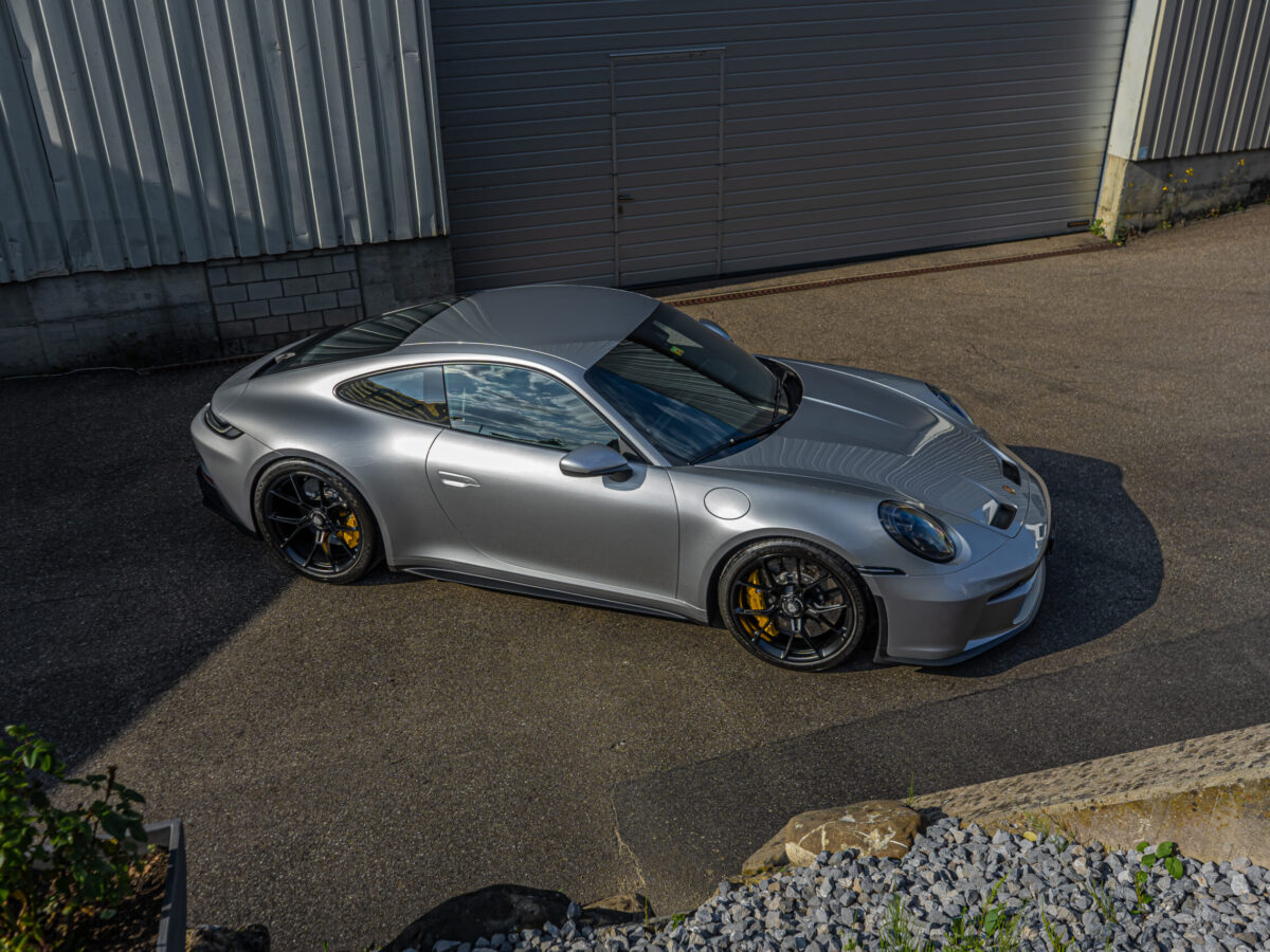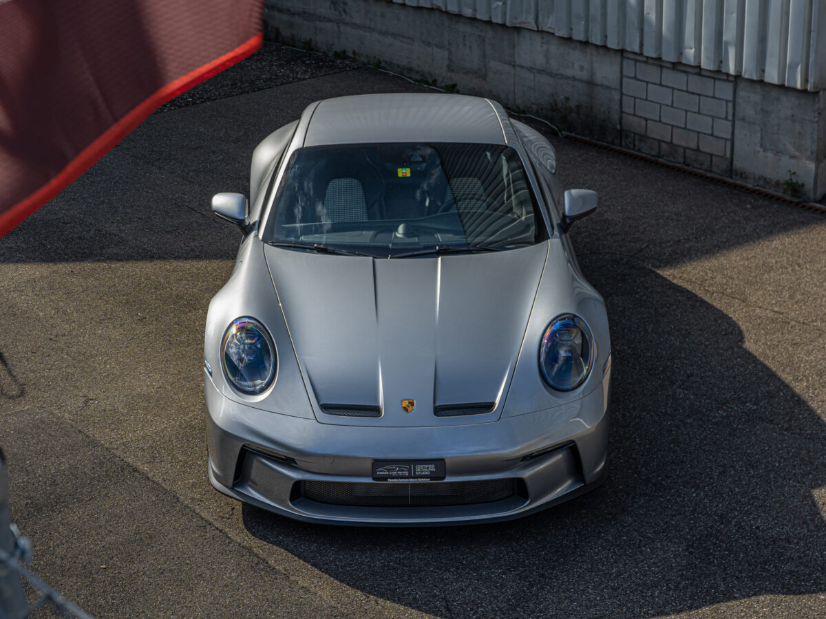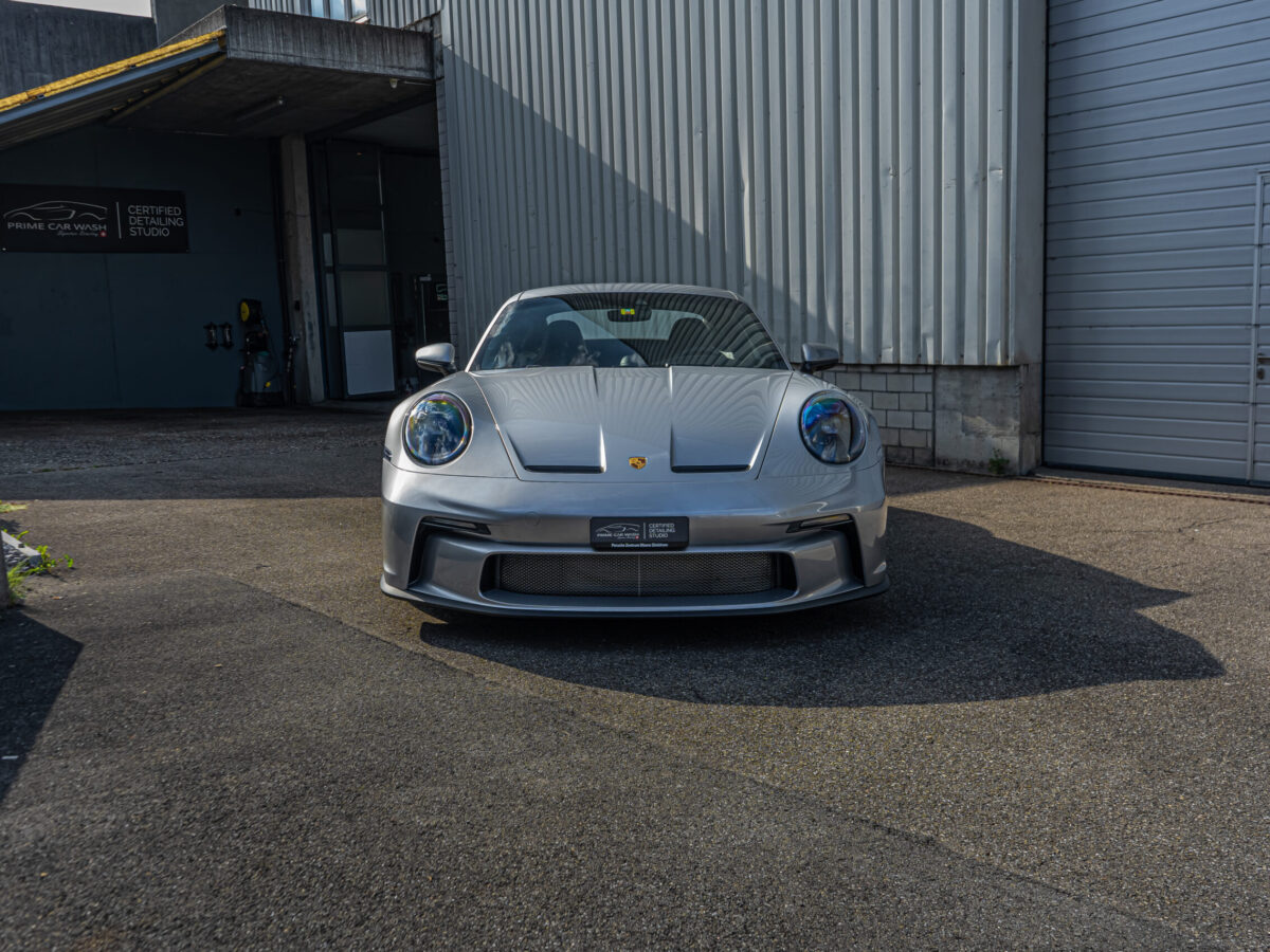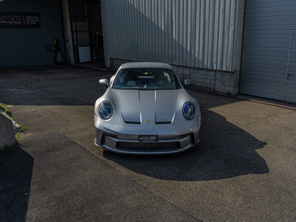 Dieser 992 GT3 Touring wurde vor seiner Fahrt nach Südfrankreich im Frontbereich geschützt. Nach der Rückkehr in die Schweiz haben wir das Fahrzeug sorgfältig von Hand gewaschen und auf mögliche Beschädigungen und Kratzer überprüft. Dank unserer Lackschutzfolie blieb der Lack in einwandfreiem Zustand, ohne auch nur einen einzigen Steinschlag aufzuweisen.