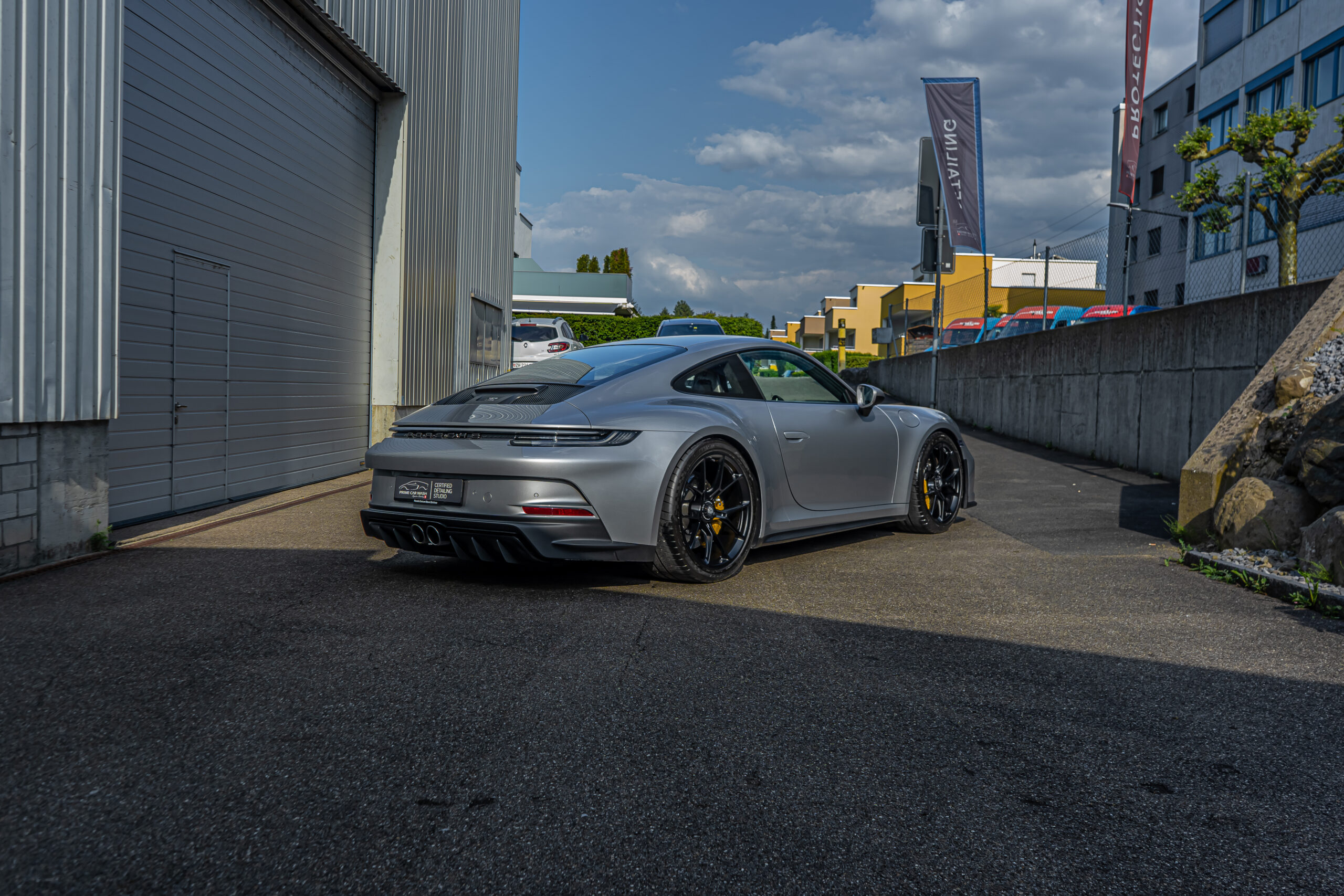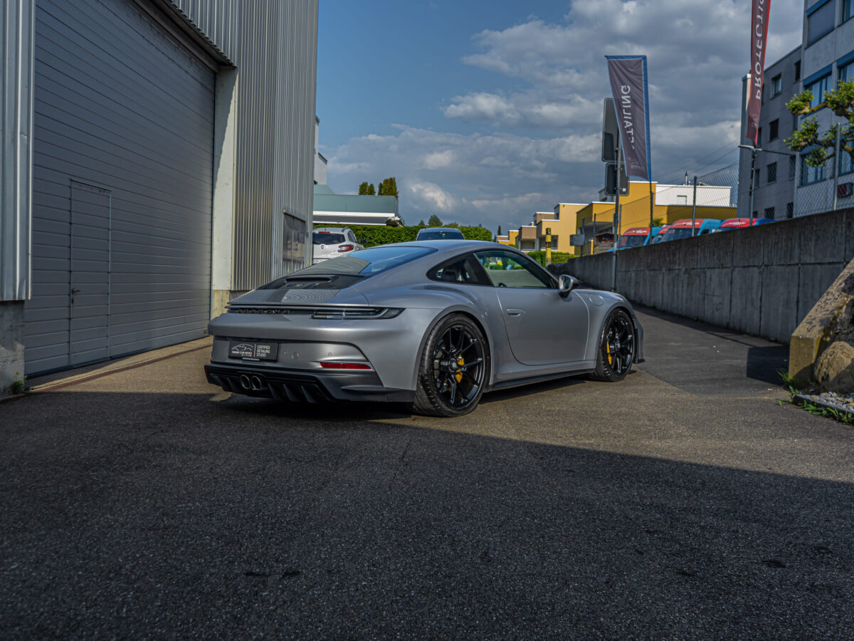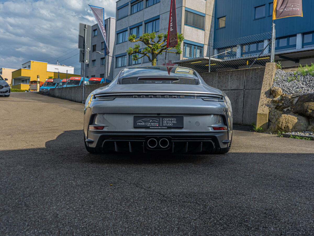 Dieser 992 GT3 Touring wurde vor seiner Fahrt nach Südfrankreich im Frontbereich geschützt. Nach der Rückkehr in die Schweiz haben wir das Fahrzeug sorgfältig von Hand gewaschen und auf mögliche Beschädigungen und Kratzer überprüft. Dank unserer Lackschutzfolie blieb der Lack in einwandfreiem Zustand, ohne auch nur einen einzigen Steinschlag aufzuweisen.