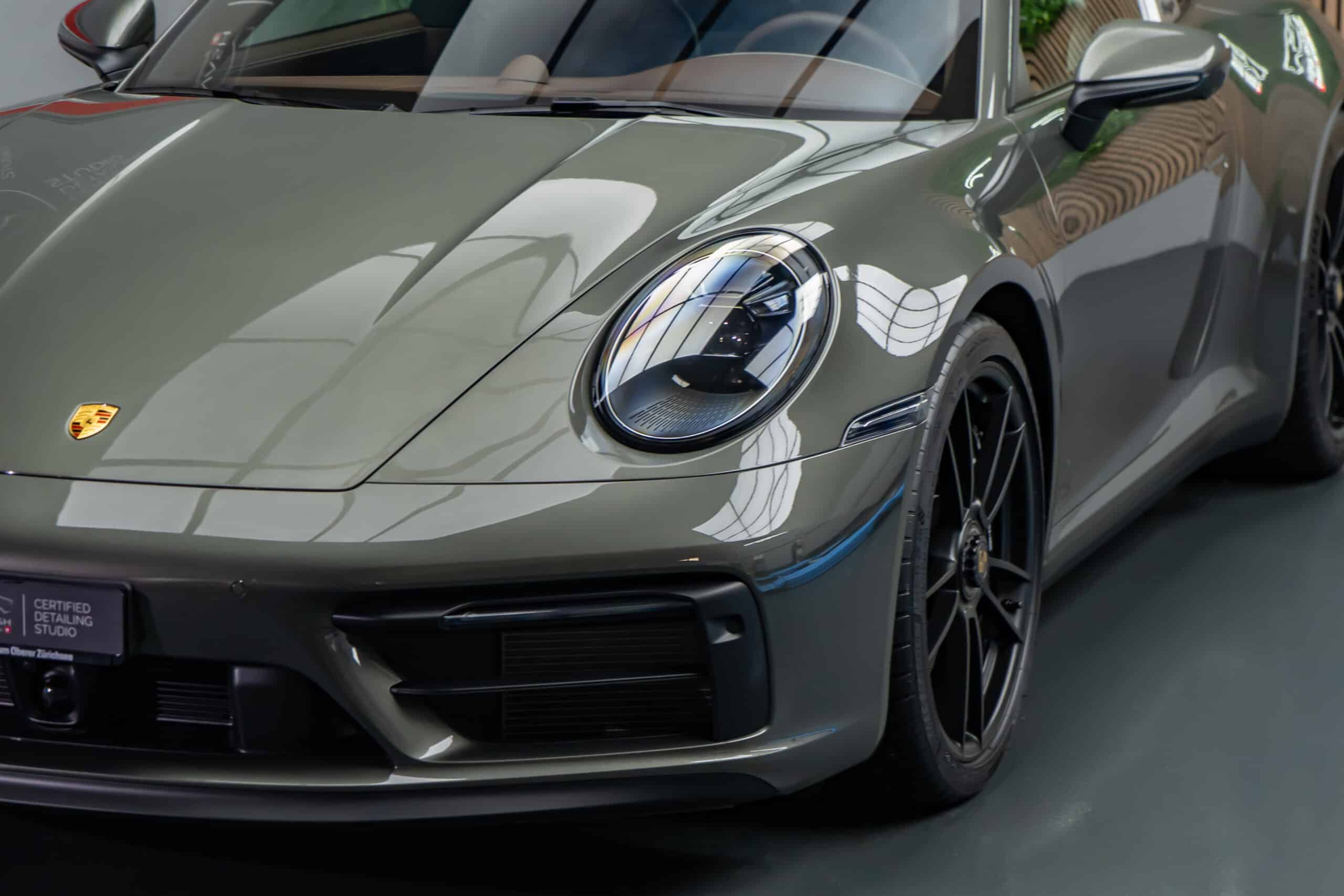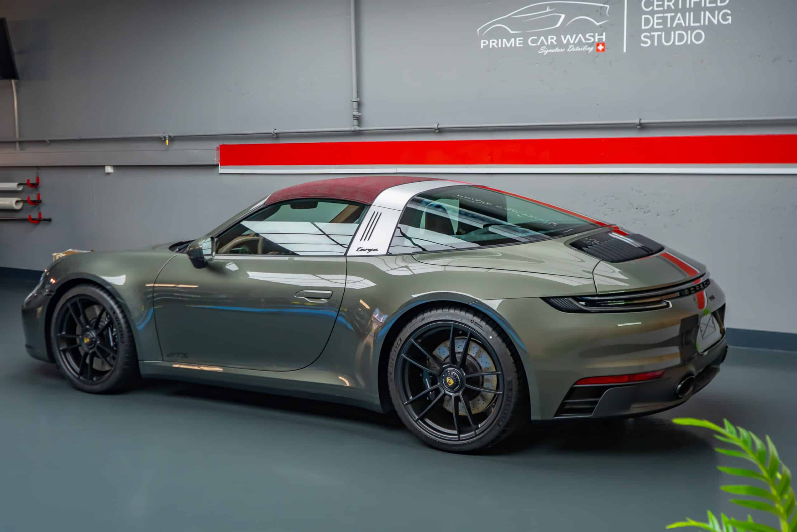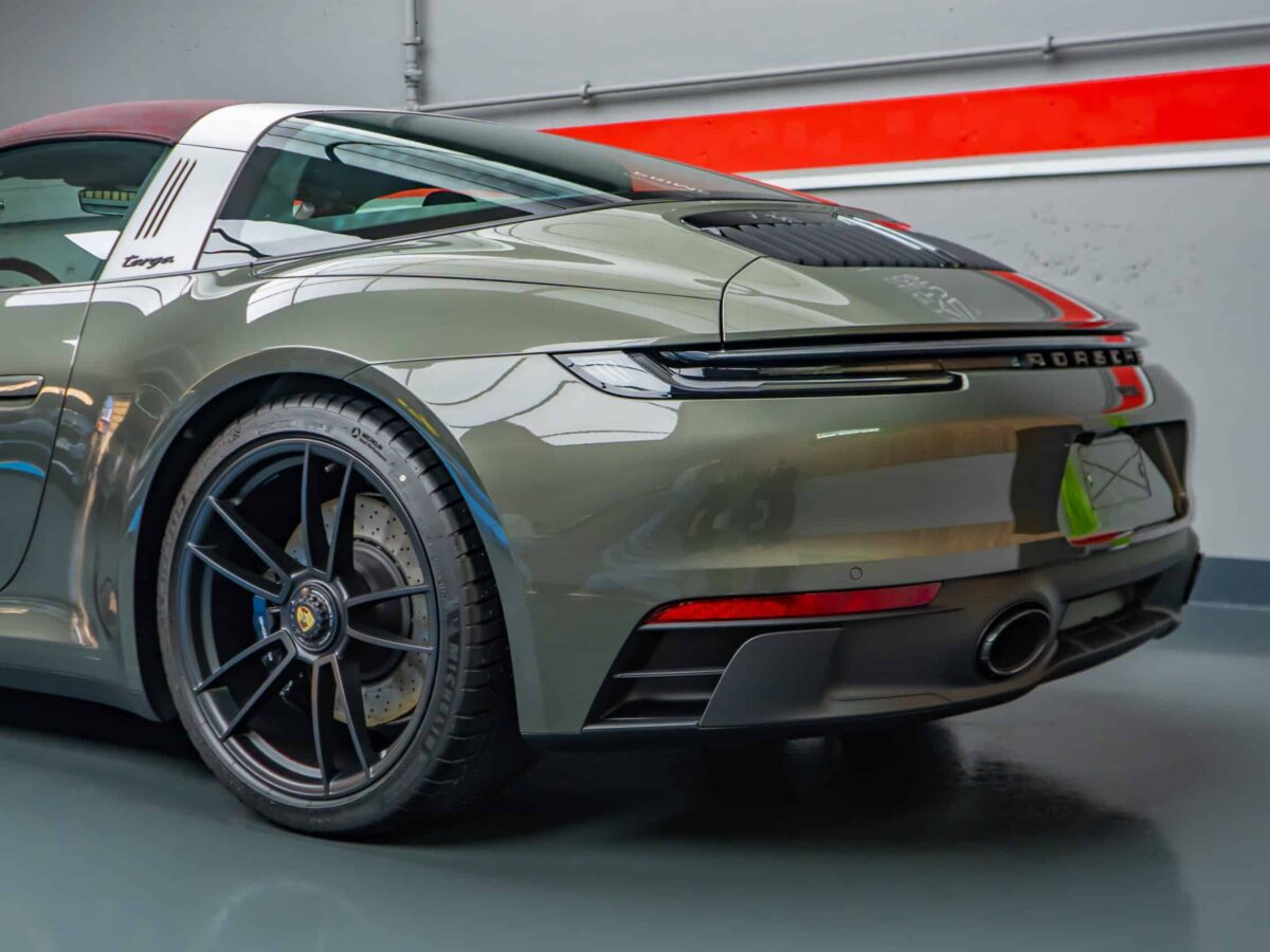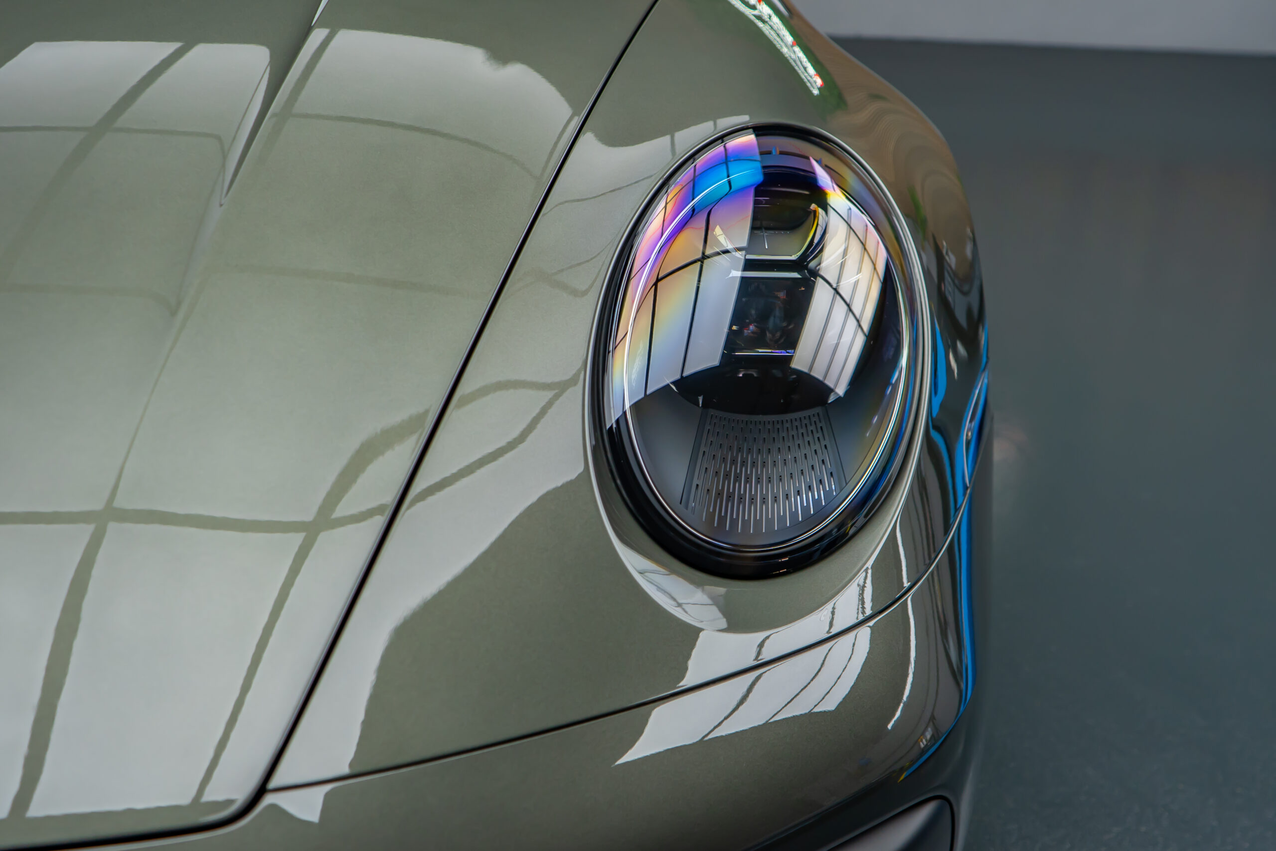 An diesem Wunderschönen 992 Targa 4 GTS in Aventurin grün wurde die Stossstange, die Kotflügel, Motorhaube, Originale frontlippe sowie die Carbon Seitenspiegel mit der XPEL Ultimate Plus Folie geschützt. Anders als herkömmliche Lackschutzfolien mit einer Dicke von 120-150 µ bietet die Xpel Ultimate Plus mit einer Dicke von 200 µ maximale Schlag- und Abriebfestigkeit. Sie ist vollständig transparent und nahezu unsichtbar.