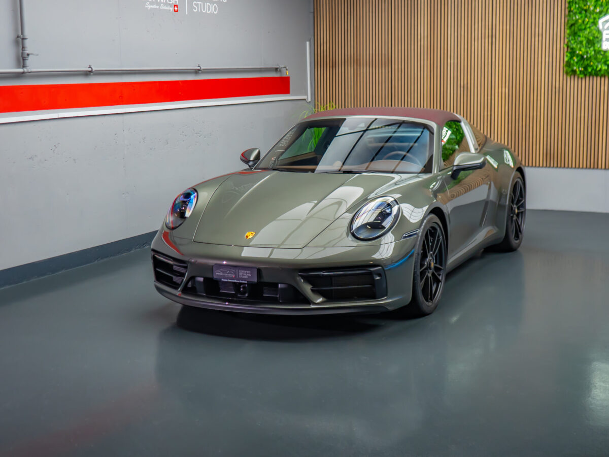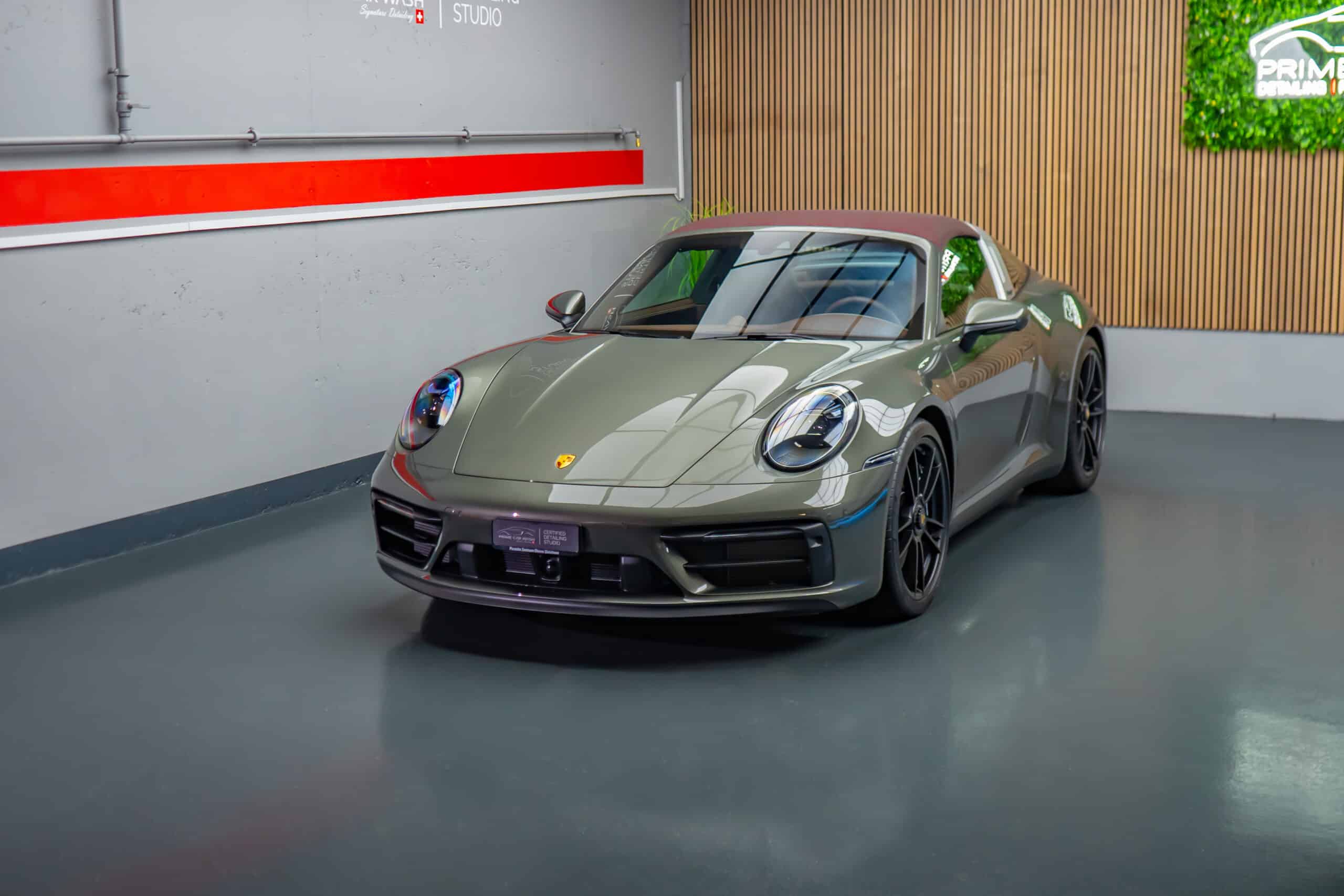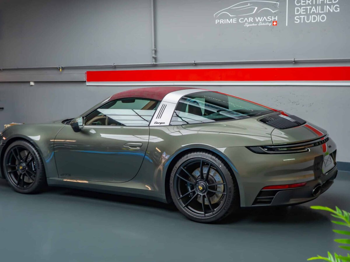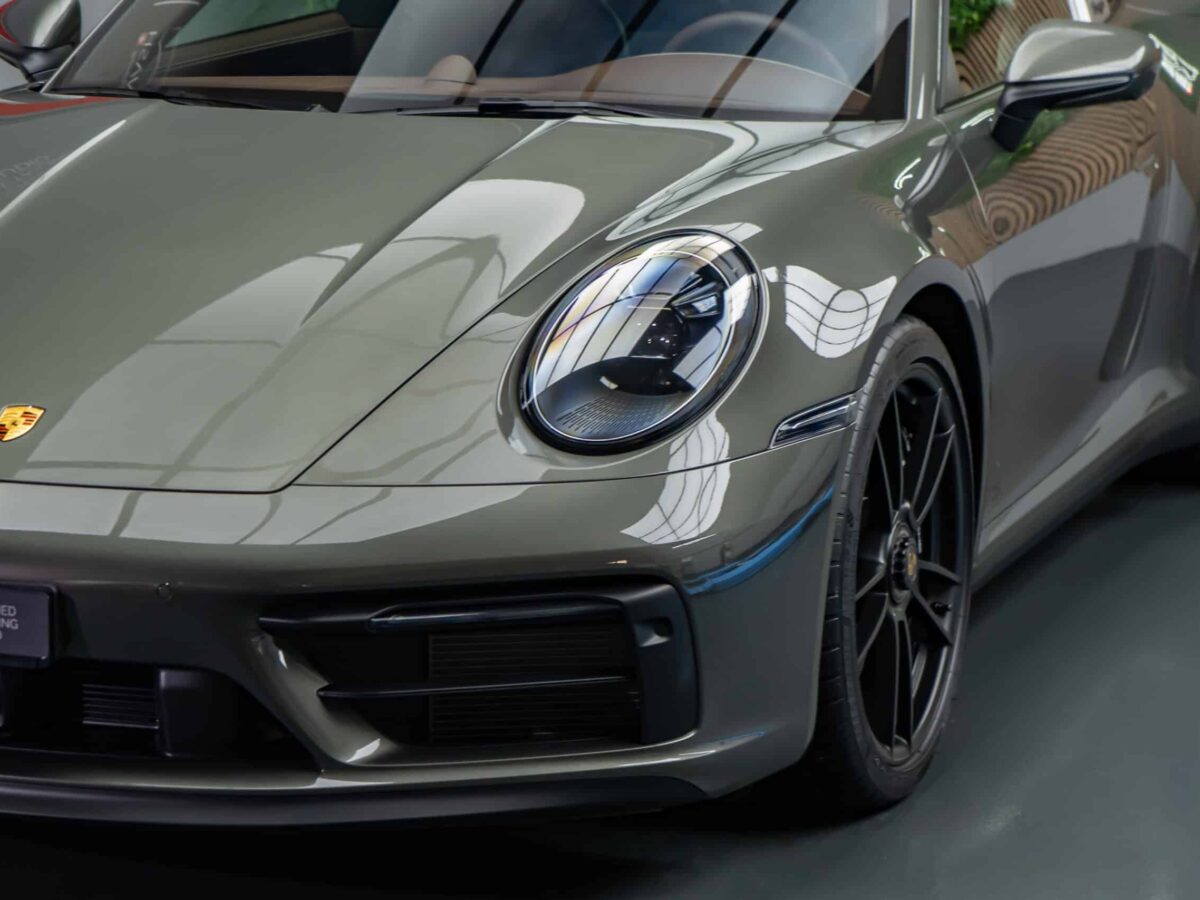 An diesem Wunderschönen 992 Targa 4 GTS in Aventurin grün wurde die Stossstange, die Kotflügel, Motorhaube, Originale frontlippe sowie die Carbon Seitenspiegel mit der XPEL Ultimate Plus Folie geschützt. Anders als herkömmliche Lackschutzfolien mit einer Dicke von 120-150 µ bietet die Xpel Ultimate Plus mit einer Dicke von 200 µ maximale Schlag- und Abriebfestigkeit. Sie ist vollständig transparent und nahezu unsichtbar.