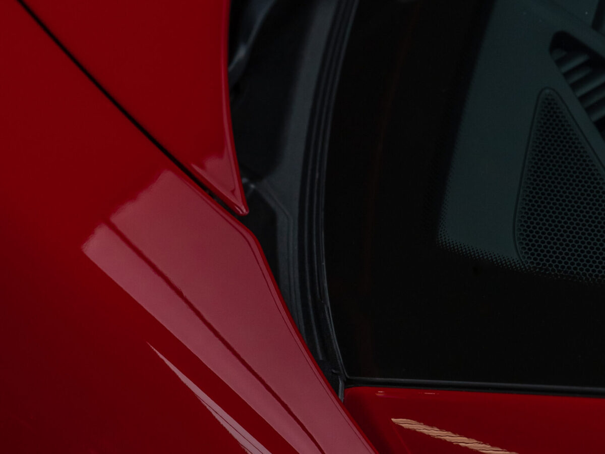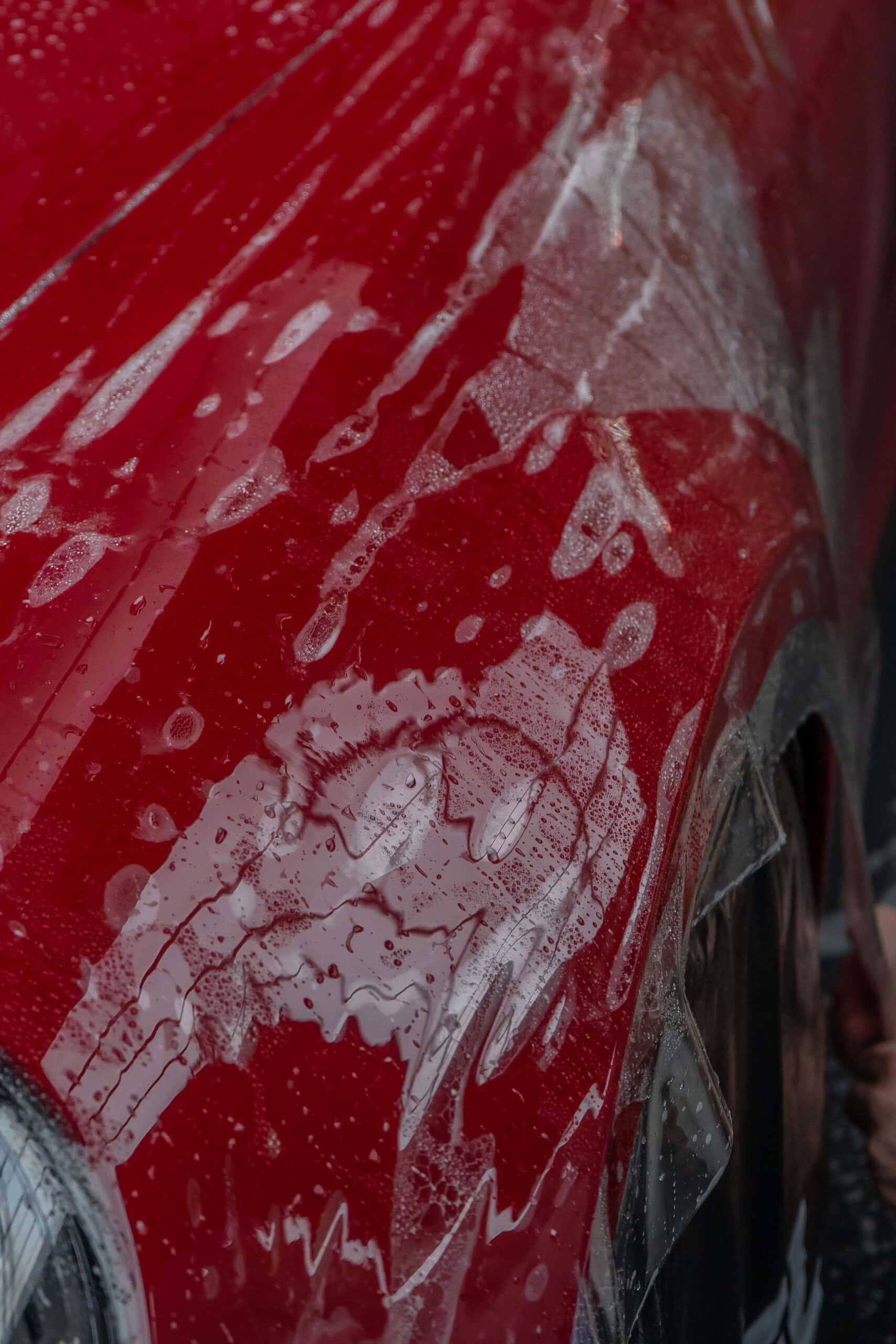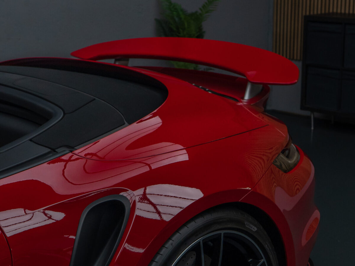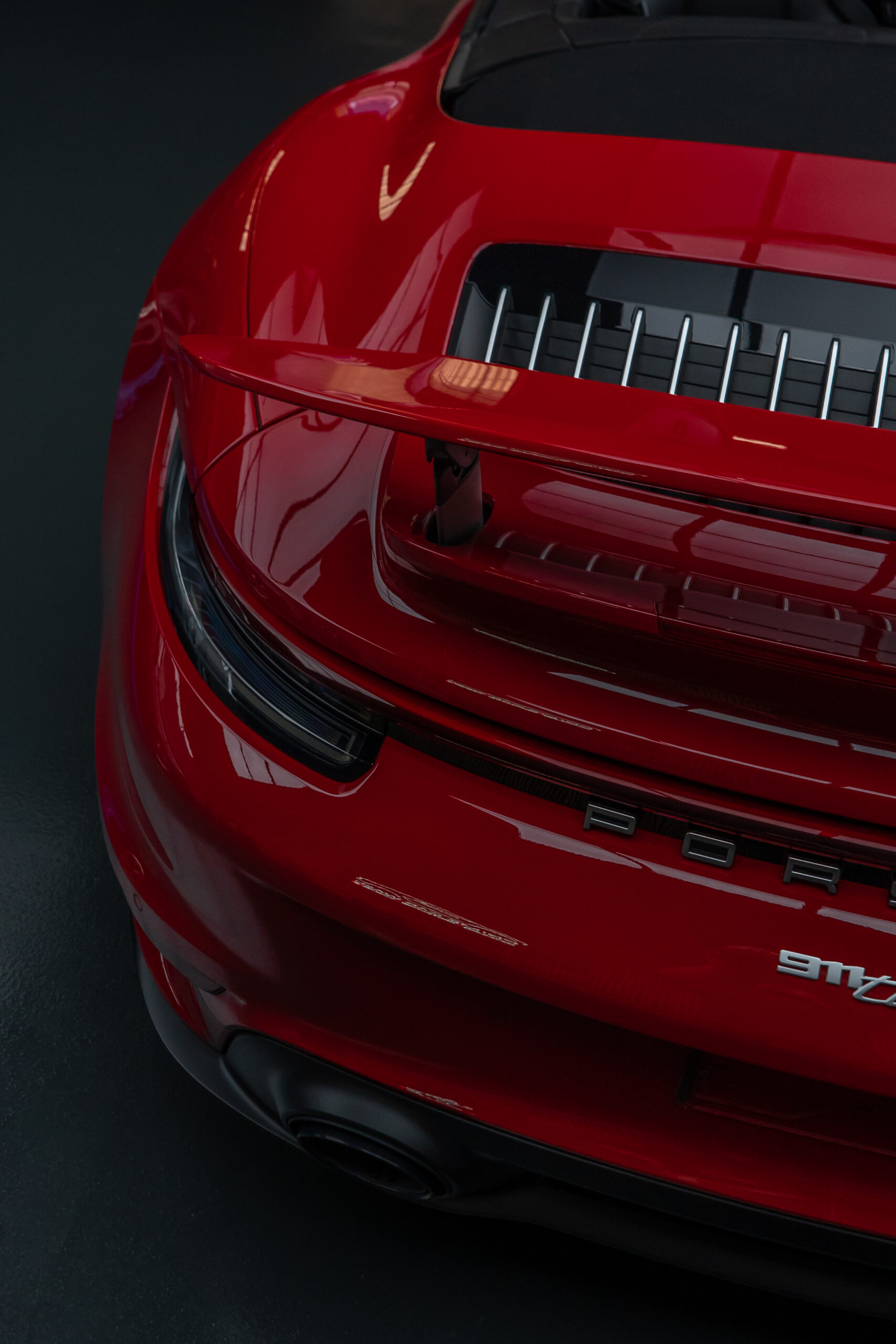 Dieser Porsche 992 Turbo in Karminrot ist purer Ikonen-Charakter. Um genau diese intensive Farbwirkung dauerhaft zu erhalten, haben wir den kompletten Wagen vollflächig mit unserer selbstheilenden Lackschutzfolie geschützt.