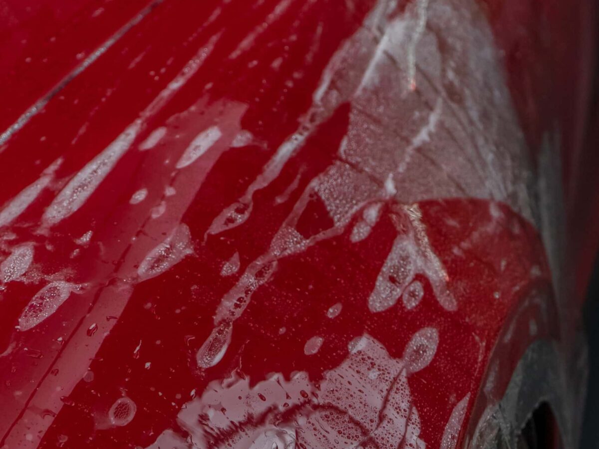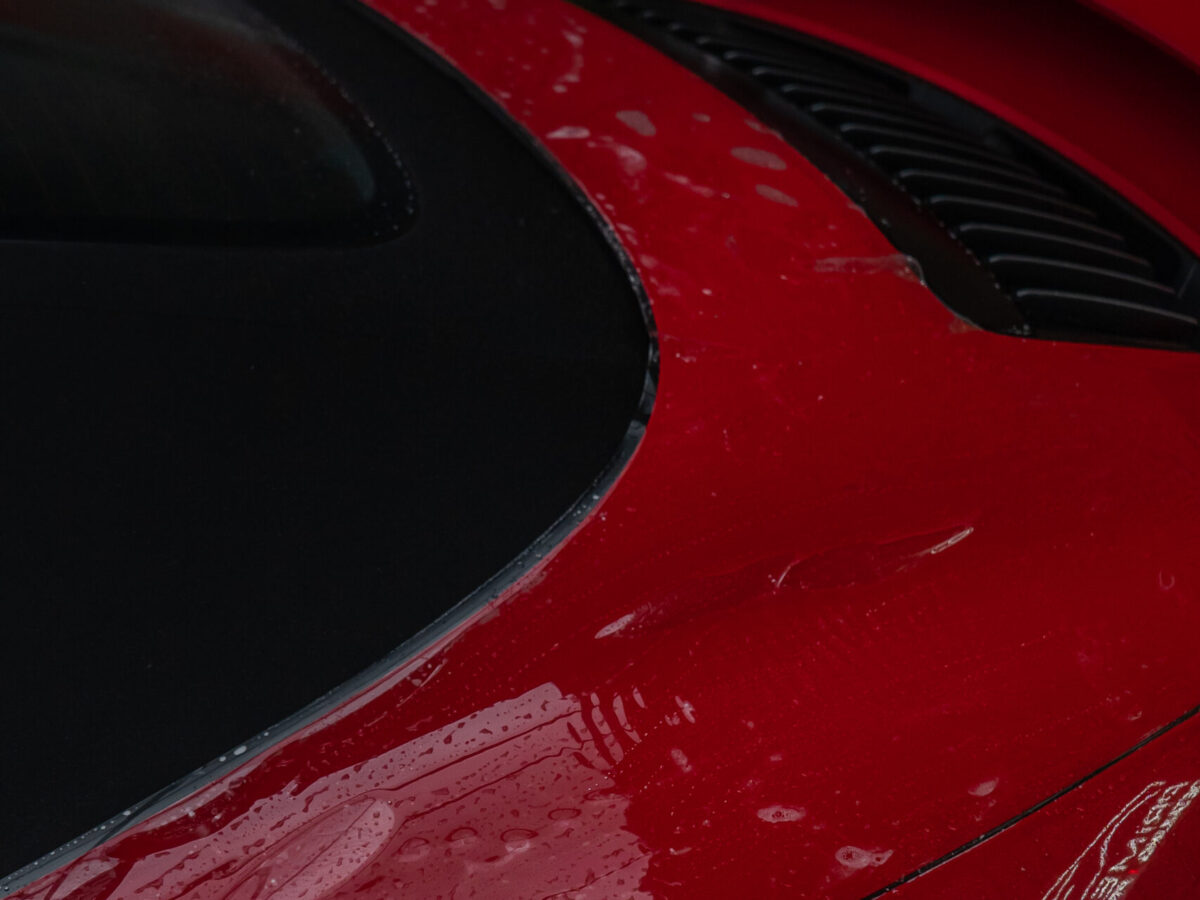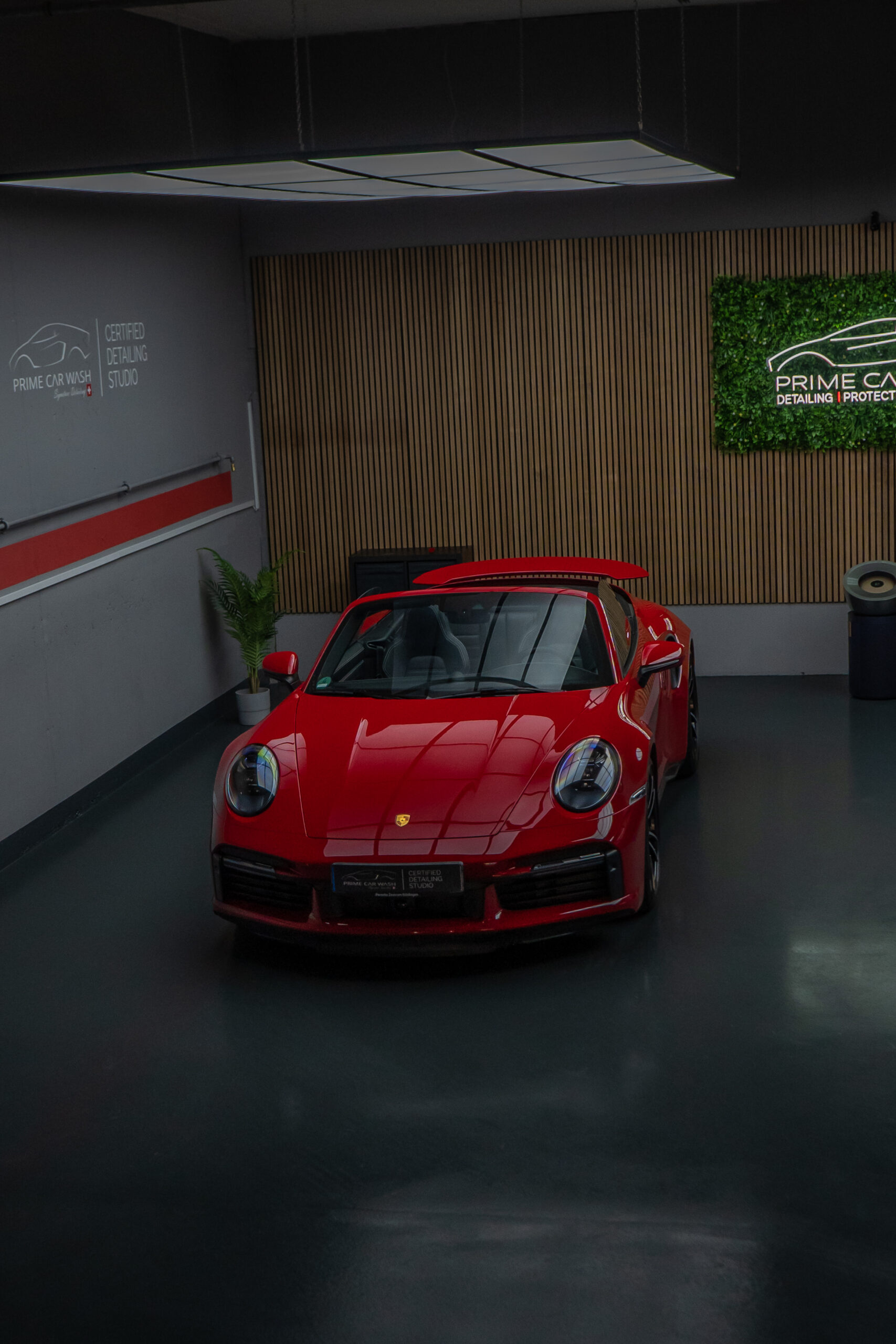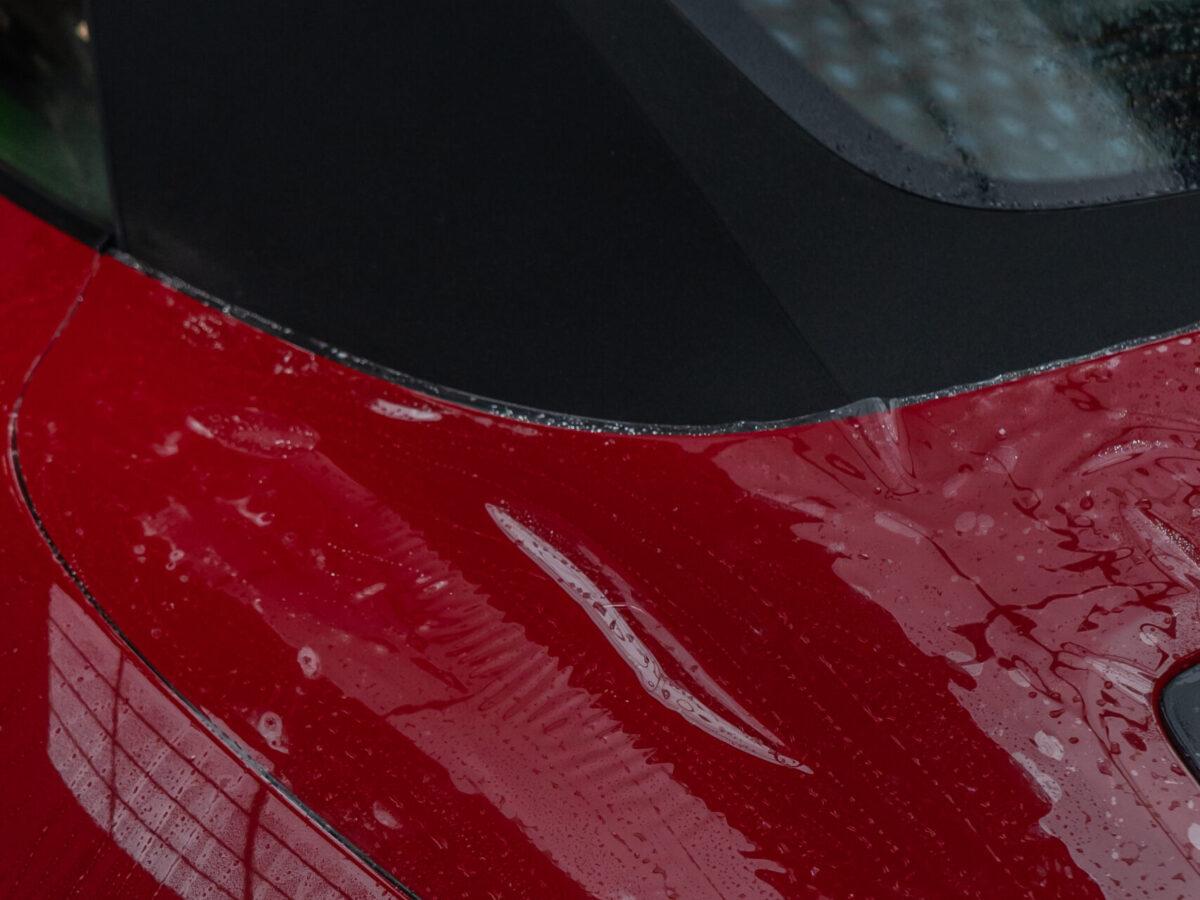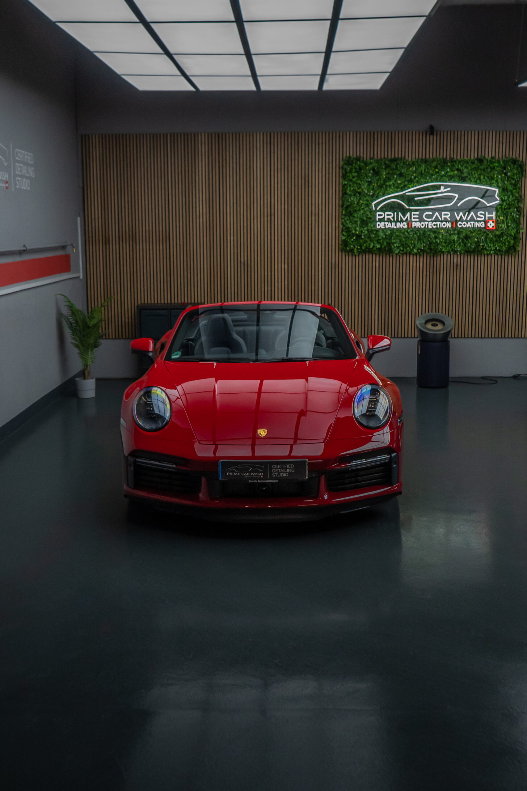 Dieser Porsche 992 Turbo in Karminrot ist purer Ikonen-Charakter. Um genau diese intensive Farbwirkung dauerhaft zu erhalten, haben wir den kompletten Wagen vollflächig mit unserer selbstheilenden Lackschutzfolie geschützt.