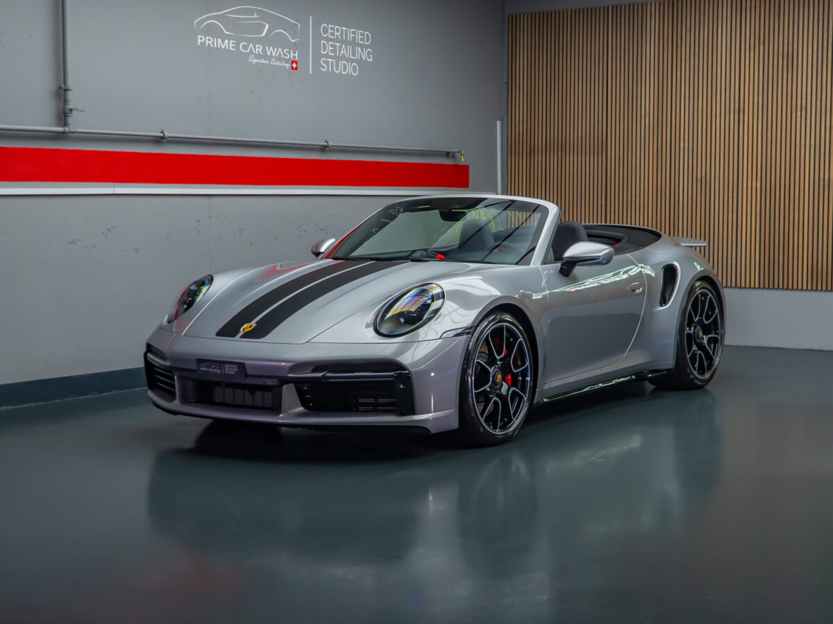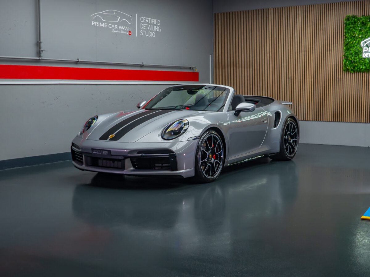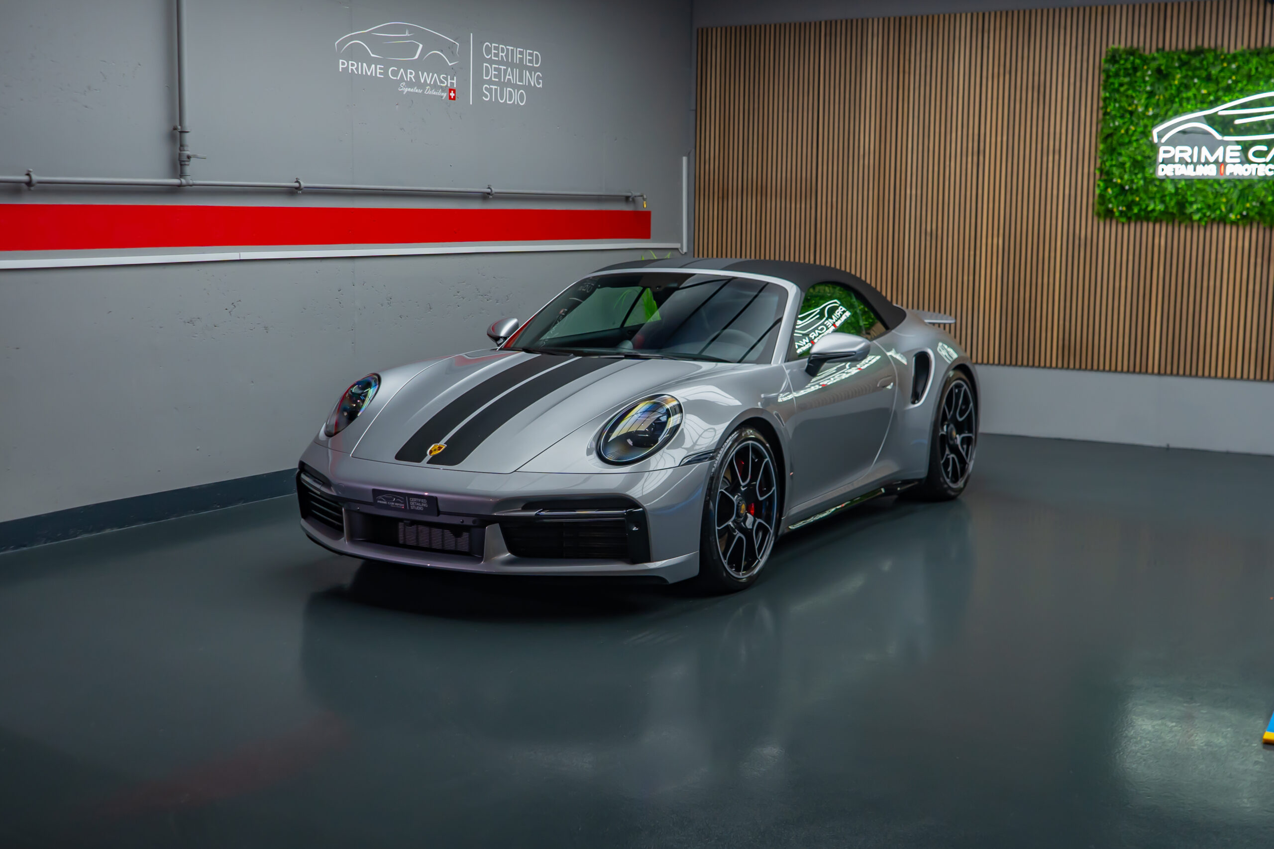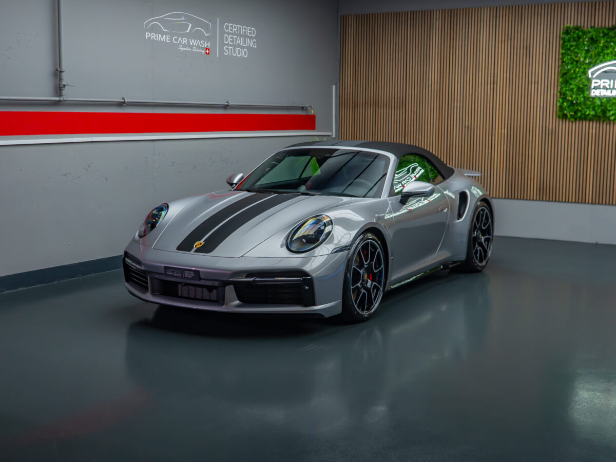 Für den Porsche 992 Turbo Cabrio haben wir eine erstklassige Schutzmassnahme durchgeführt. Der Frontbereich wurde mit der hochwertigen XPEL Ultimate Plus Lackschutzfolie geschützt, um potenzielle Schäden durch Steinschläge zu verhindern. Zusätzlich wurde die gesamte Karosserie mit der fortschrittlichen XPEL Fusion Keramikbeschichtung versehen. Diese Schichten bieten nicht nur einen effektiven Schutz vor äusseren Einflüssen, sondern verleihen dem Fahrzeug auch eine langanhaltende und ansprechende Oberfläche.