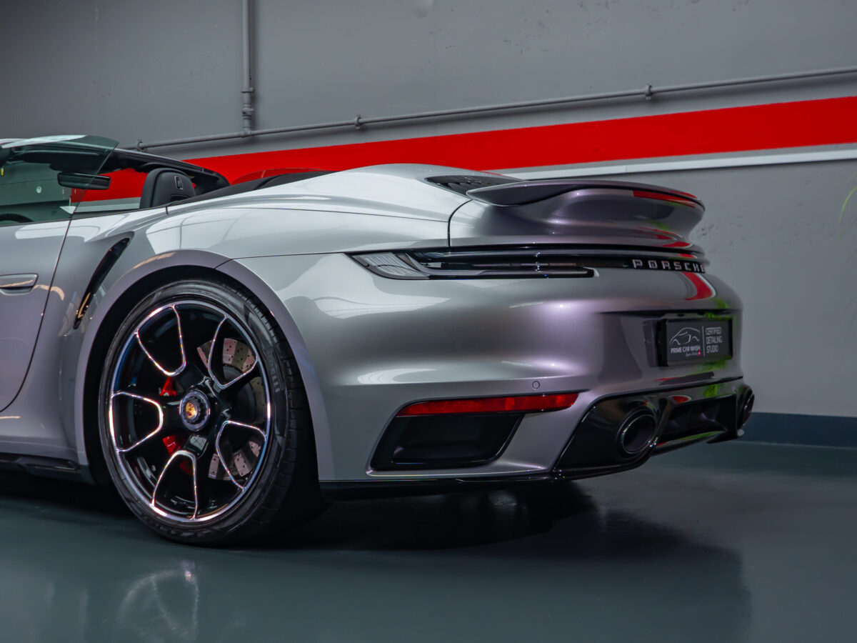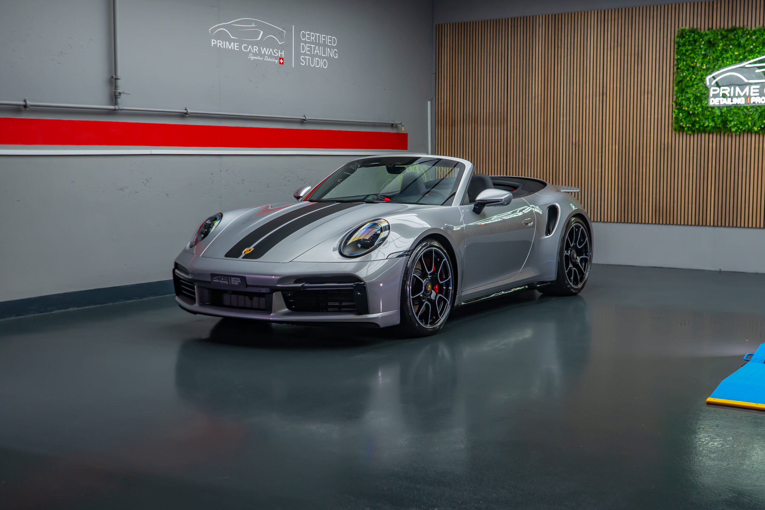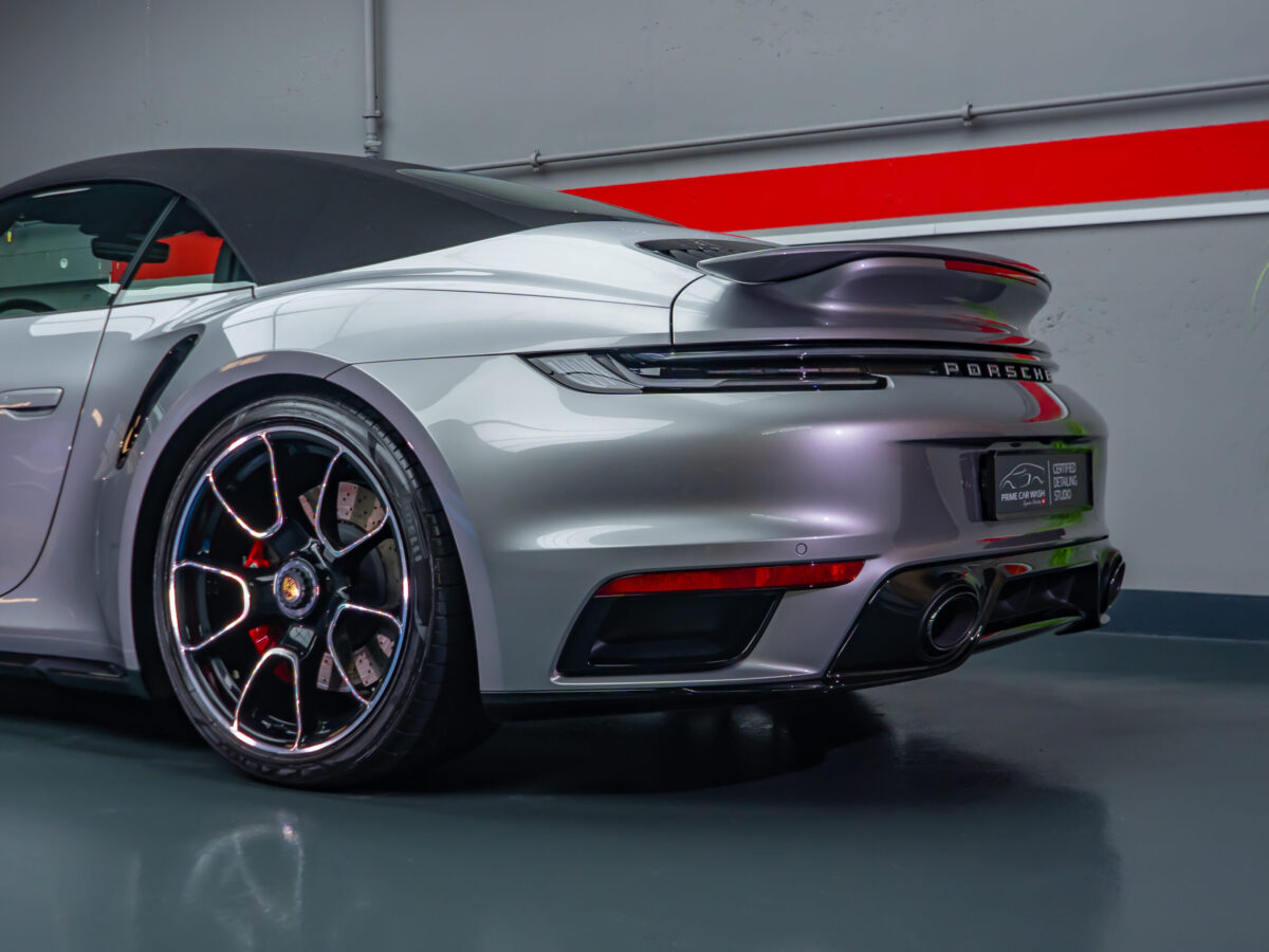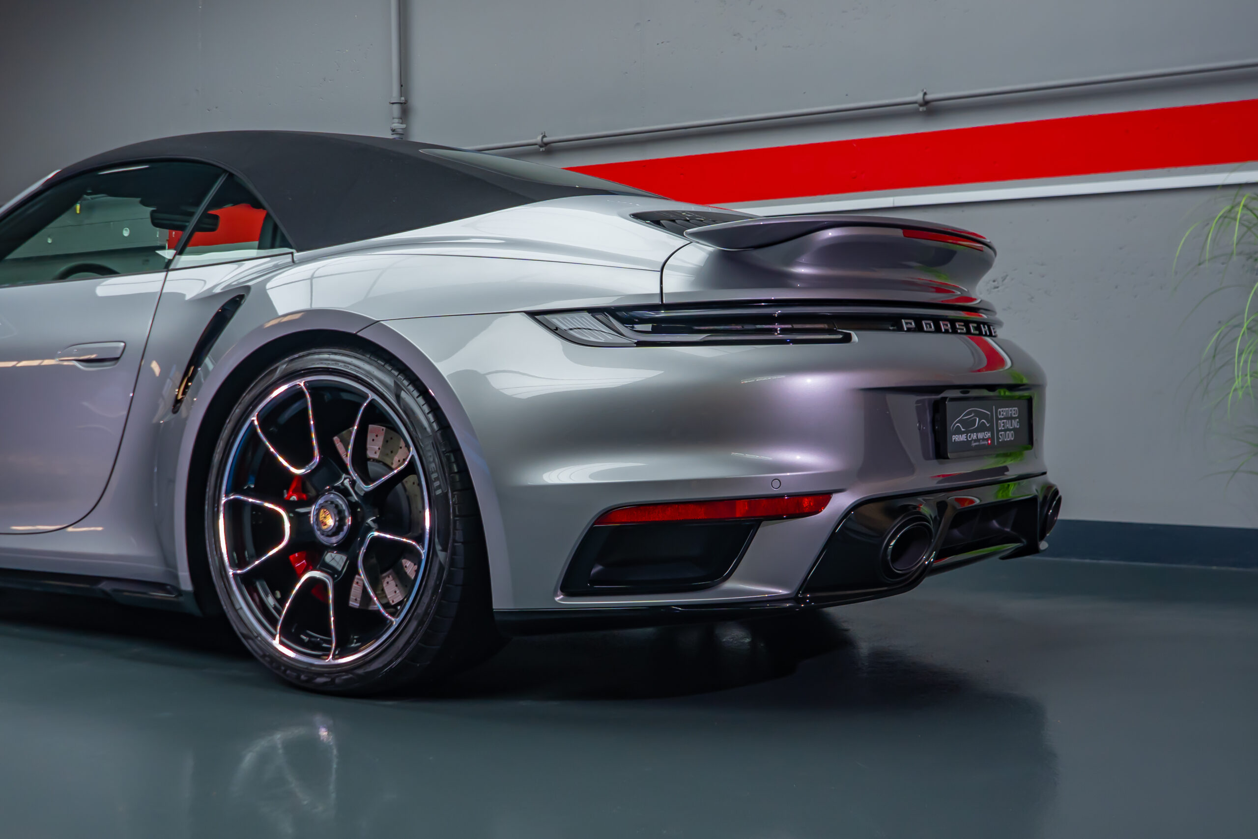 Für den Porsche 992 Turbo Cabrio haben wir eine erstklassige Schutzmassnahme durchgeführt. Der Frontbereich wurde mit der hochwertigen XPEL Ultimate Plus Lackschutzfolie geschützt, um potenzielle Schäden durch Steinschläge zu verhindern. Zusätzlich wurde die gesamte Karosserie mit der fortschrittlichen XPEL Fusion Keramikbeschichtung versehen. Diese Schichten bieten nicht nur einen effektiven Schutz vor äusseren Einflüssen, sondern verleihen dem Fahrzeug auch eine langanhaltende und ansprechende Oberfläche.