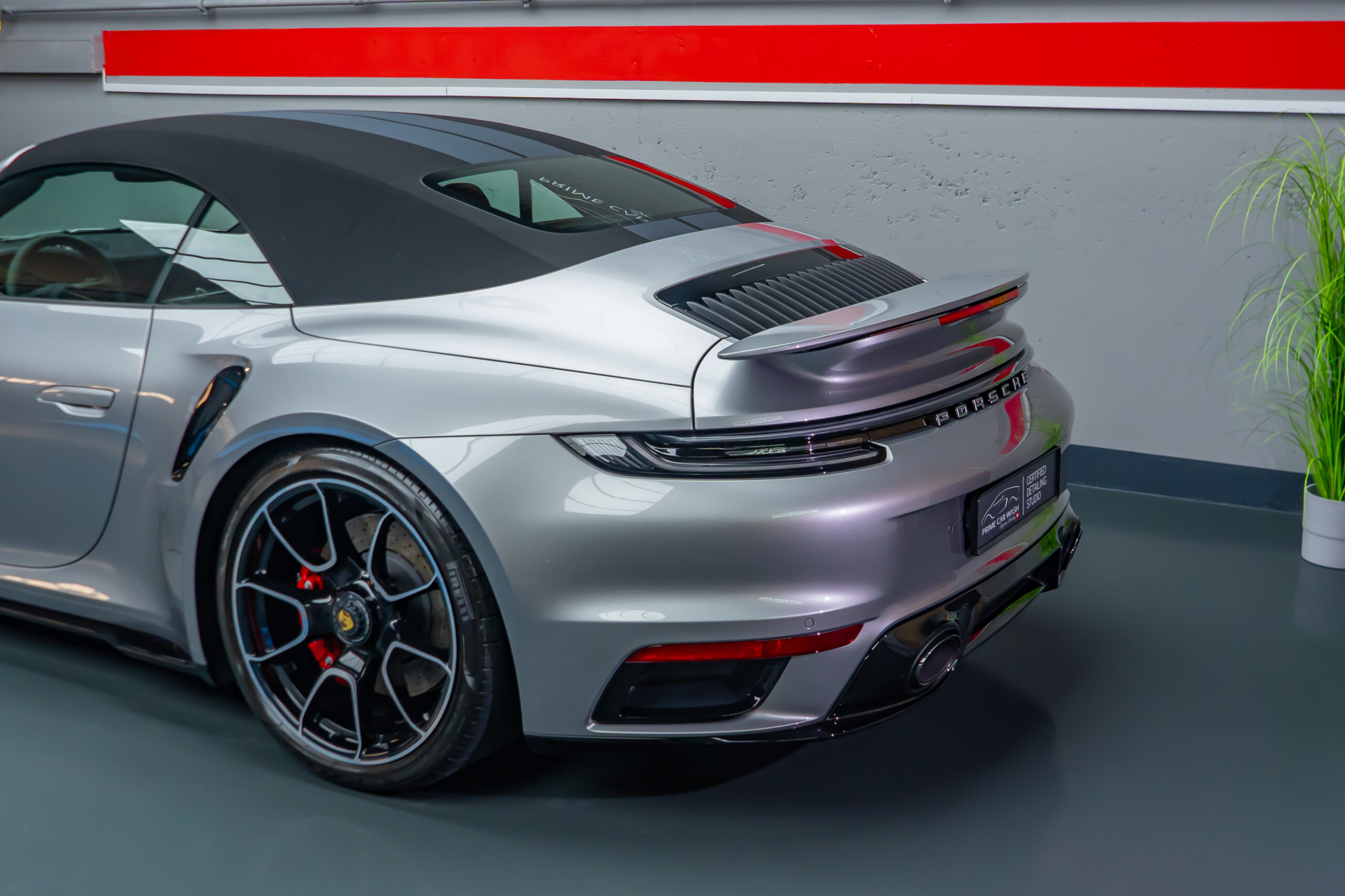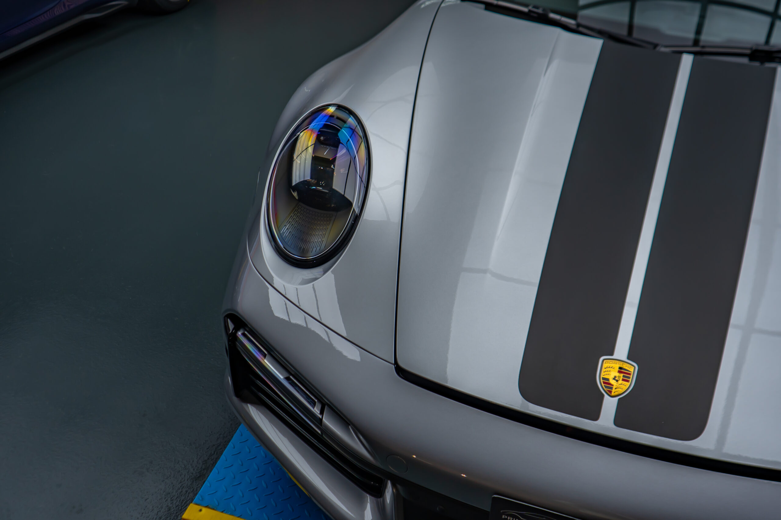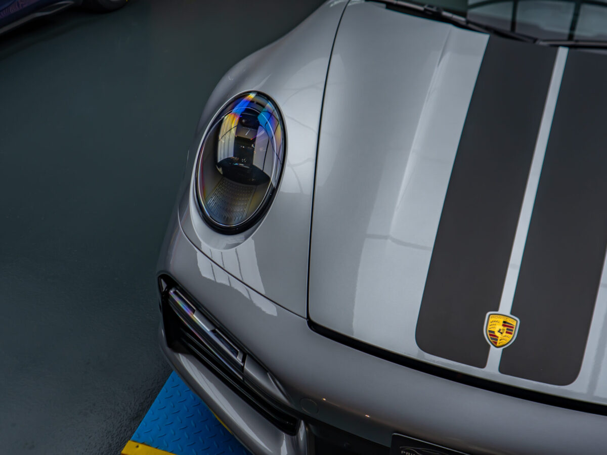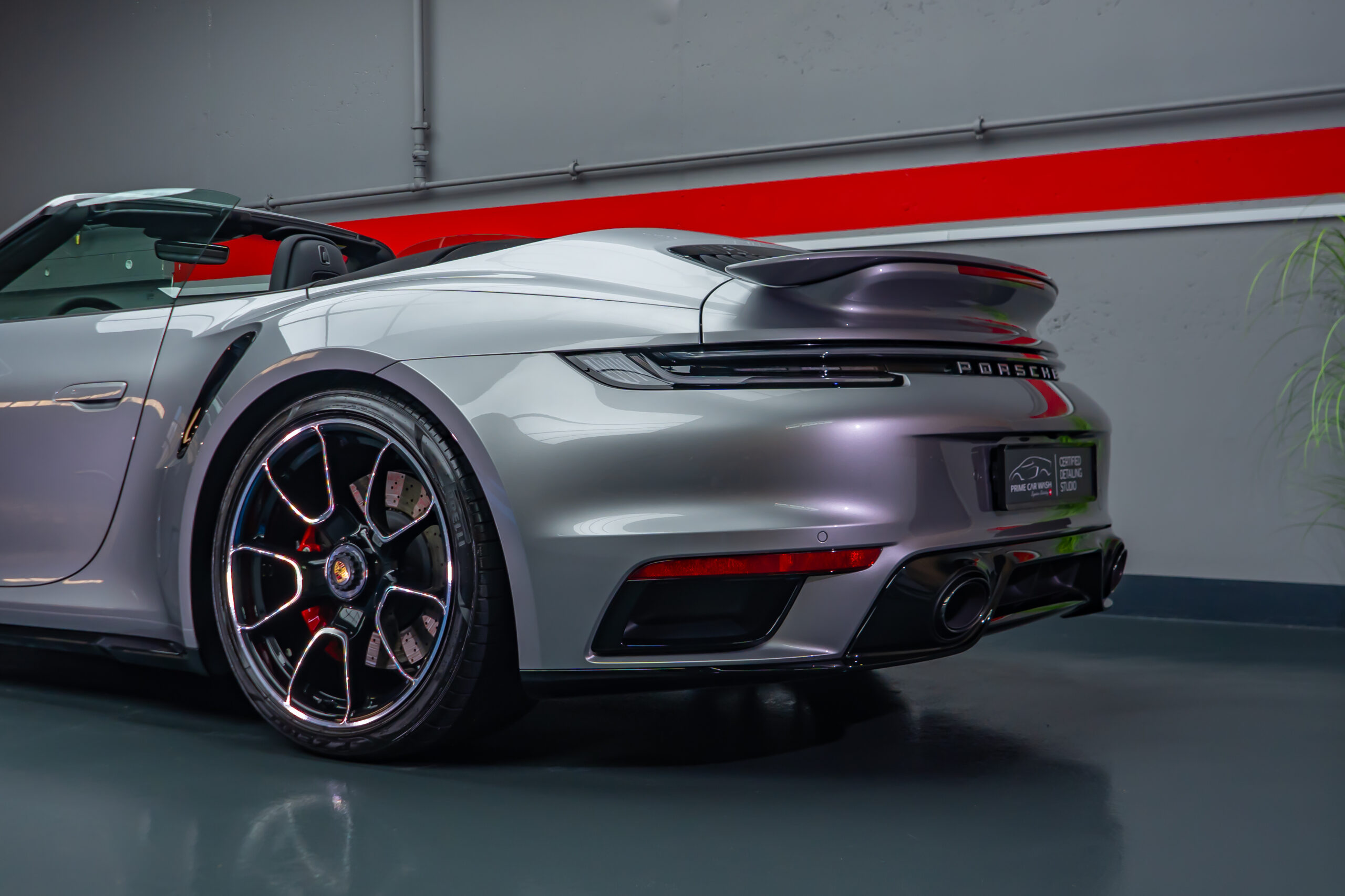 Für den Porsche 992 Turbo Cabrio haben wir eine erstklassige Schutzmassnahme durchgeführt. Der Frontbereich wurde mit der hochwertigen XPEL Ultimate Plus Lackschutzfolie geschützt, um potenzielle Schäden durch Steinschläge zu verhindern. Zusätzlich wurde die gesamte Karosserie mit der fortschrittlichen XPEL Fusion Keramikbeschichtung versehen. Diese Schichten bieten nicht nur einen effektiven Schutz vor äusseren Einflüssen, sondern verleihen dem Fahrzeug auch eine langanhaltende und ansprechende Oberfläche.
