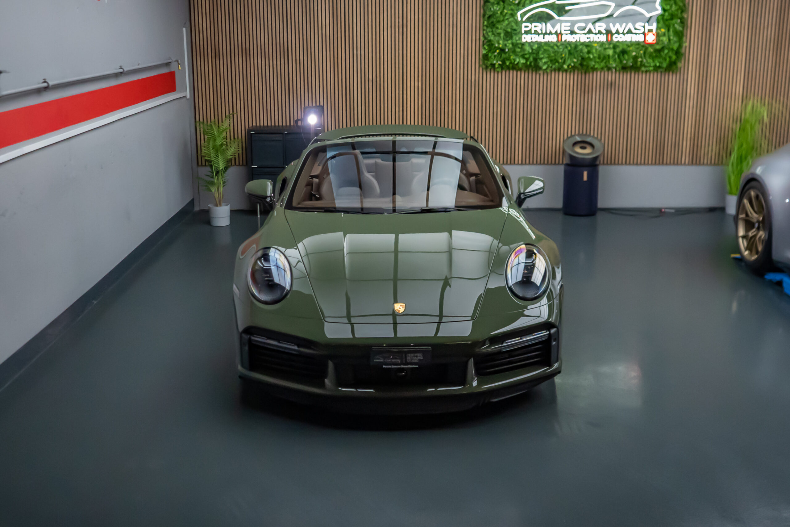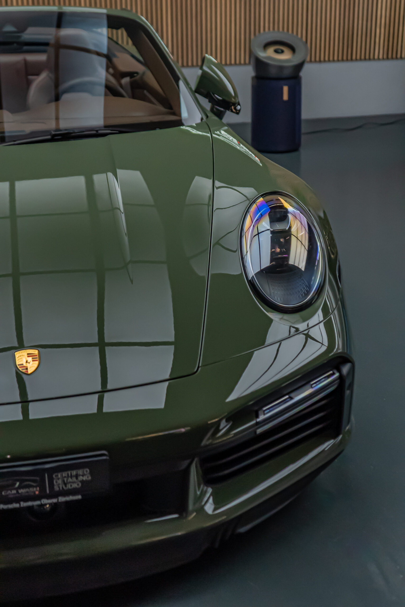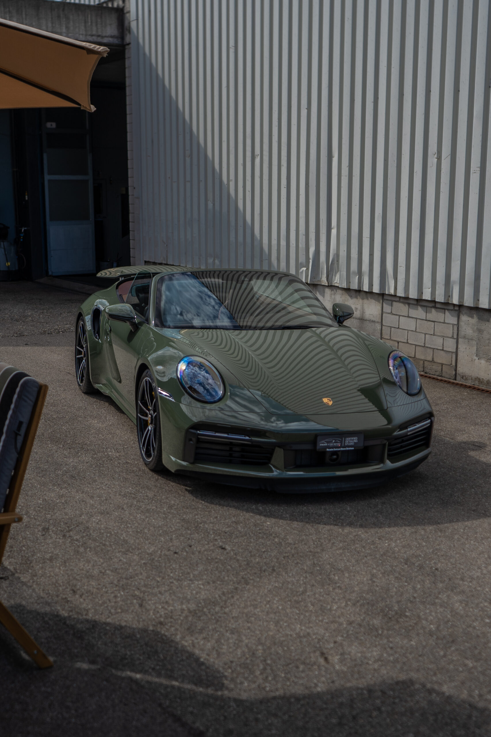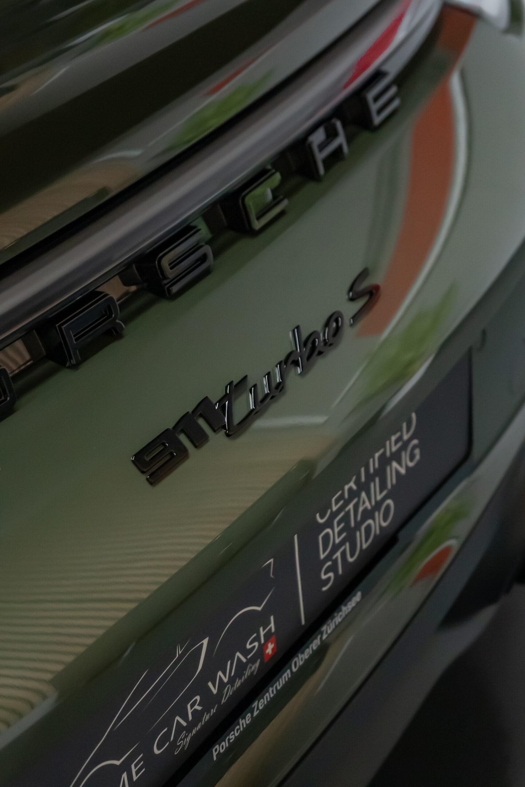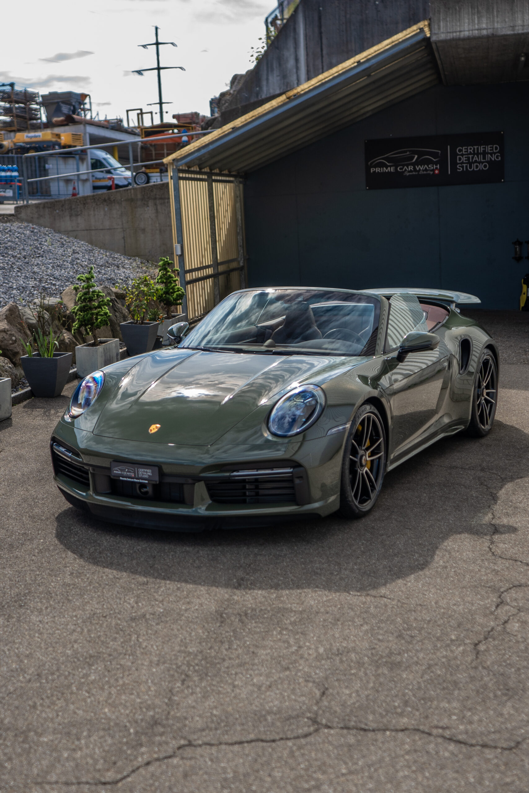 Diesen Porsche 992 Turbo S Cabrio mit der PTS Lackierung „Schwarz Olive“ haben wir mit der Selbstheilenden und höchst Transparenten Lackschutzfolie XPEL Ultimate Plus geschützt. Anschliessend wurden Lack, Frontscheibe sowie die Folie mit der XPEL FUSION Keramik beschichtet.