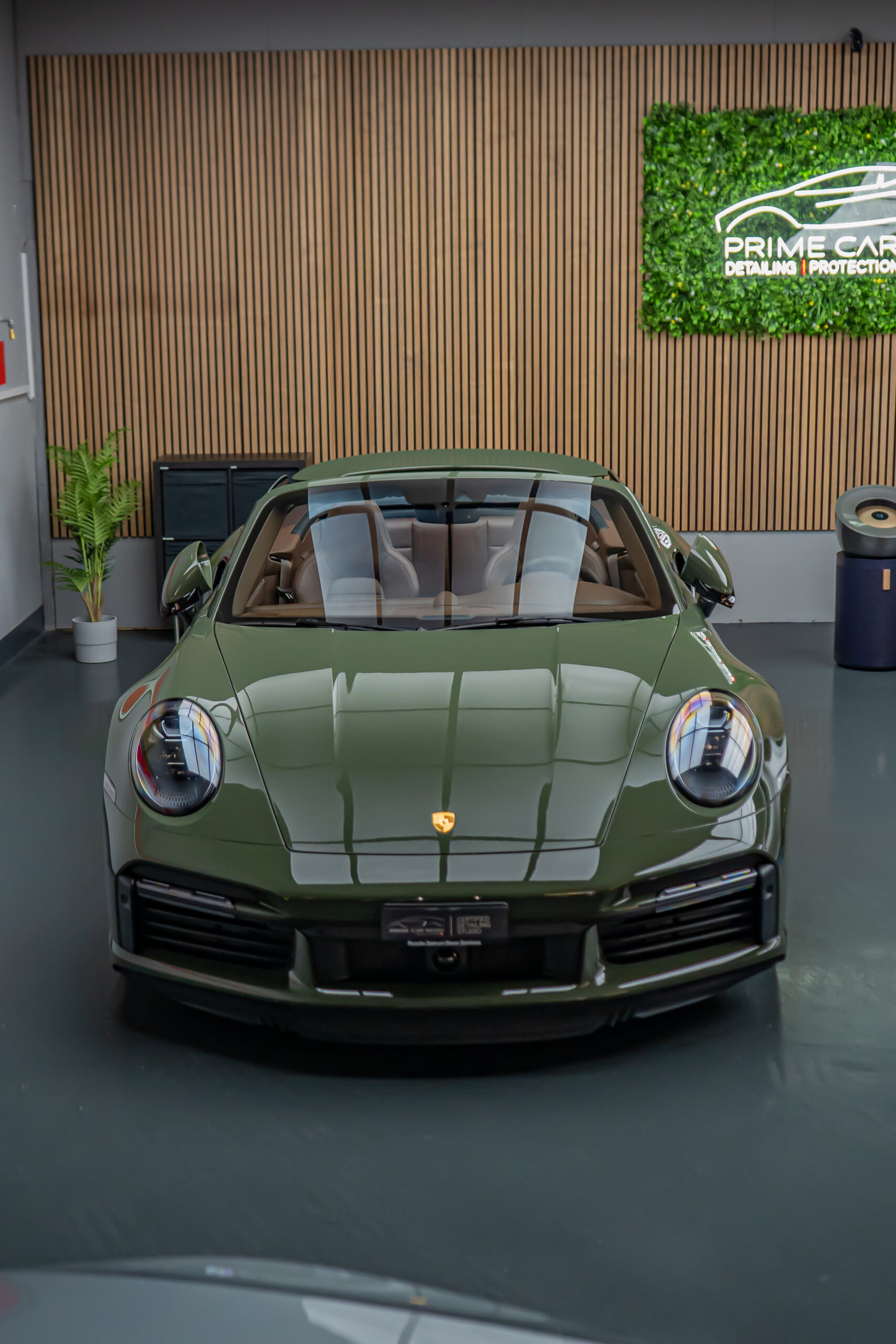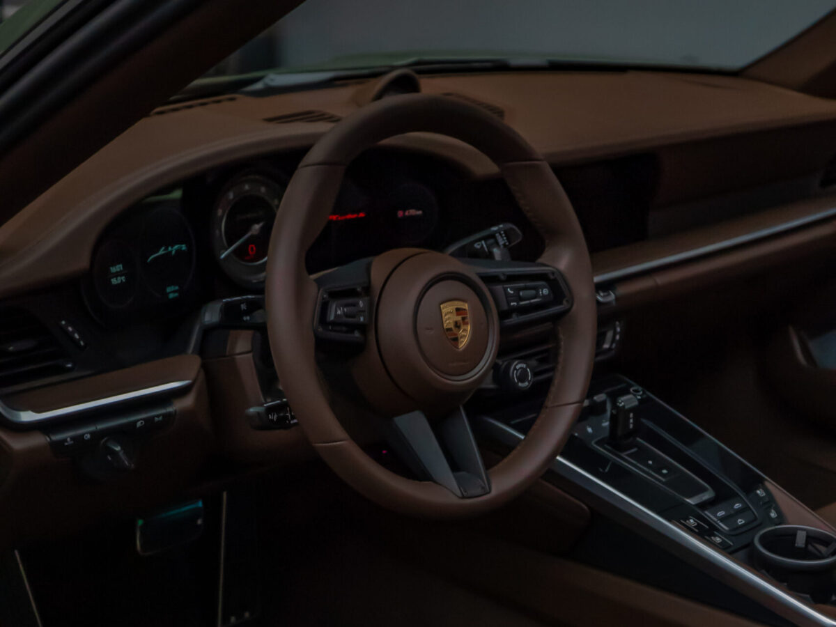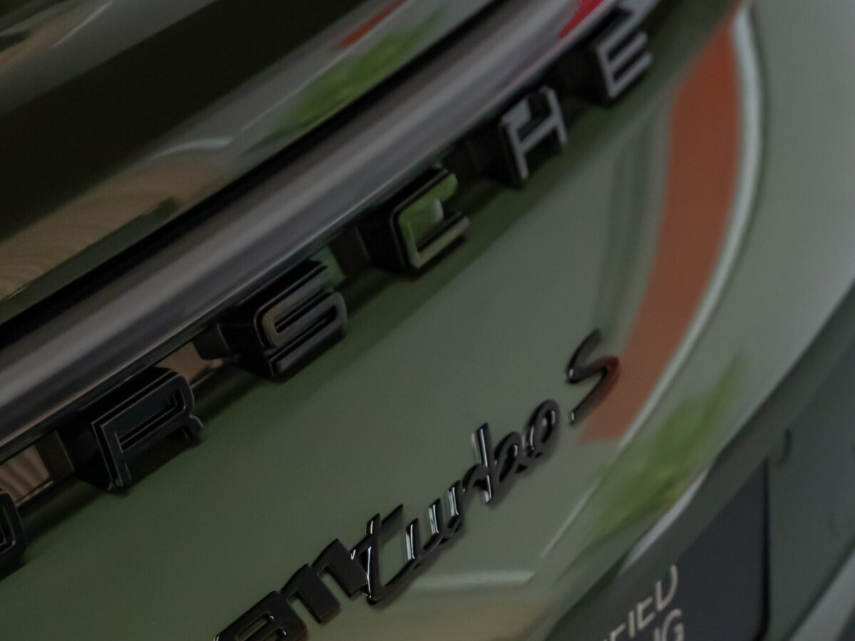 We protected this Porsche 992 Turbo S Cabriolet with the PTS paint color „Black Olive“ using the self-healing and highly transparent XPEL Ultimate Plus paint protection film. Afterwards, the paint, windshield, and the film were coated with XPEL FUSION Ceramic.