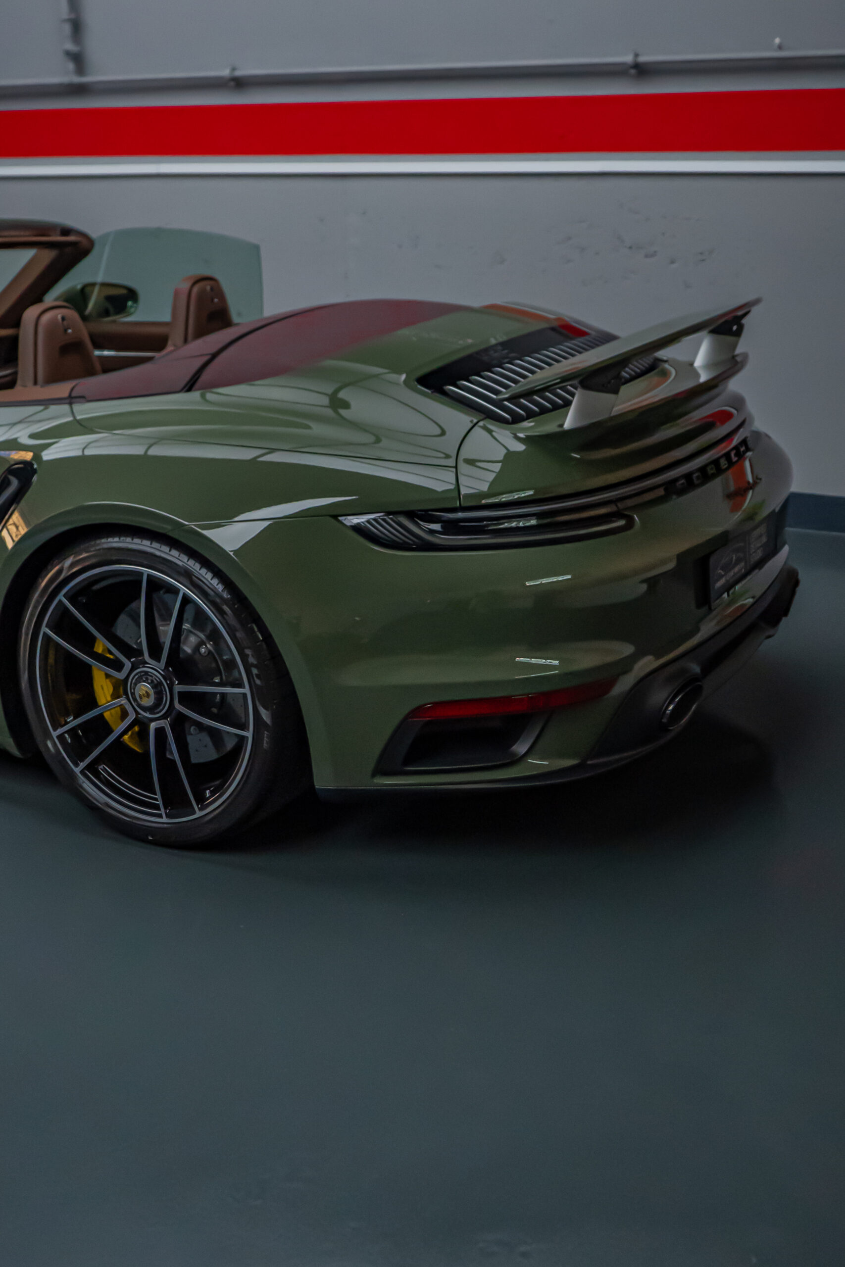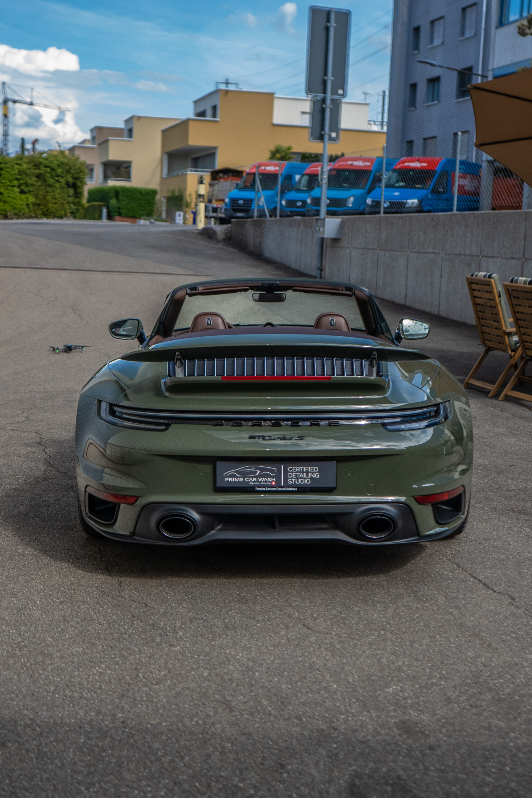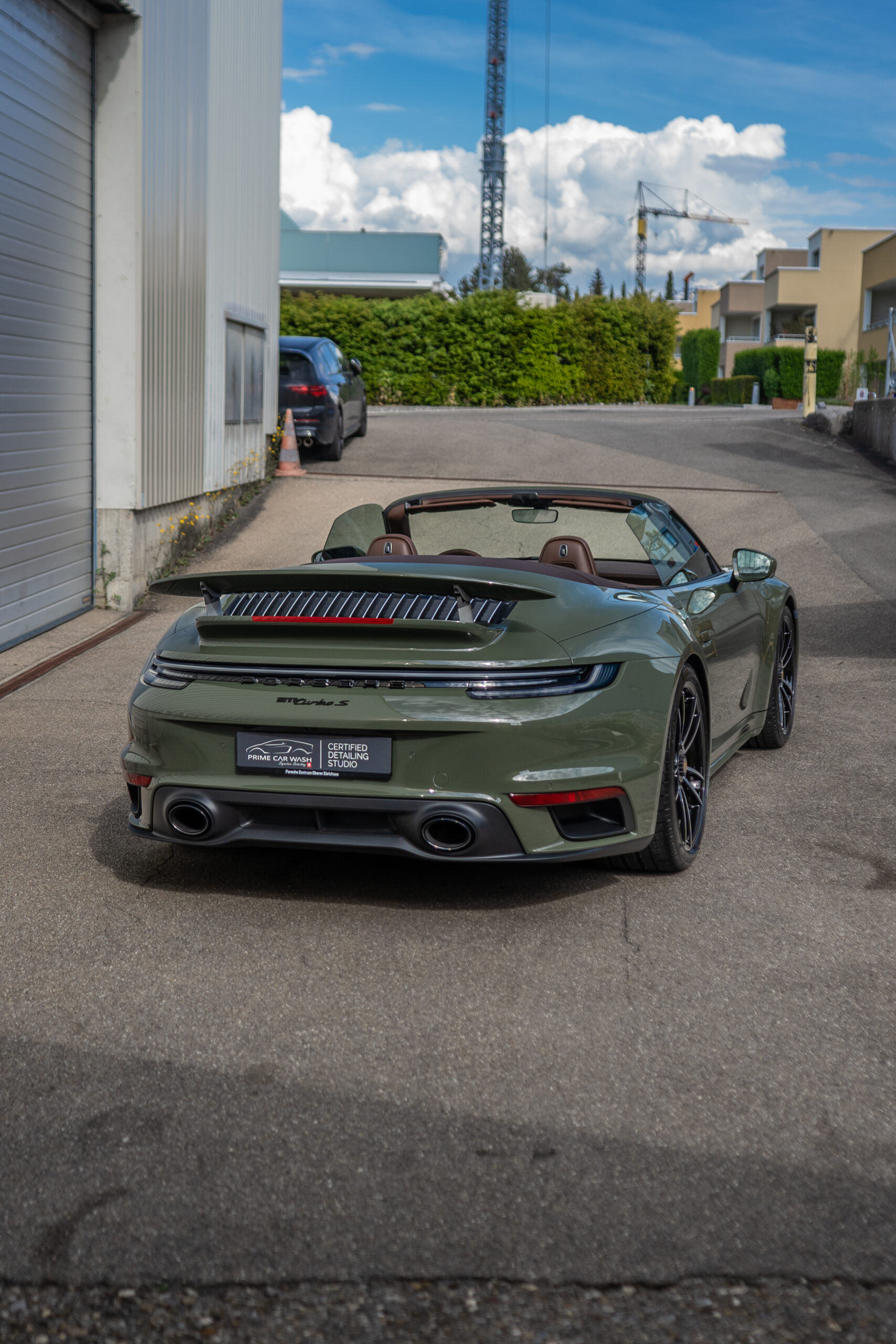 We protected this Porsche 992 Turbo S Cabriolet with the PTS paint color „Black Olive“ using the self-healing and highly transparent XPEL Ultimate Plus paint protection film. Afterwards, the paint, windshield, and the film were coated with XPEL FUSION Ceramic.