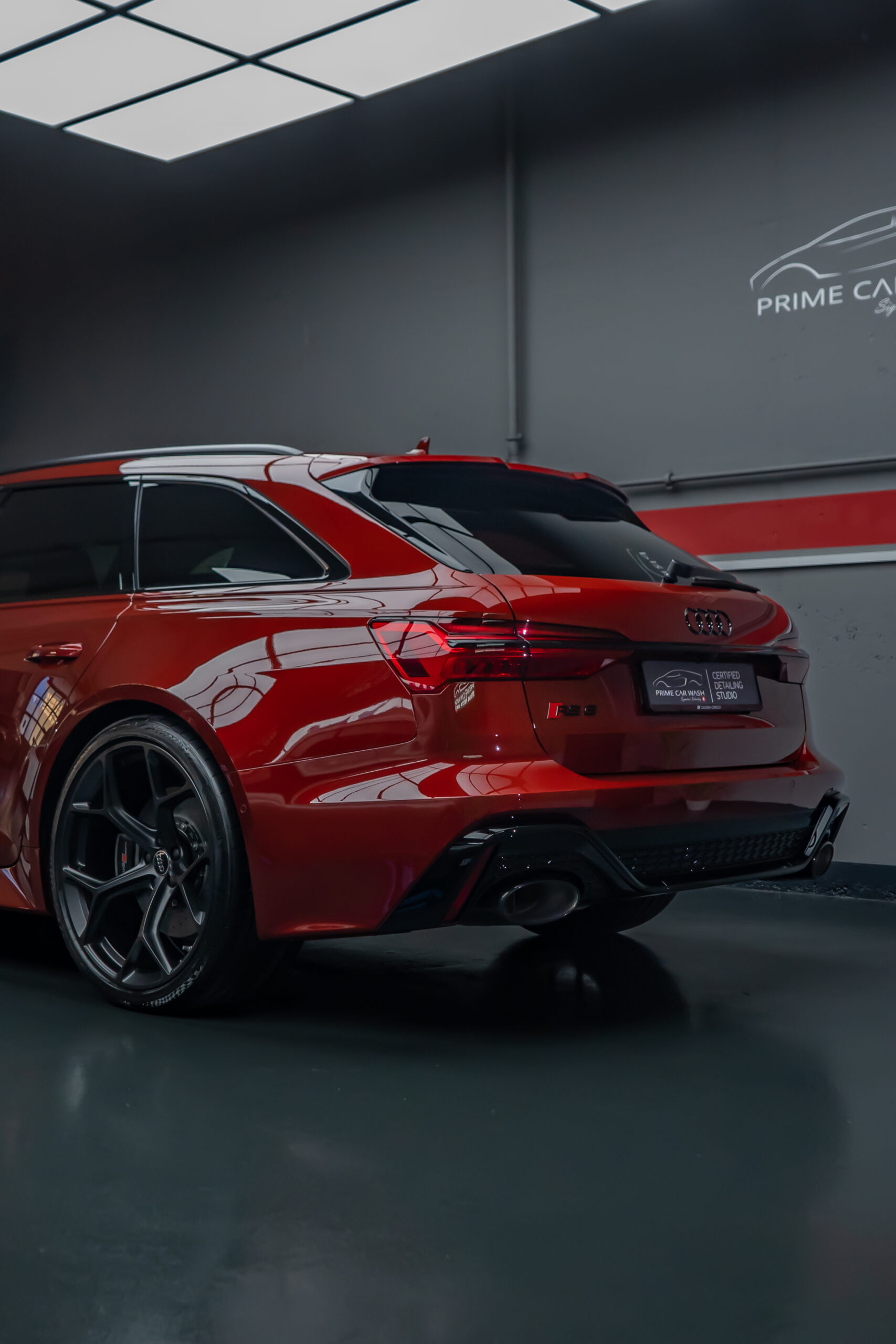Der Audi RS6 vereint kompromisslose Performance mit alltagstauglichem Luxus – gebaut für jede Situation, bereit für jede Geschwindigkeit. Um diesen Anspruch auch beim Schutz des Fahrzeugs fortzuführen, haben wir die komplette Frontpartie, die Seitenschweller sowie die Ladekante mit einer Lackschutzfolierung von XPEL Ultimate Plus ausgestattet.