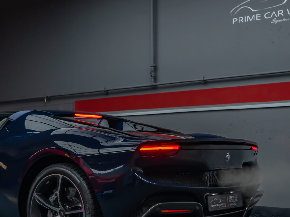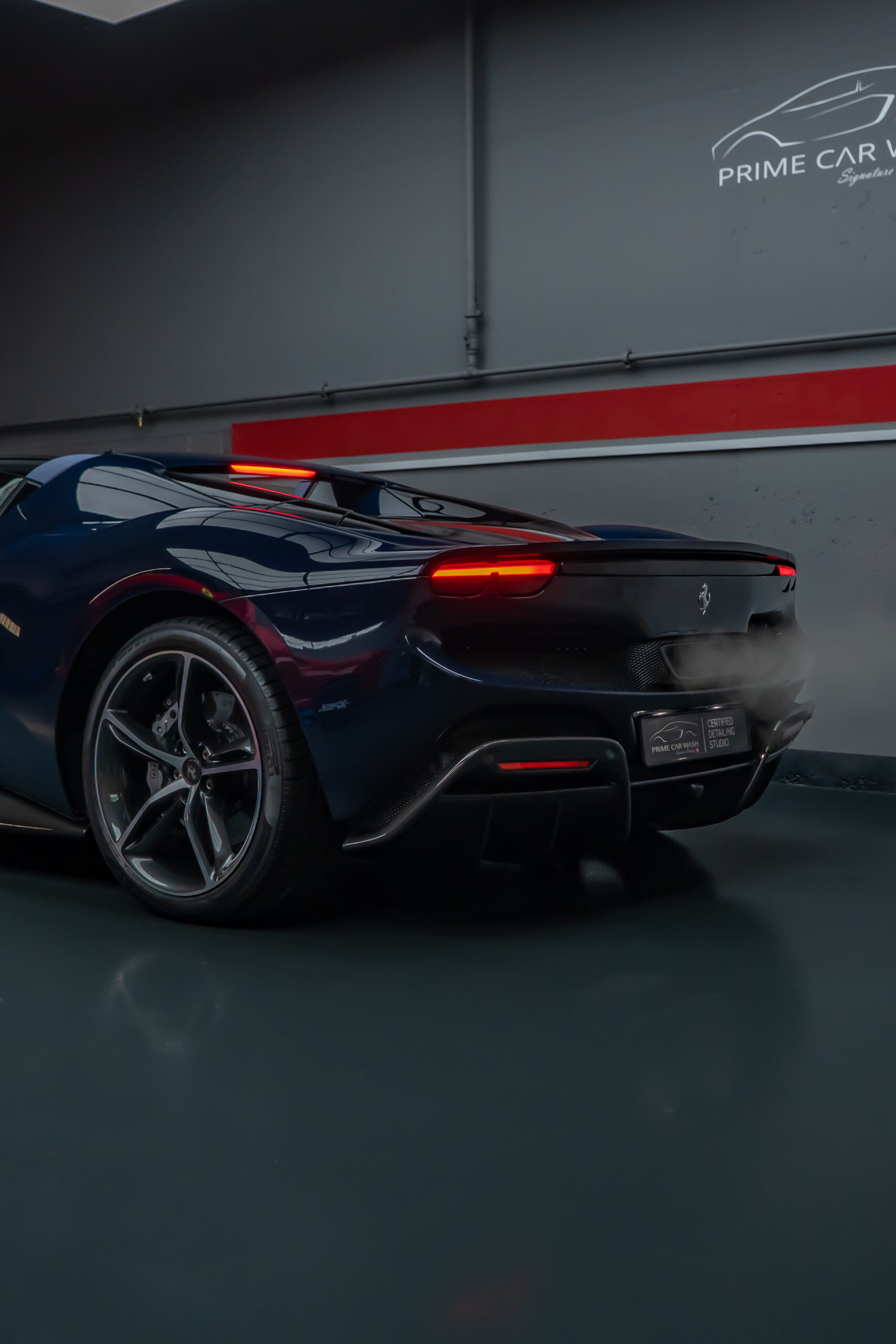 Diesen Wunderschönen Ferrari 296 GTS in Blu Pozzi haben wir komplett mit der Xpel Ultimate Plus Lackschutzfolie geschützt. Dabei haben wir die Pre-Cut-Schablonen intern so angepasst, dass selbst die kleinsten Ecken und Kanten bestmöglich abgedeckt wurden.