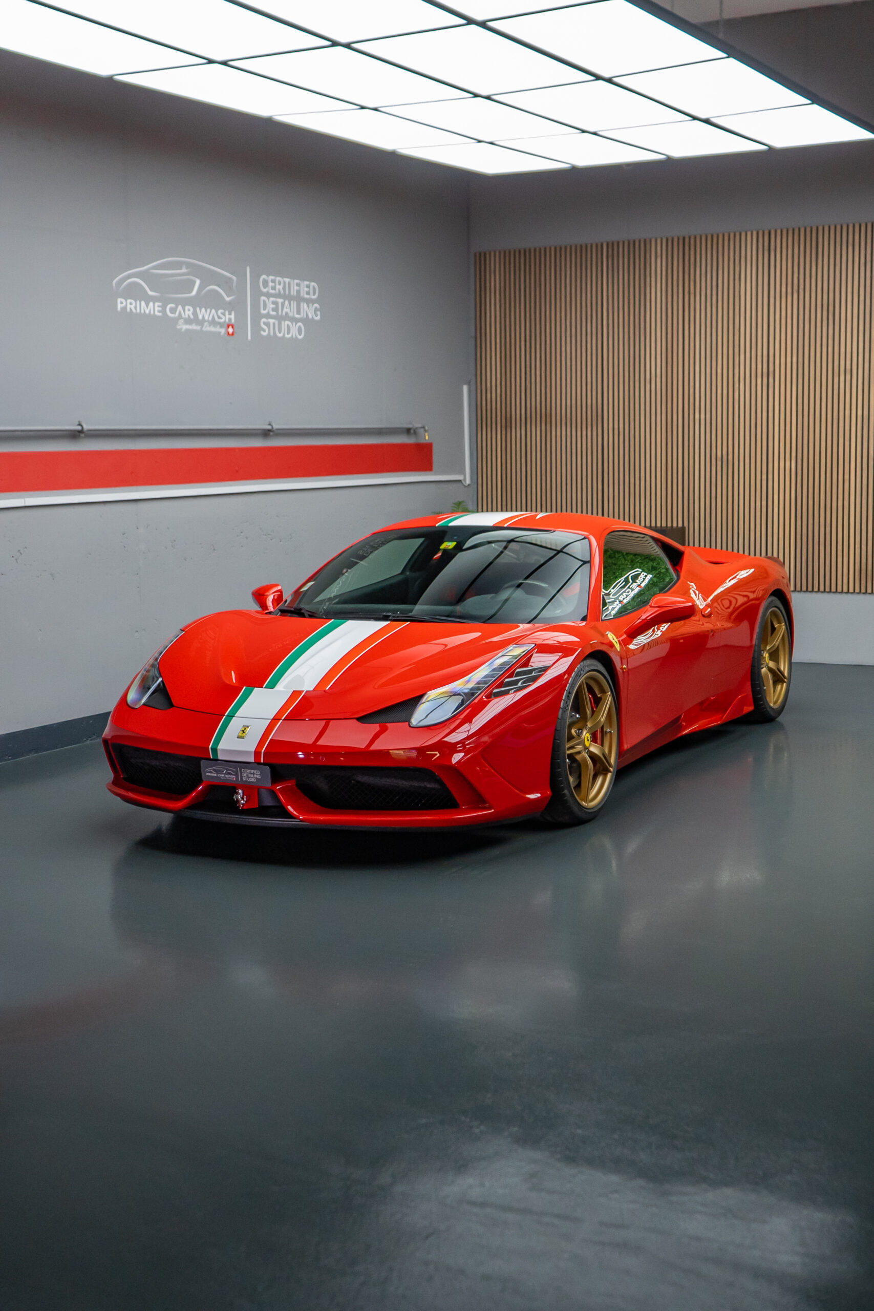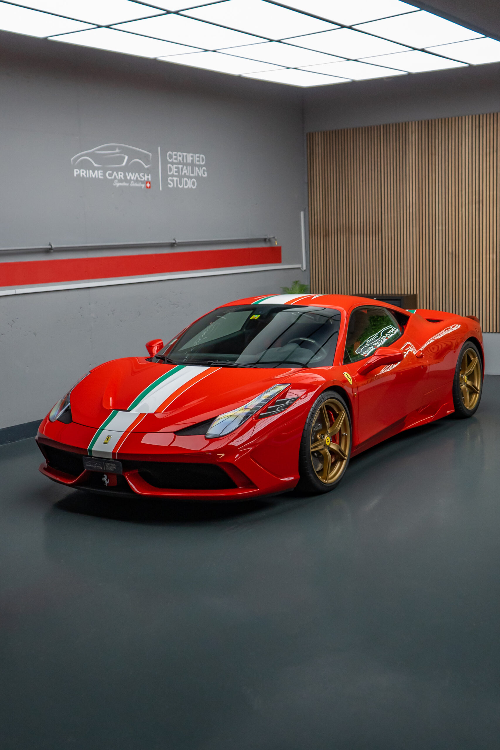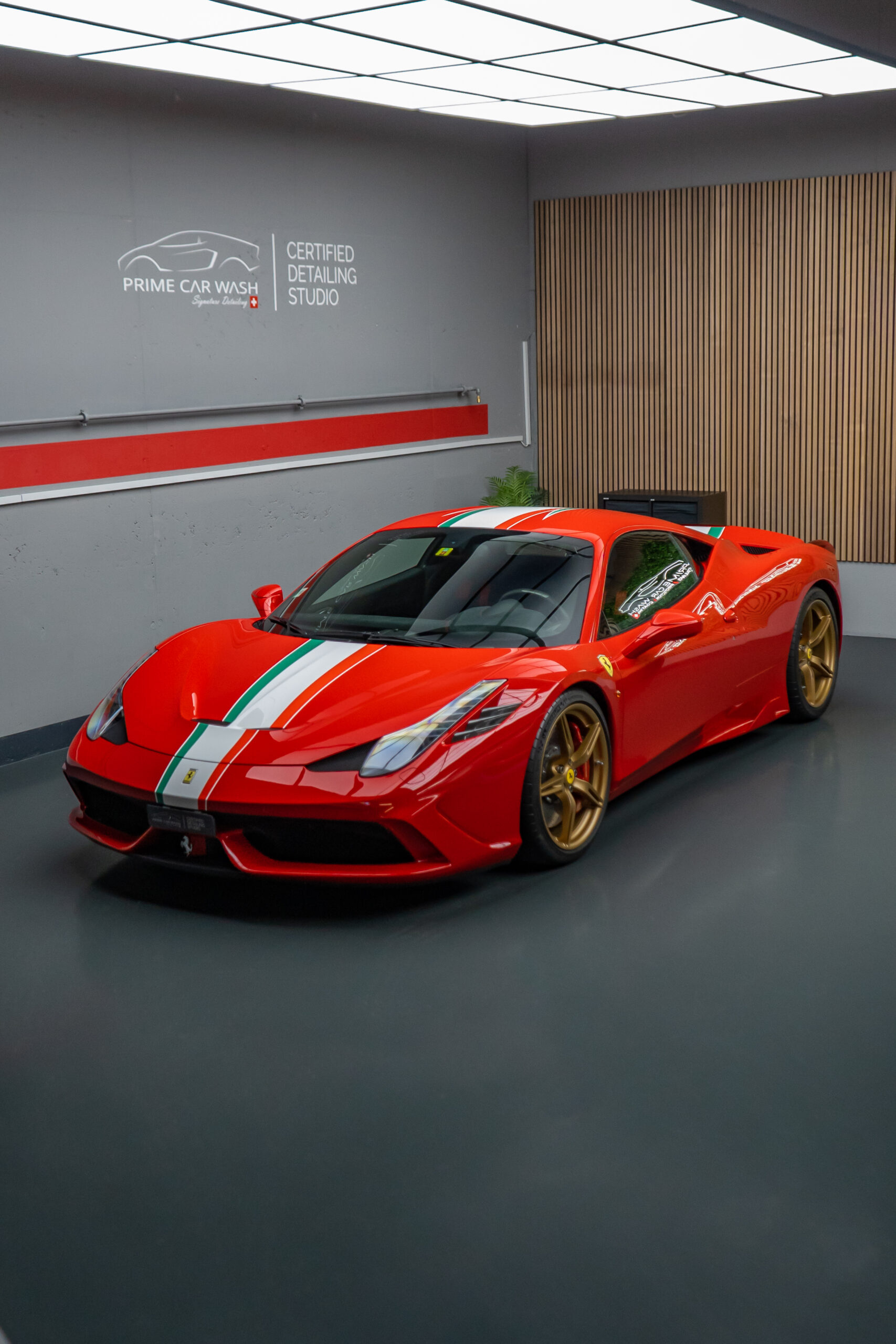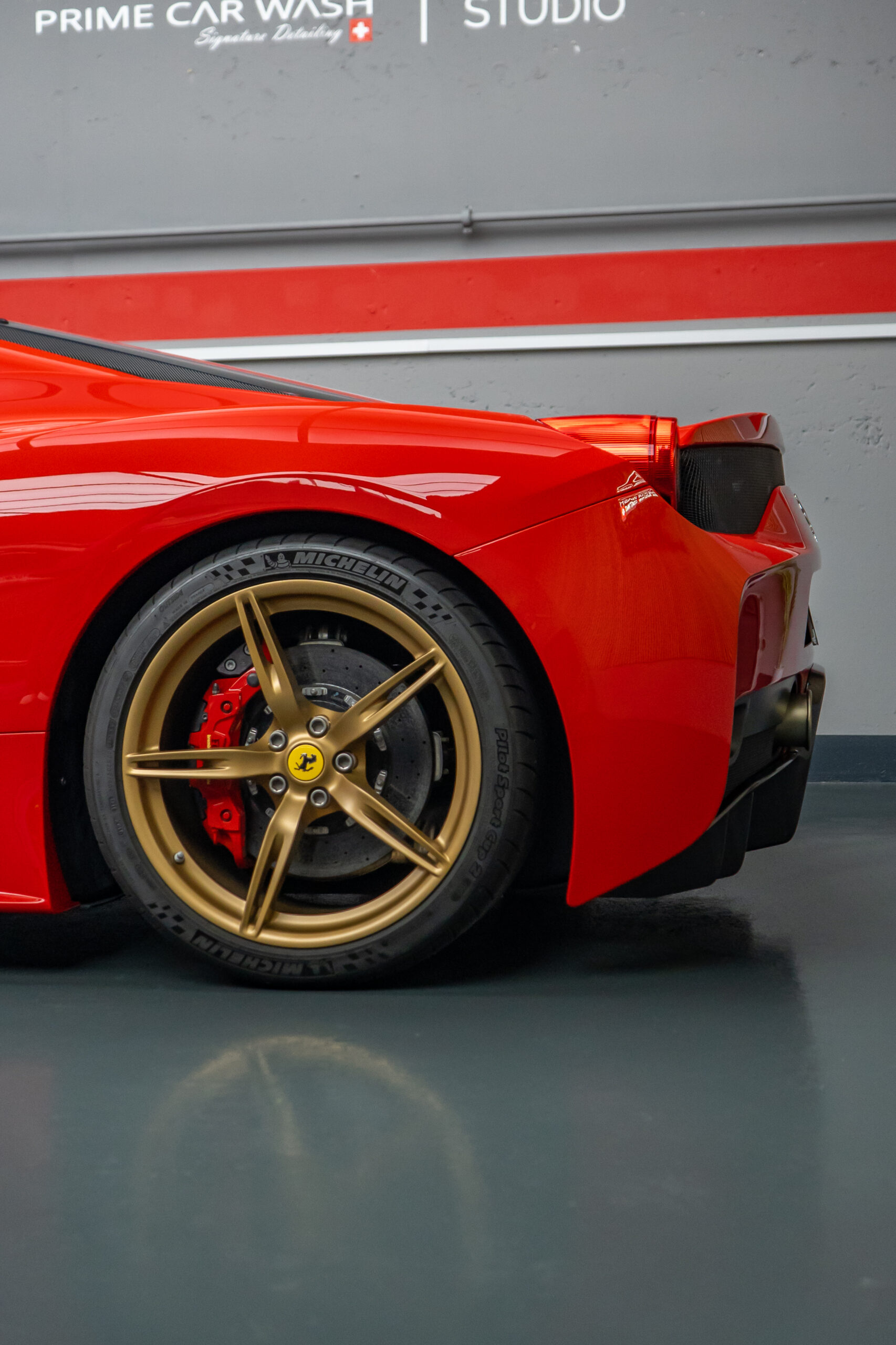 Diesen Ferrari 458 Speciale haben wir mit der Selbstheilenden und höchst Transparenten Lackschutzfolie XPEL Ultimate Plus geschützt.