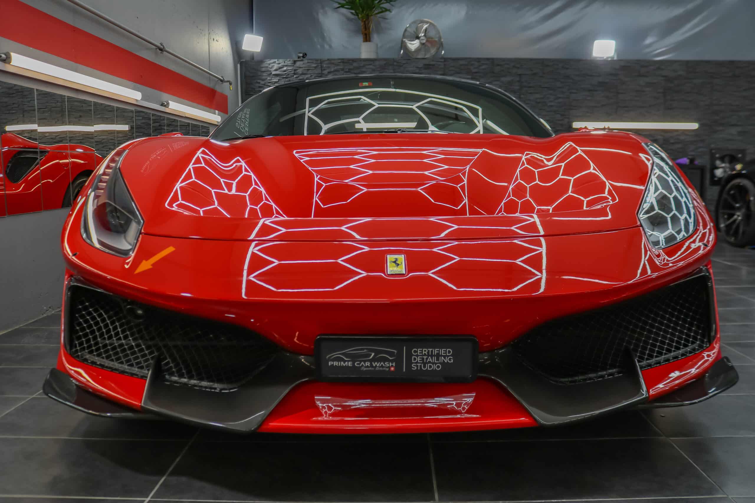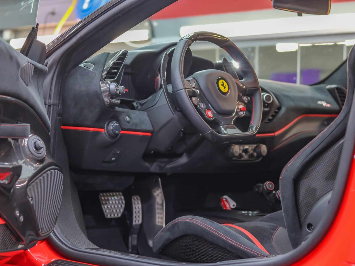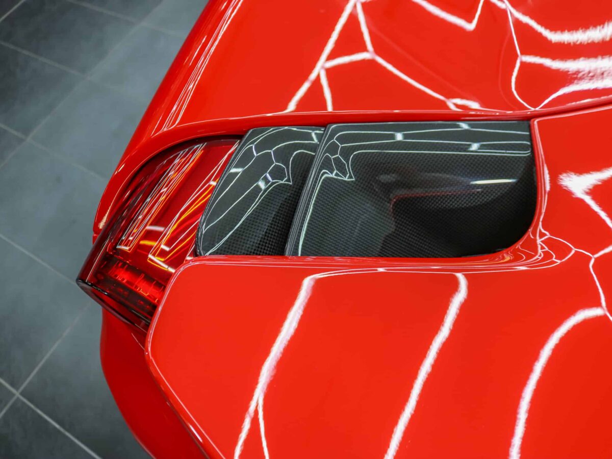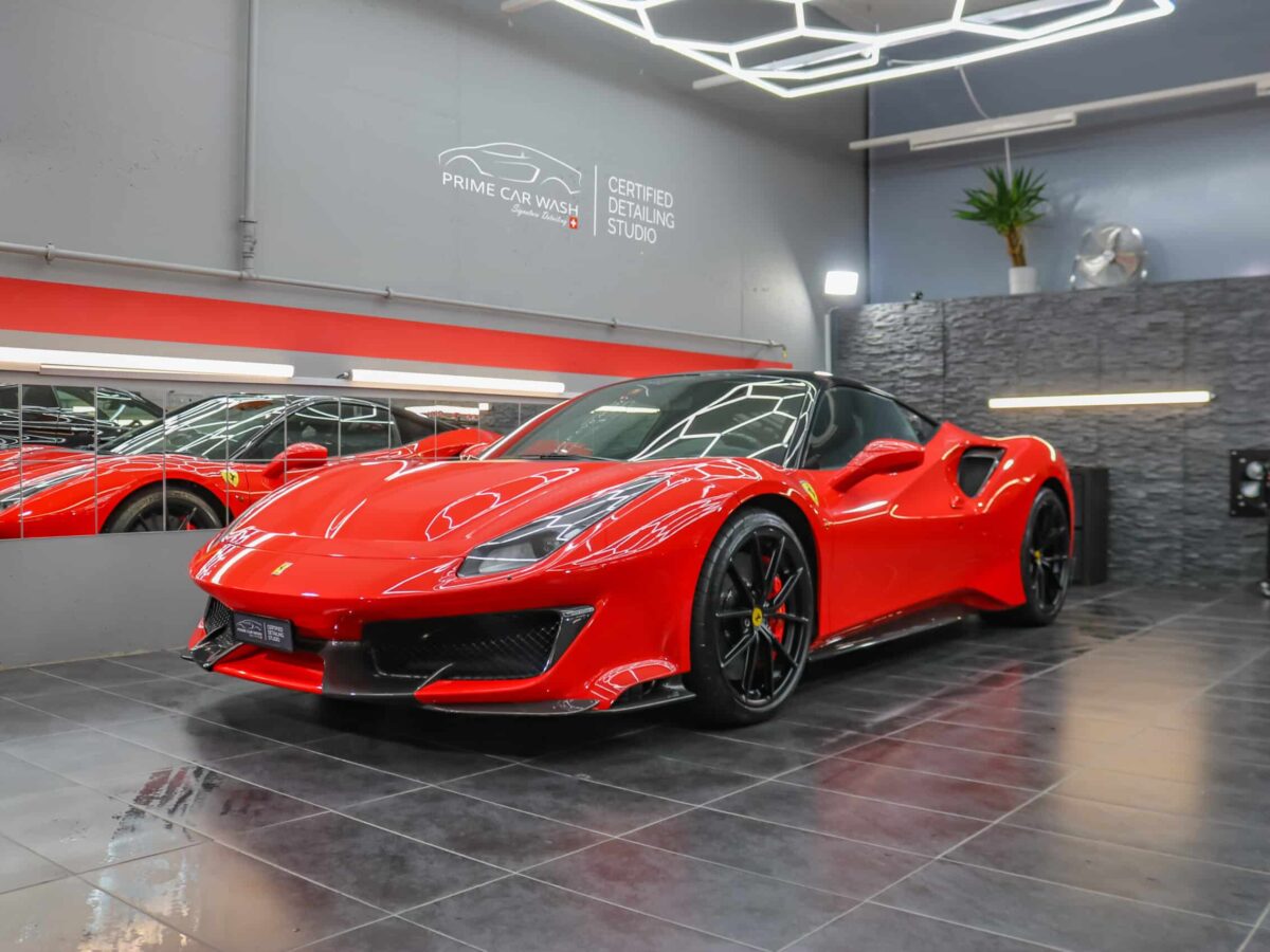 Ferrari 488 Pista Exterieur Detaillierte HandwäscheEntfernung von Gummiabrieb auf dem LackFinish Detailer Lack SchnellversiegelungDetaillierte Felgenreinigung Interieur Interieur AufbereitungKunststoffpflege