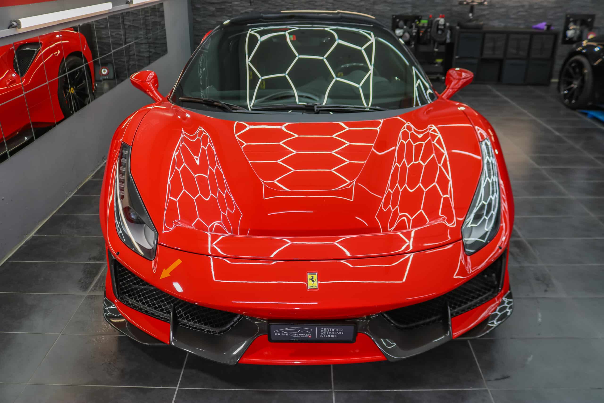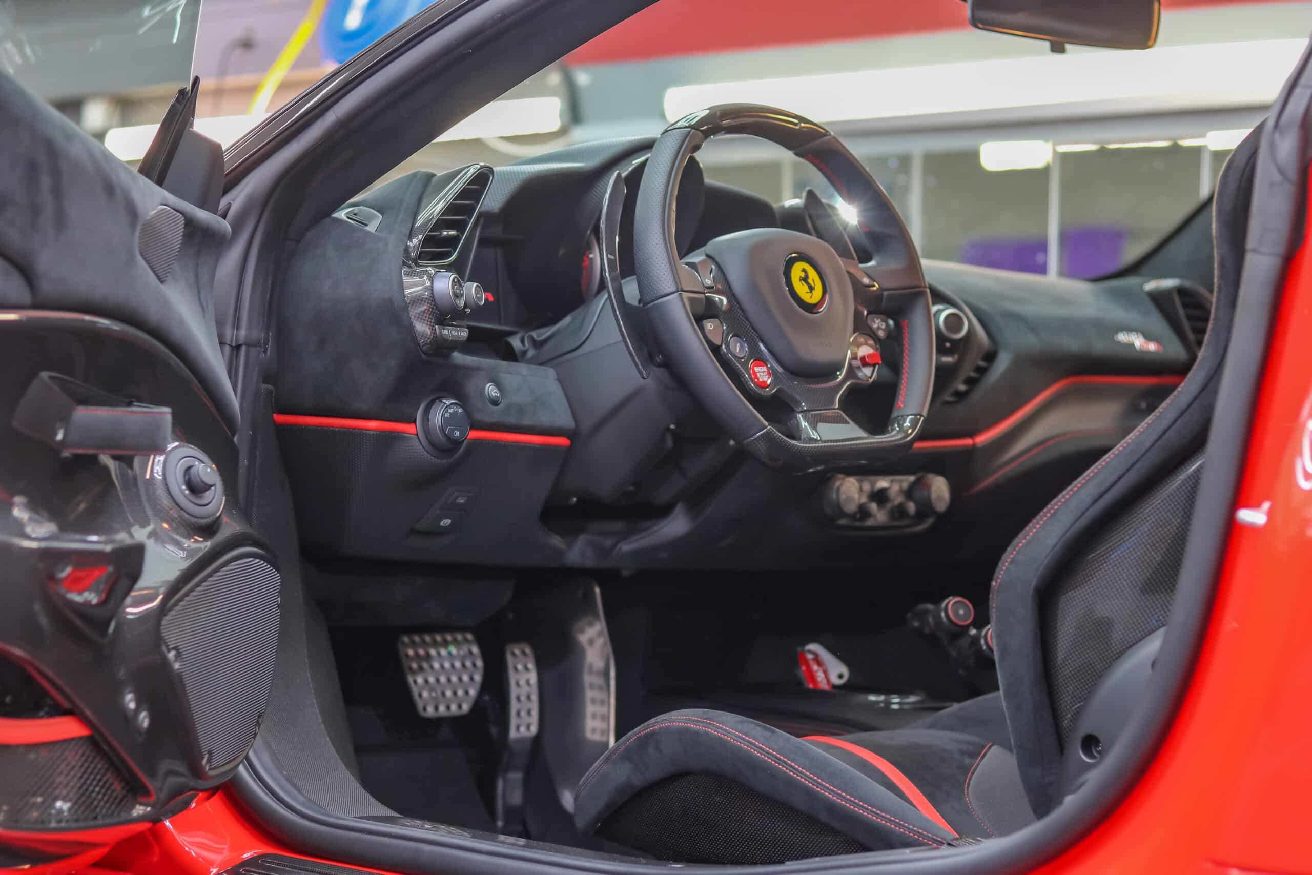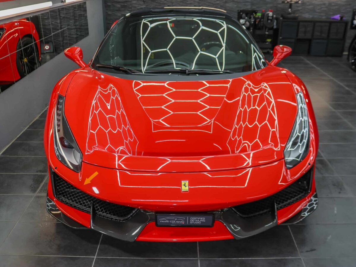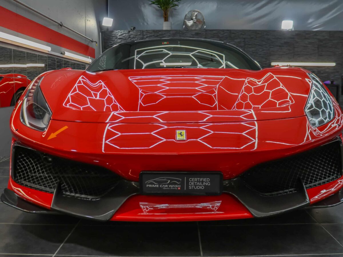 Ferrari 488 Pista Exterieur Detaillierte HandwäscheEntfernung von Gummiabrieb auf dem LackFinish Detailer Lack SchnellversiegelungDetaillierte Felgenreinigung Interieur Interieur AufbereitungKunststoffpflege