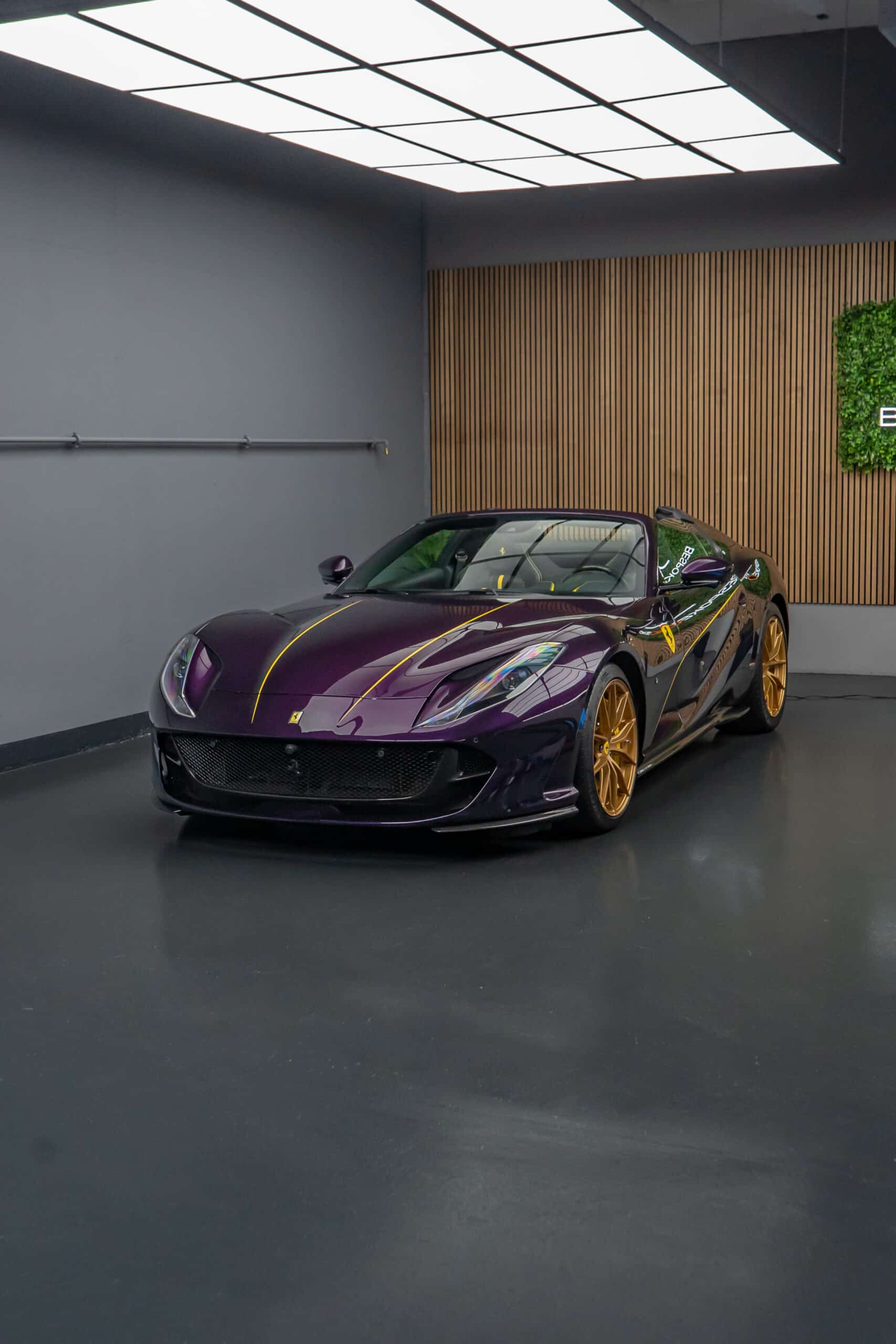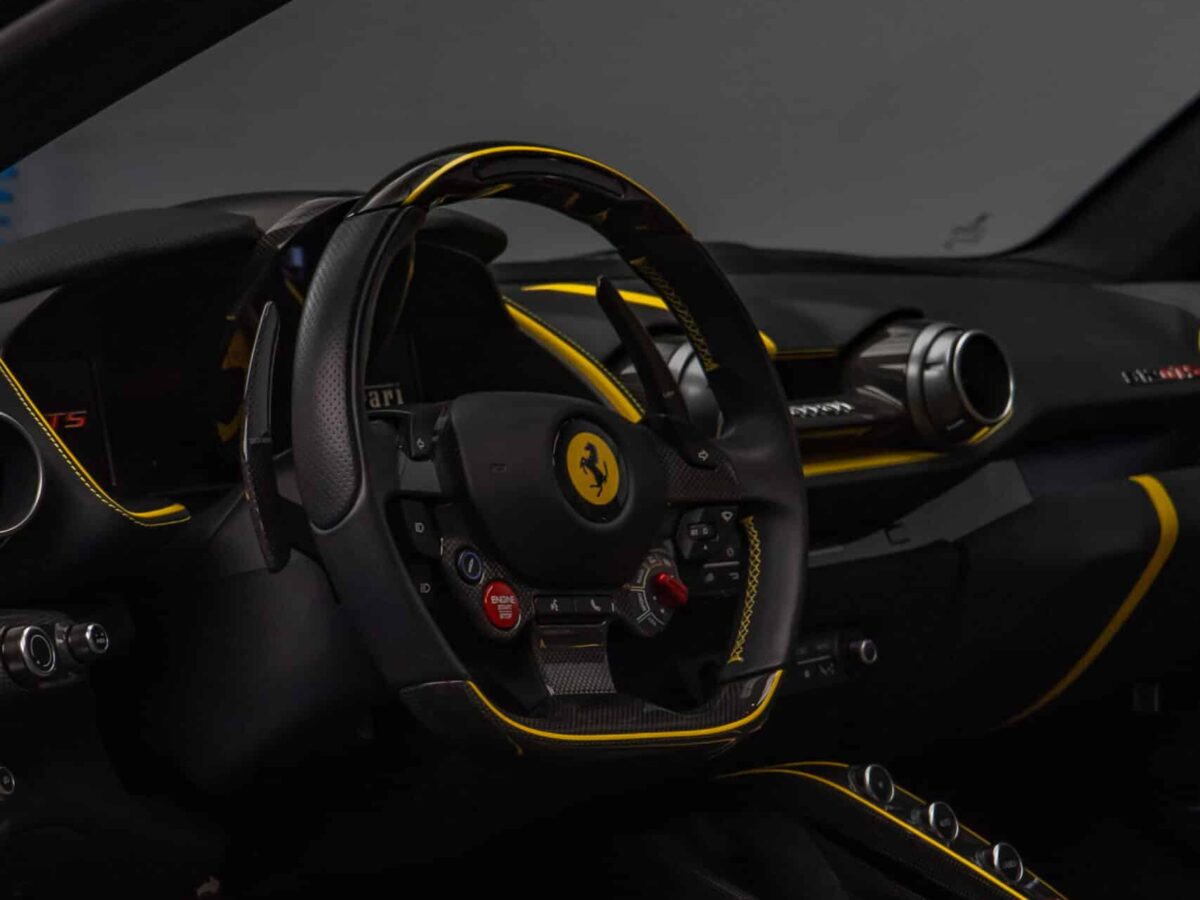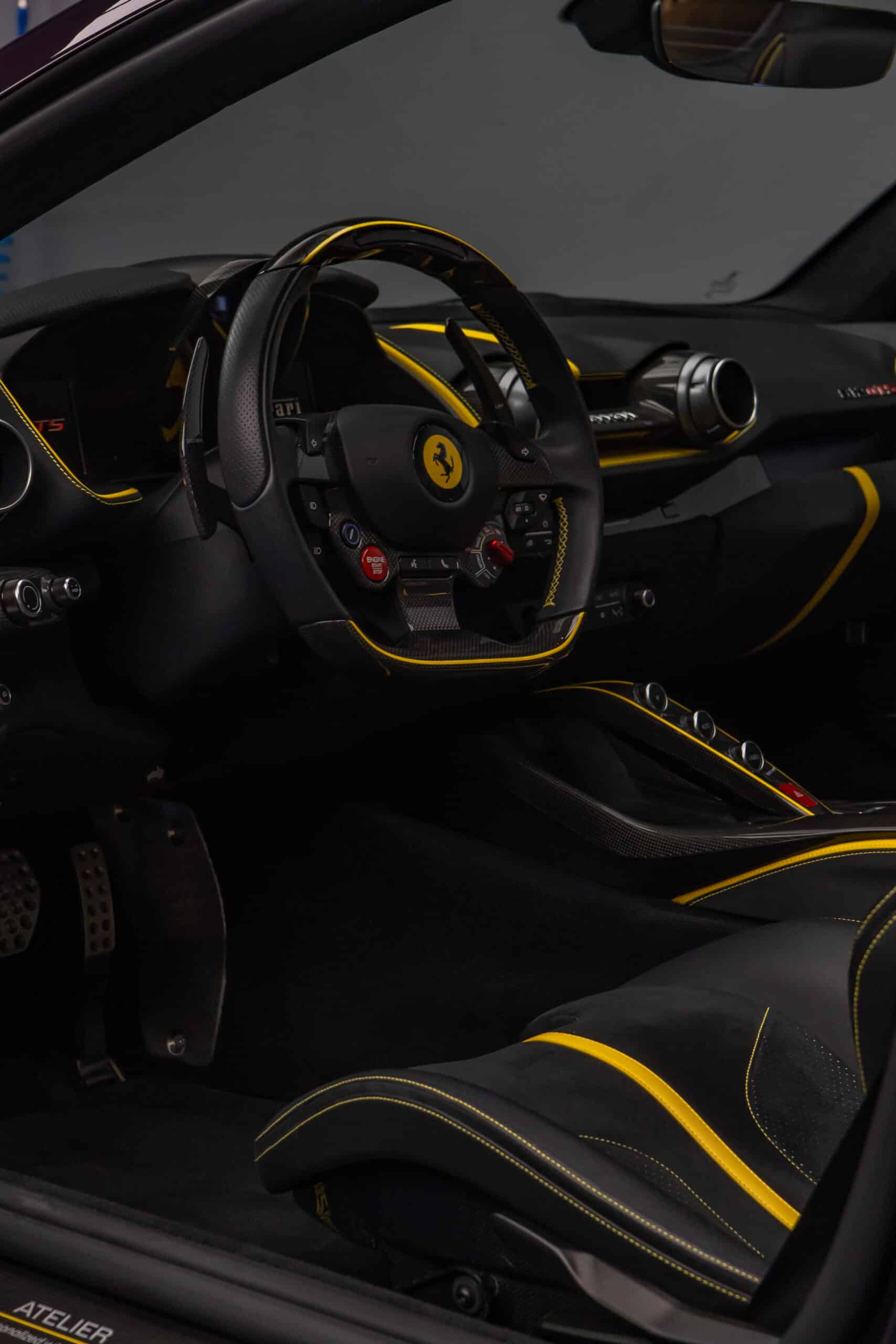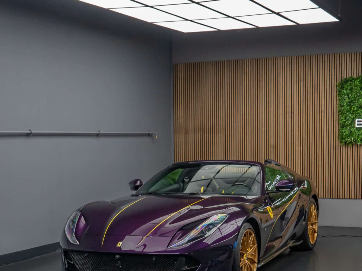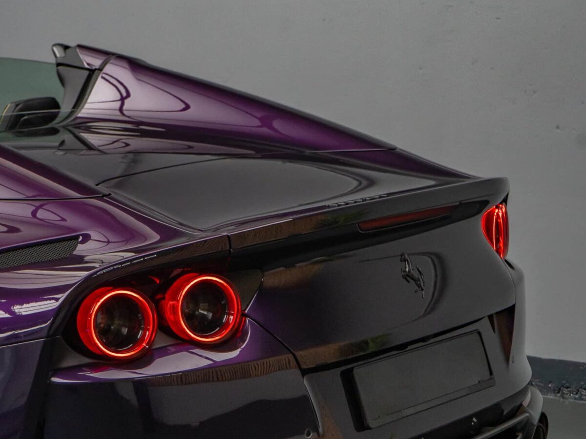 Der Ferrari 812 GTS vereint atemberaubende Designsprache mit der ungezähmten Kraft eines V12-Saugmotors – ein offener Supersportwagen für puristischen Fahrgenuss, gebaut für höchste Ansprüche. Die aussergewöhnliche Farbe Viola Hongkong unterstreicht dabei seine Exklusivität: Ein tief changierender Ton, der je nach Lichteinfall zwischen Violett und Blau oszilliert und den Charakter dieses Fahrzeugs perfekt in Szene setzt.
