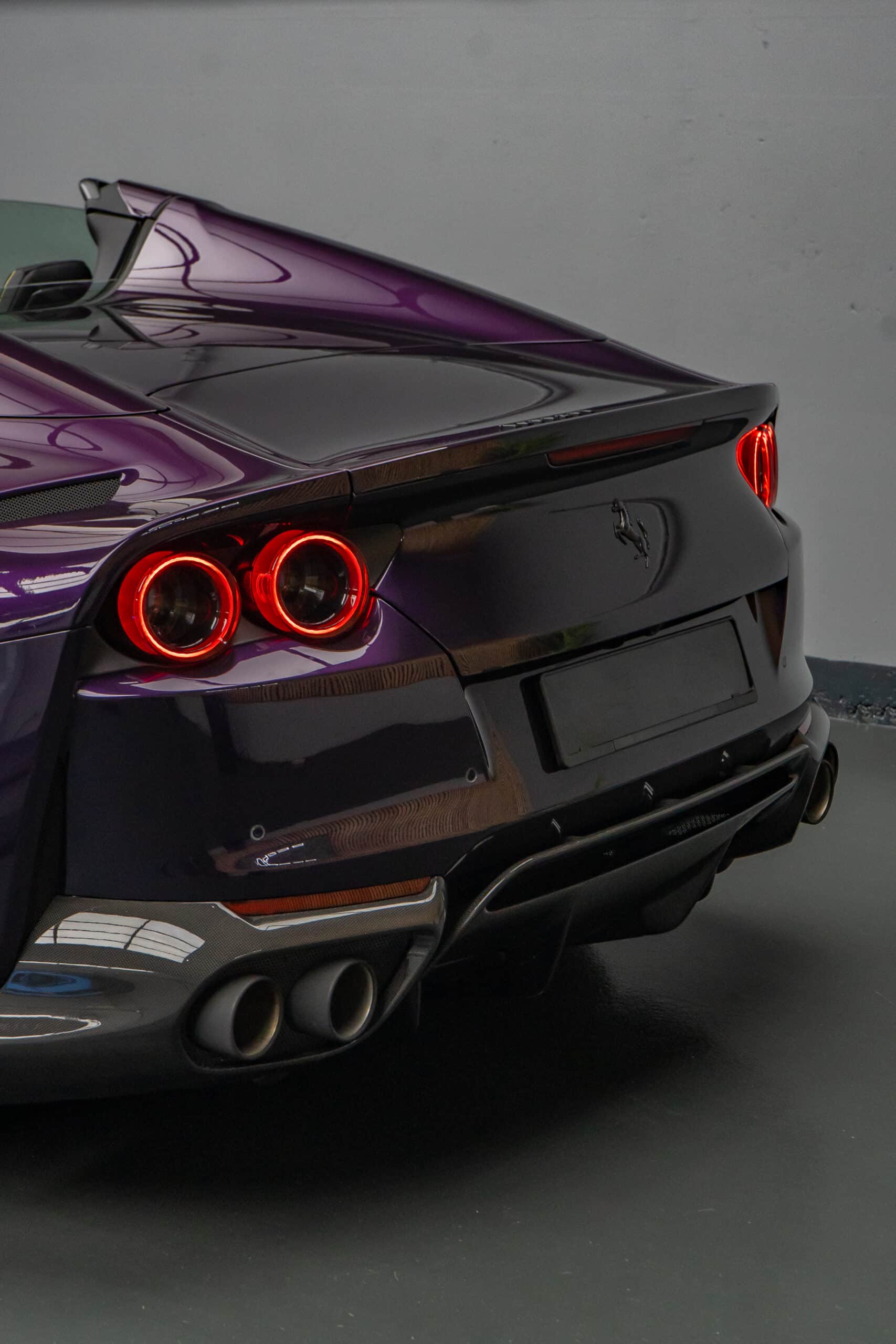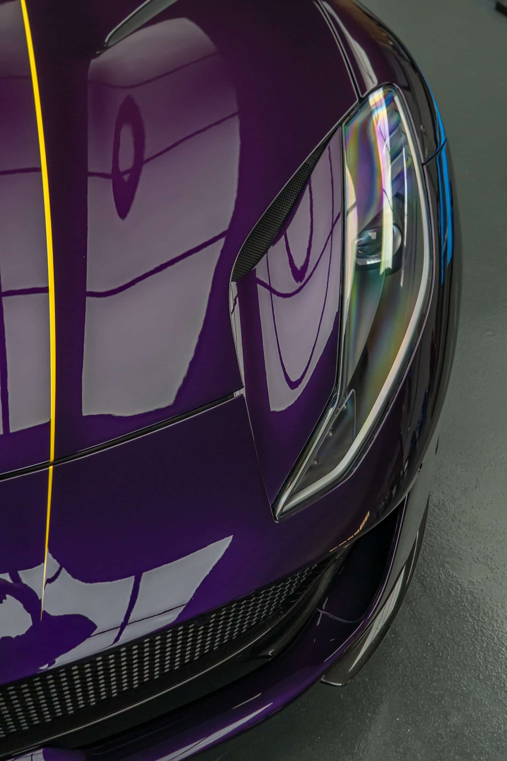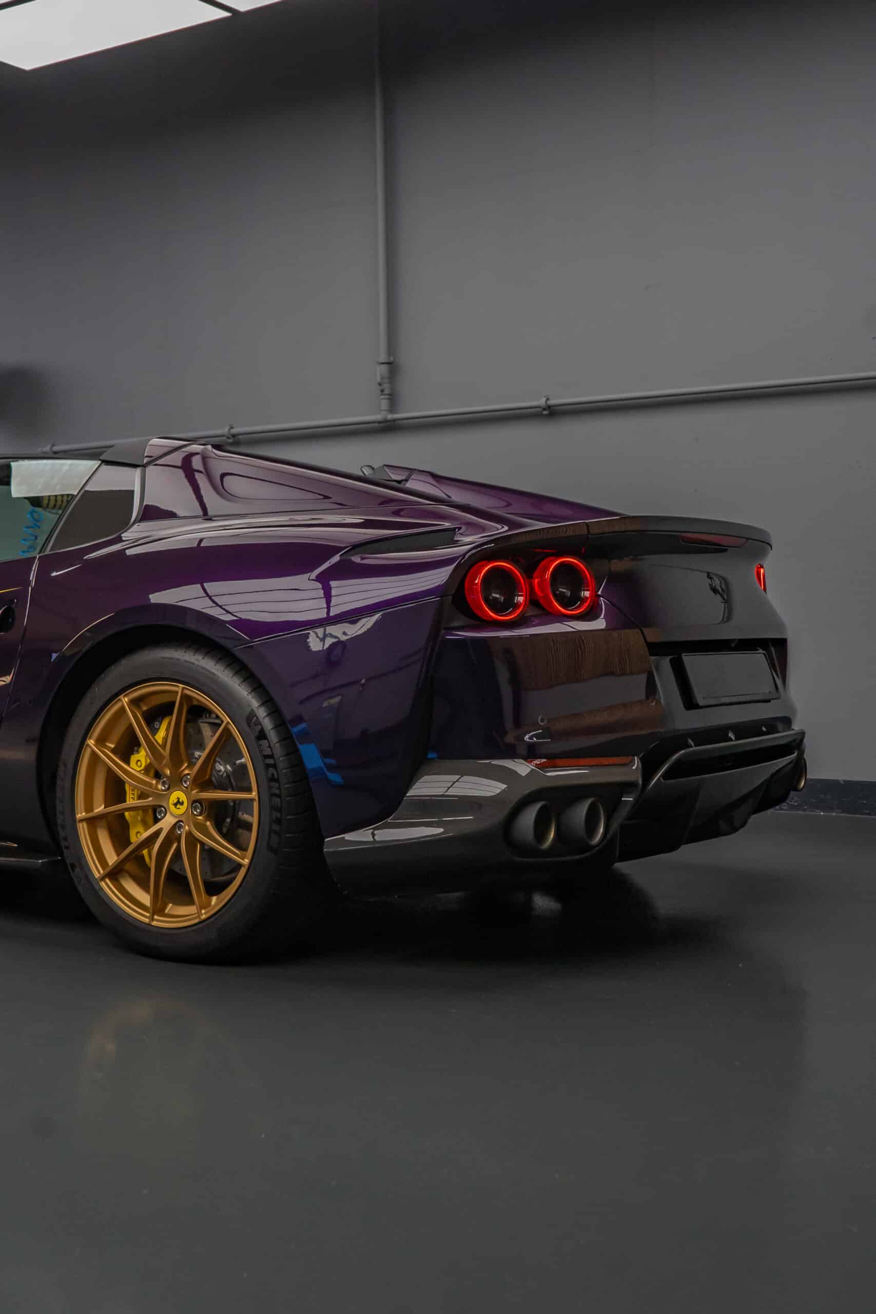 Das Ergebnis: Ein bis ins Detail geschützter Ferrari 812 GTS in der seltenen Farbe Viola Hongkong – technisch und optisch auf höchstem Niveau, bereit für jede Herausforderung auf Strasse und Passstrasse.