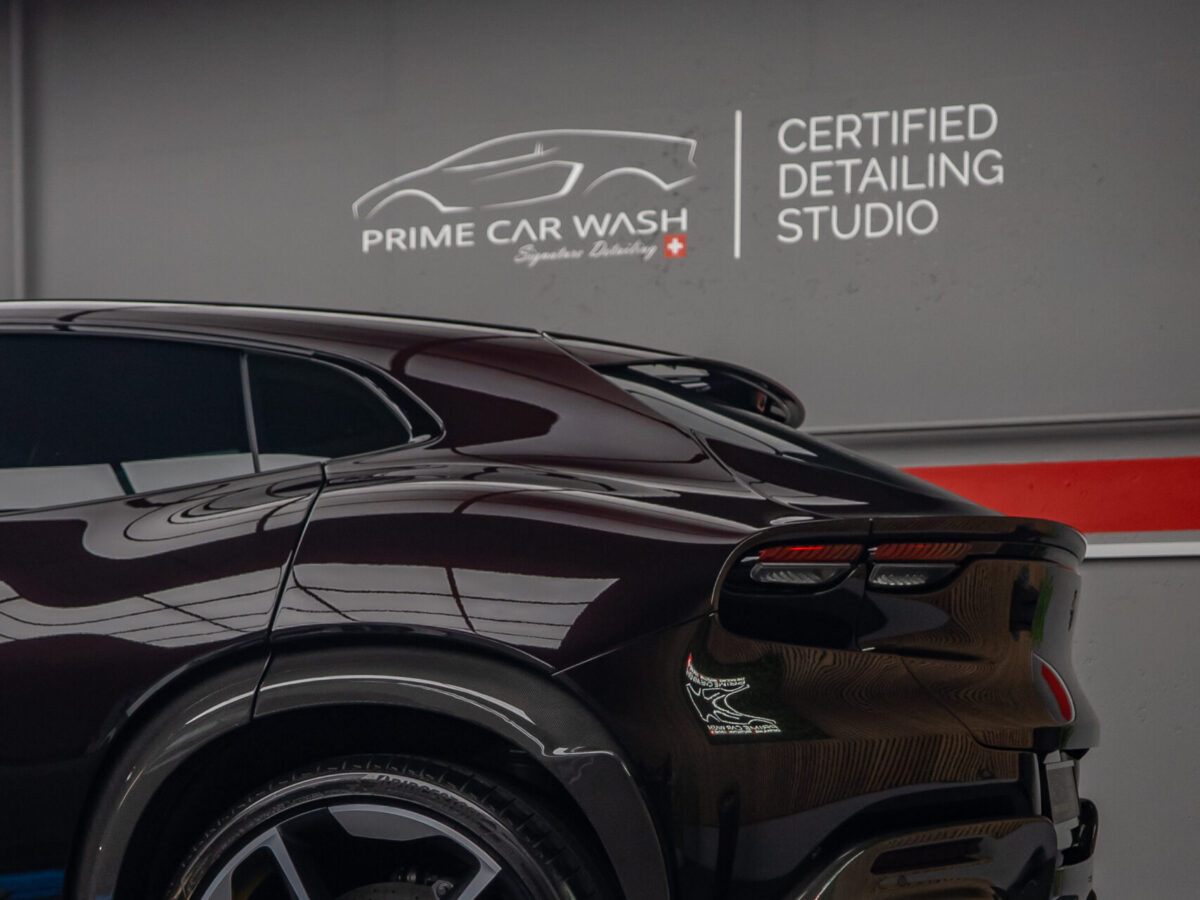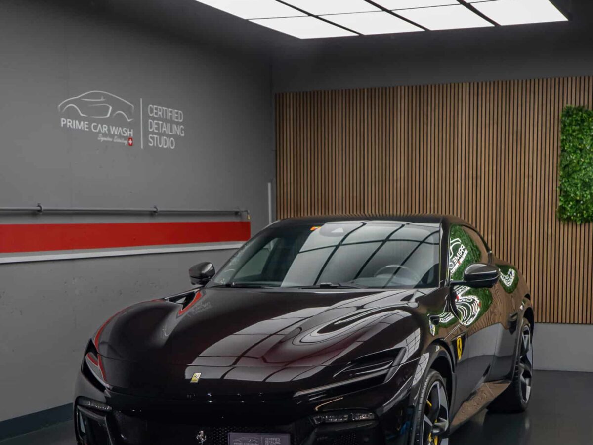 Dieser Ferrari Purosangue in der eleganten Farbe Nero Purosangue ist ein Statement aus Kraft, Luxus und Design. Um den edlen Lack dieses aussergewöhnlichen Fahrzeugs von Anfang an optimal zu bewahren, wurde der Neuwagen von uns vollständig mit unserer hochwertigen, selbstheilenden Lackschutzfolie geschützt.