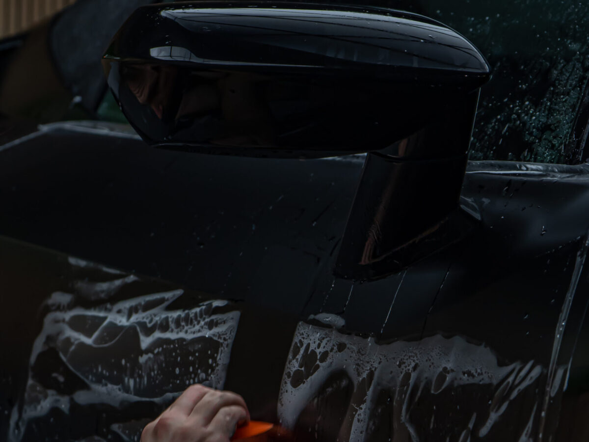 Zusätzlich wurden einige Details an den Seitenschweller, Seitenspiegel und Frontlippe mit gelber Lackschutzfolie akzentuiert – für einen noch individuelleren Auftritt.