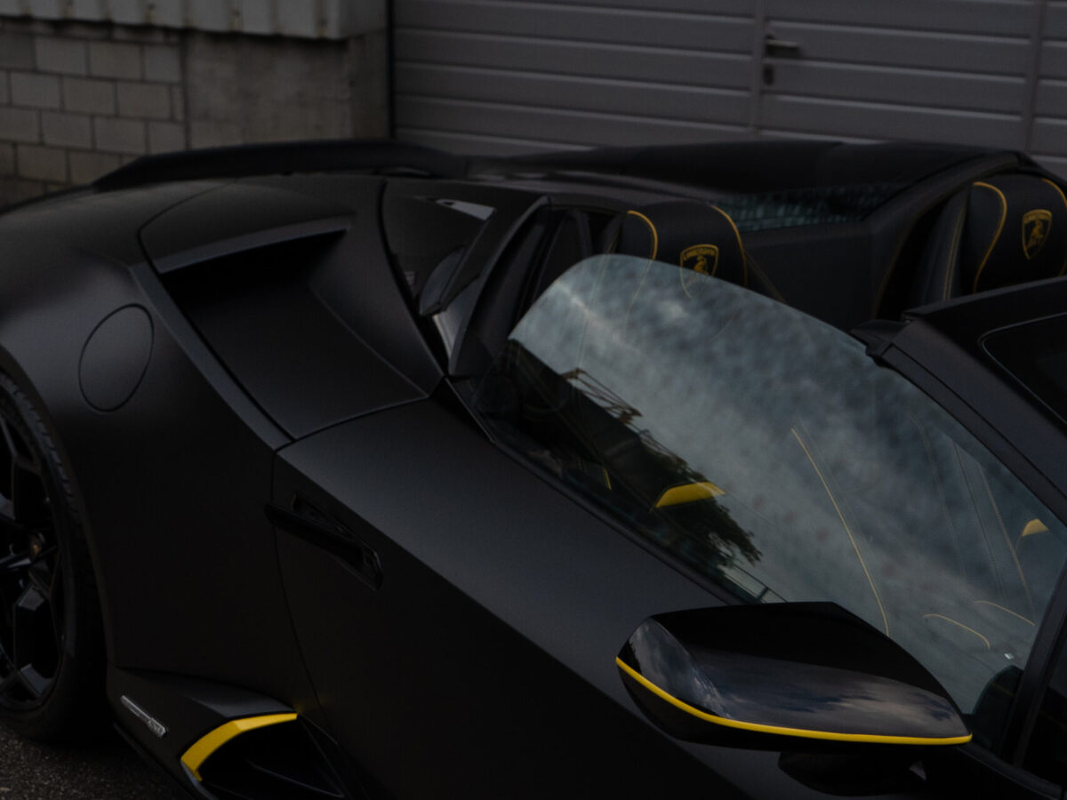 Die matte, selbstheilende Folie bietet maximalen Schutz vor Steinschlägen, Kratzern und Umwelteinflüssen – ohne die scharfen Linien und die aggressive Erscheinung des Huracan zu beeinträchtigen. Präzise an jede Kontur des Fahrzeugs angepasst, bleibt sein Auftritt makellos und kompromisslos.