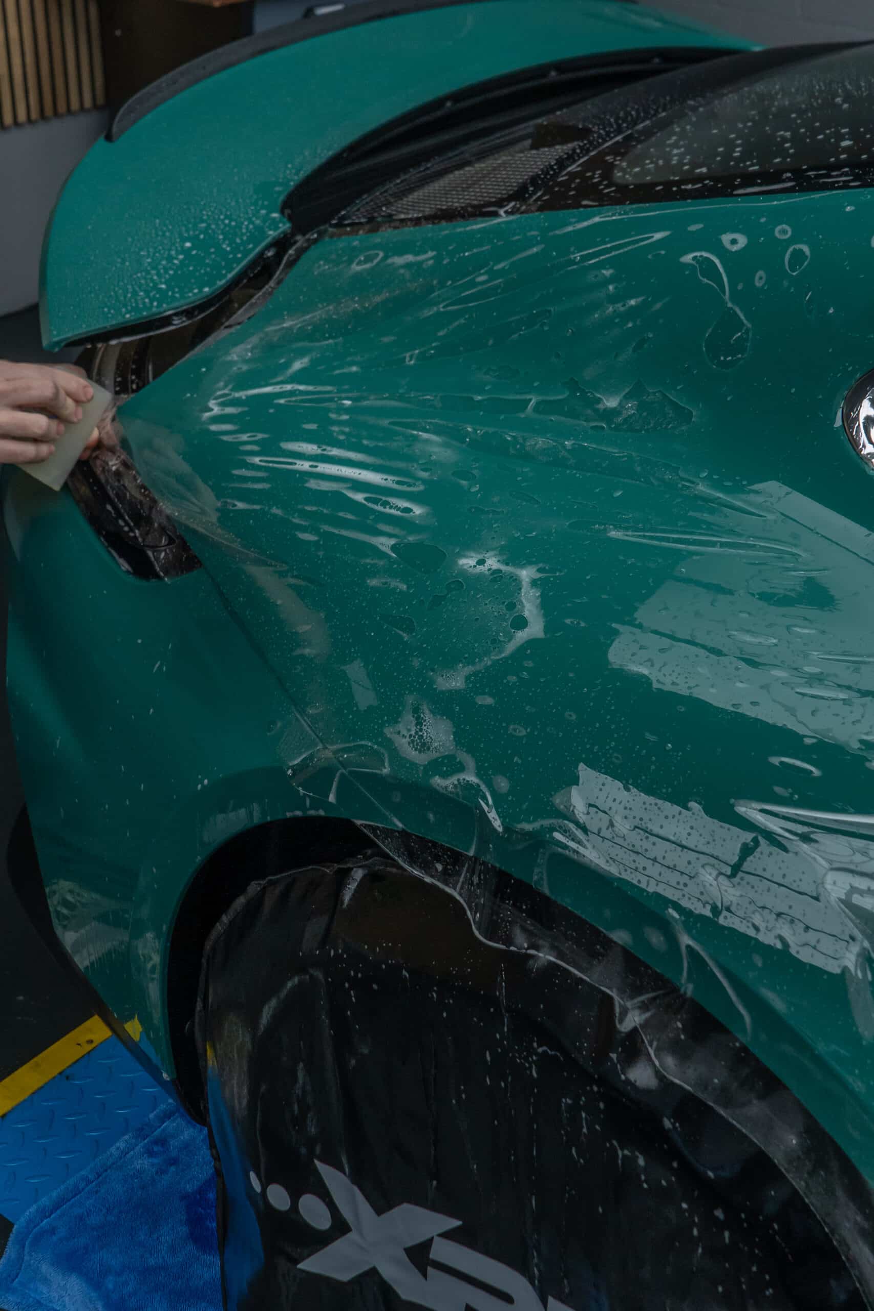 Um dieses rare Finish langfristig makellos zu halten, haben wir den kompletten Wagen vollflächig mit unserer selbstheilenden Lackschutzfolie (PPF) geschützt – speziell XPEL Ultimate Plus für Porsche GT-Modelle.