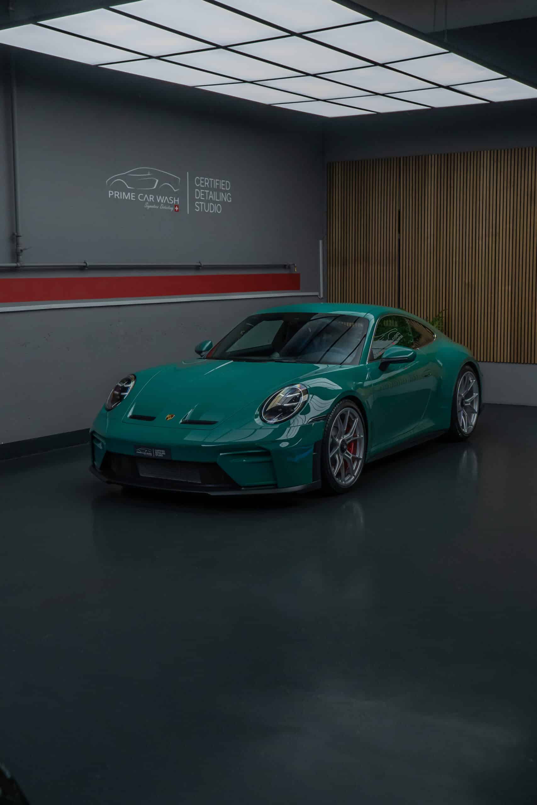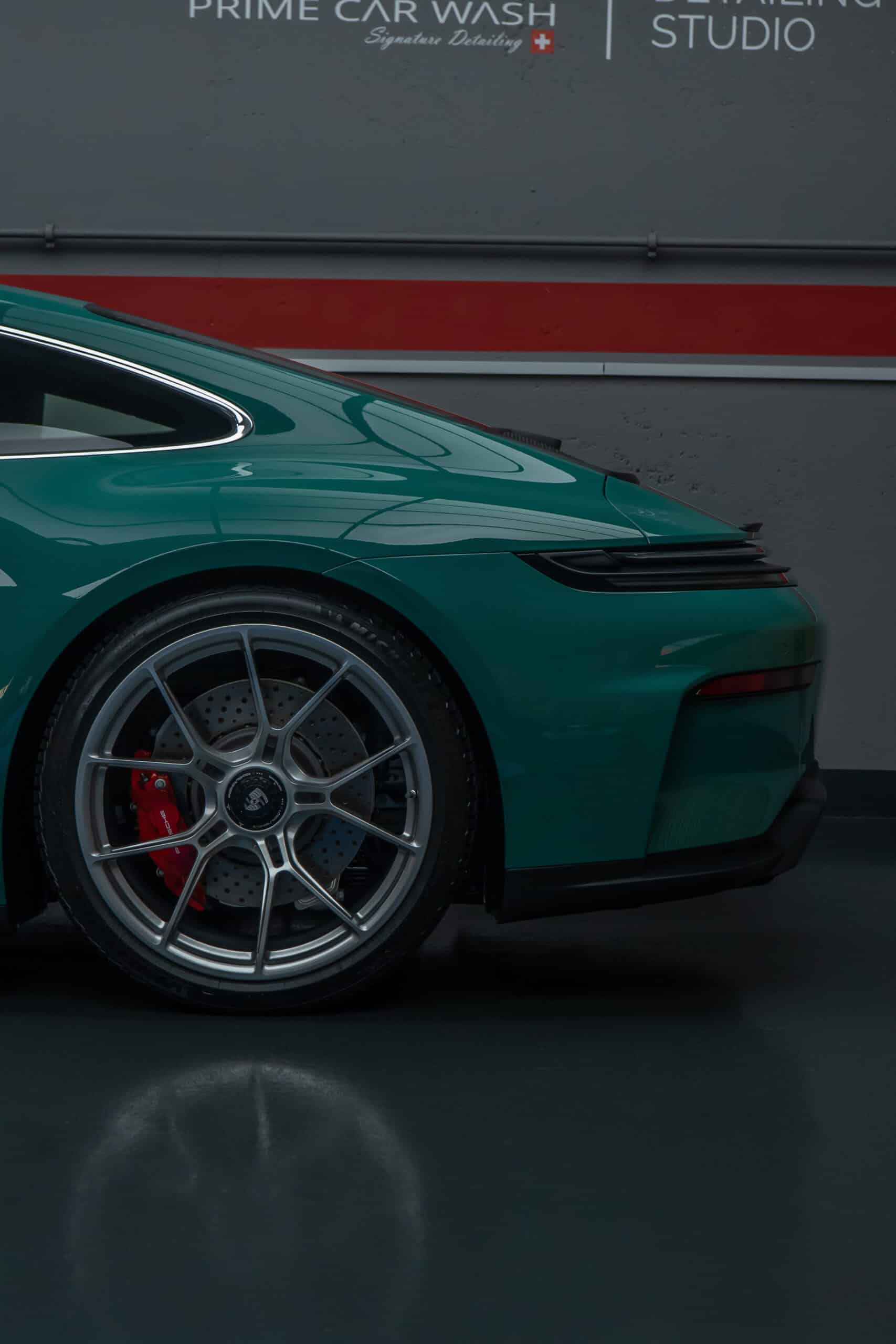 Das Ergebnis: Smyrna Green bleibt Smyrna Green. Keine Steinschläge. Keine Swirls. Keine Mikrokratzer. Keine Vergrauung durch Waschanlagen. Ein Porsche 992.2 GT3 Touring, der gefahren werden kann, wie er gefahren werden soll – ohne Kompromisse. Ohne Angst. Und ohne optische Einschränkungen.