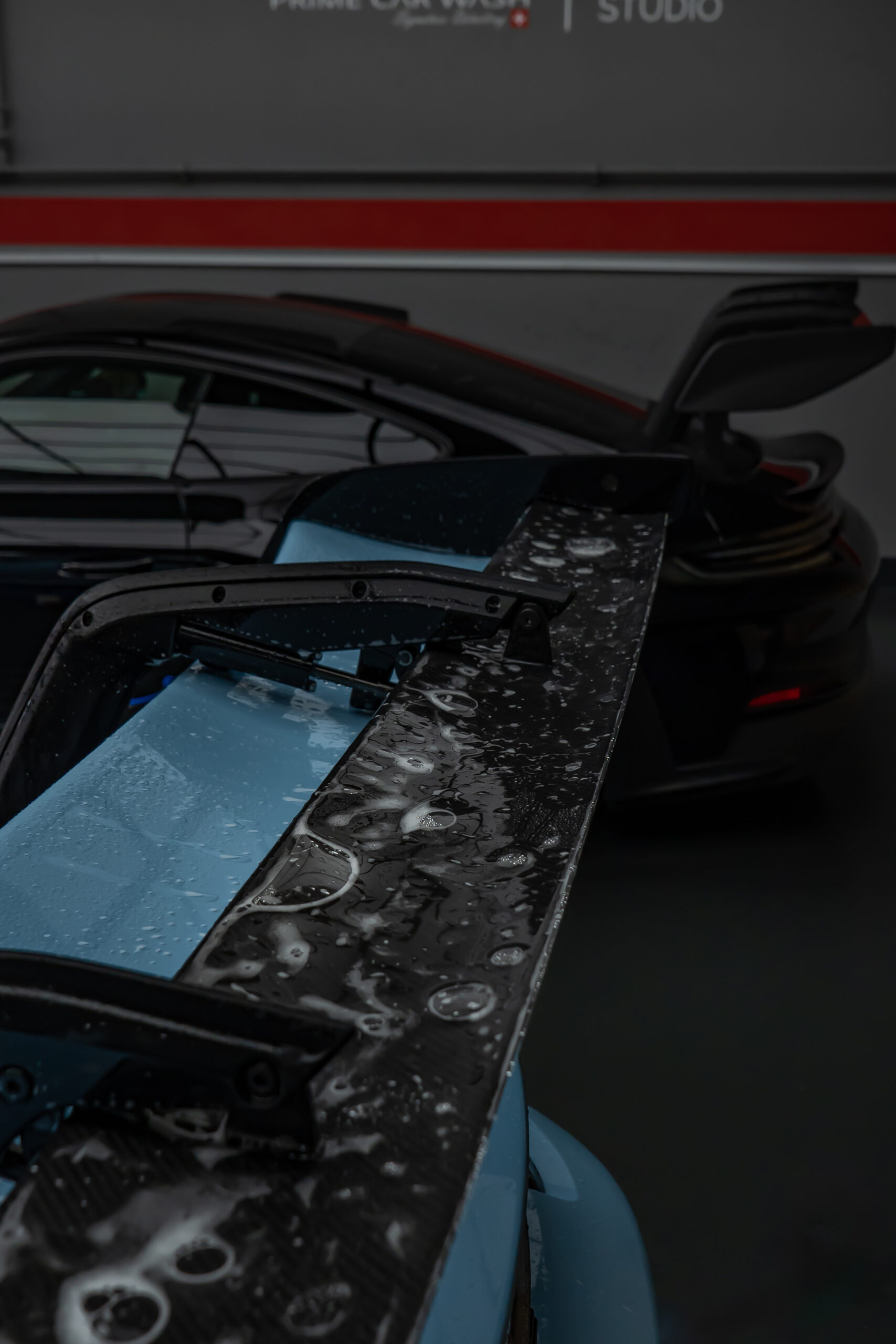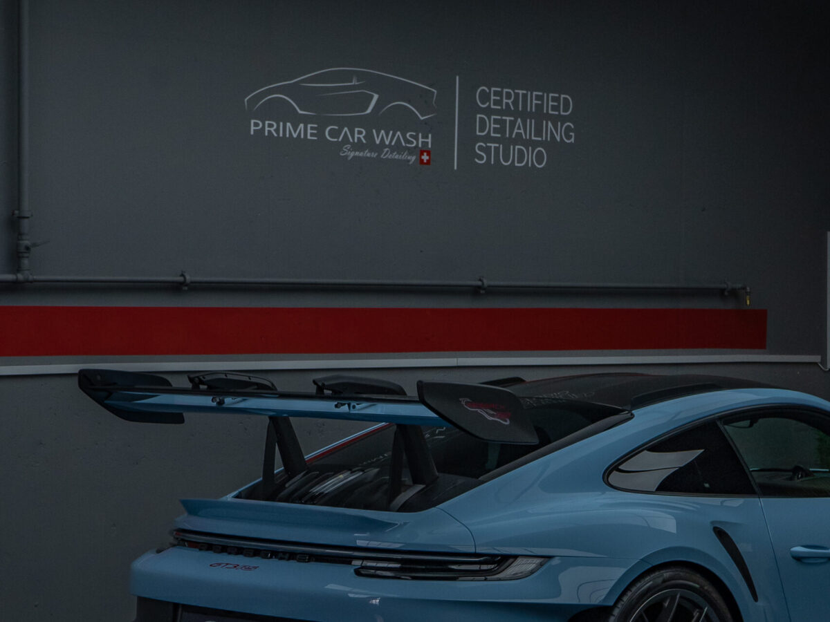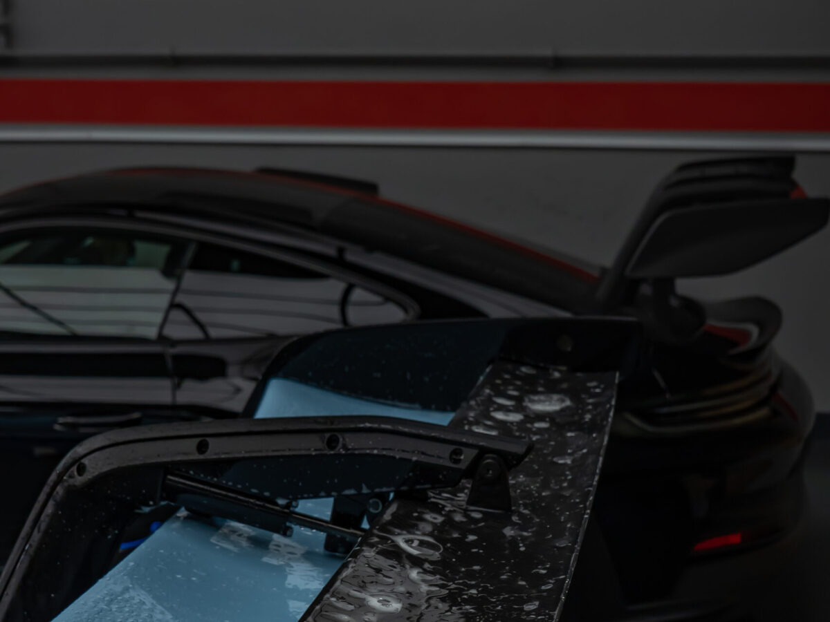 Warum Porsche 992 GT3 RS PPF & Keramik die ideale Kombination ist. Der 992 GT3 RS wird auf der Rennstrecke extrem beansprucht: hohe Geschwindigkeiten, Bremsstaub, Steinschlag von Kies und Asphalt, Insektenreste und intensive UV-Belastung. Eine reine Lackversiegelung reicht hier meist nicht aus. Die Kombination aus selbstheilender PPF und Keramikversiegelung bietet doppelten Schutz: Die Folie absorbiert mechanische Einflüsse und heilt kleine Kratzer durch Wärme (z. B. Sonne oder heißes Wasser) selbstständig aus, während die 9H-Keramik zusätzlichen chemischen Schutz, extreme Wasserabweisung und einen spiegelartigen Glanz liefert.