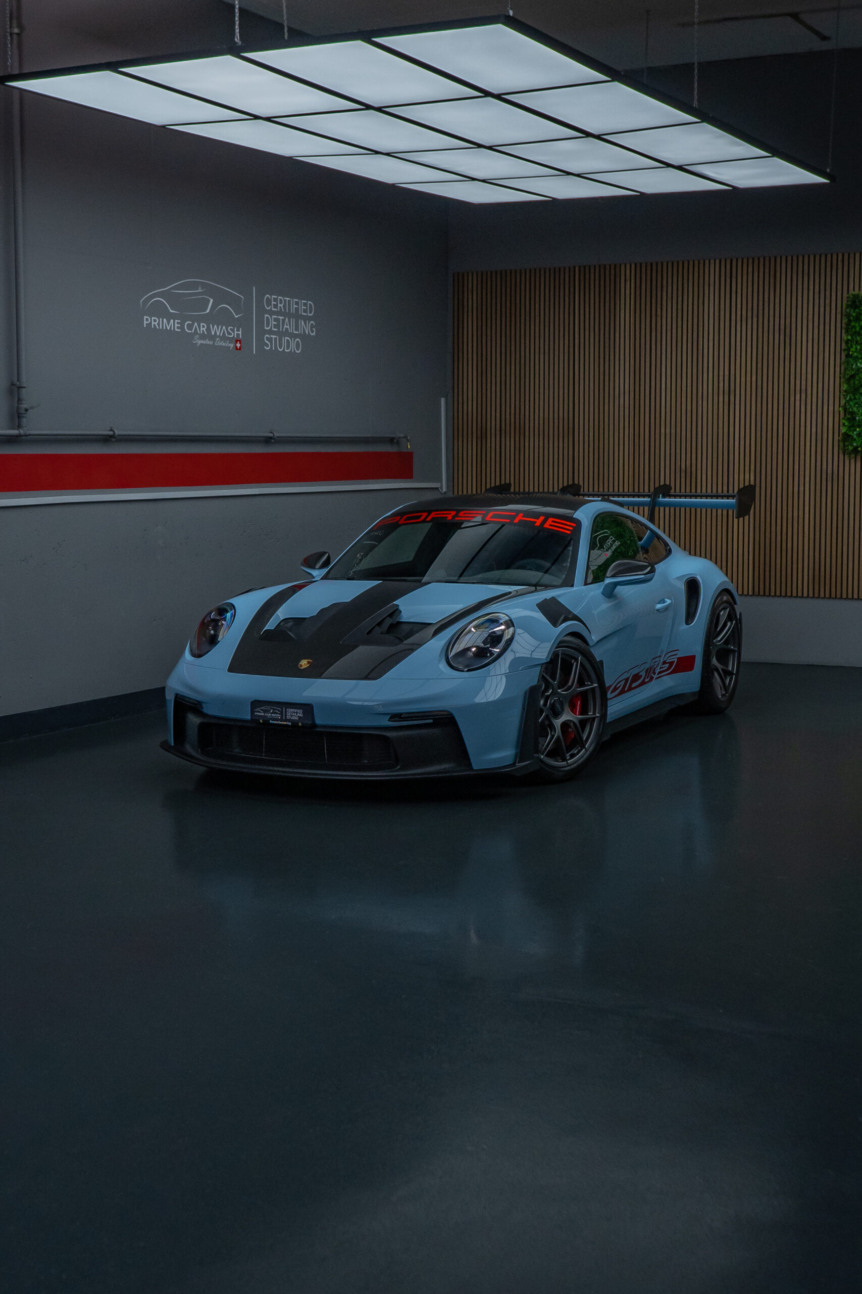 Der Porsche 911 GT3 RS (992) mit Weissach-Paket in exklusivem Paint-to-Sample Gulf Blue (Gulf Blau) zählt zu den begehrtesten und leistungsstärksten Sportwagen seiner Klasse – und verdient entsprechend den besten Lackschutz, den es aktuell gibt.
