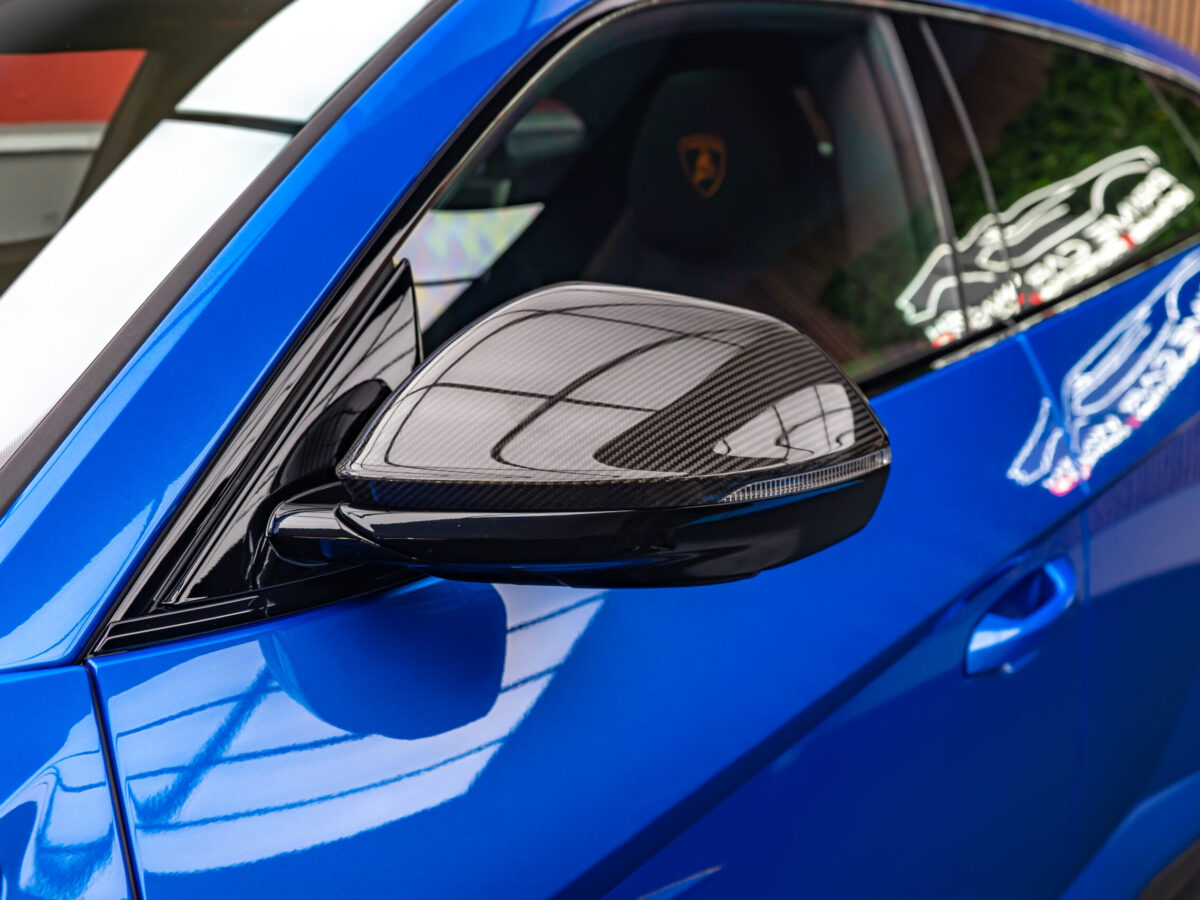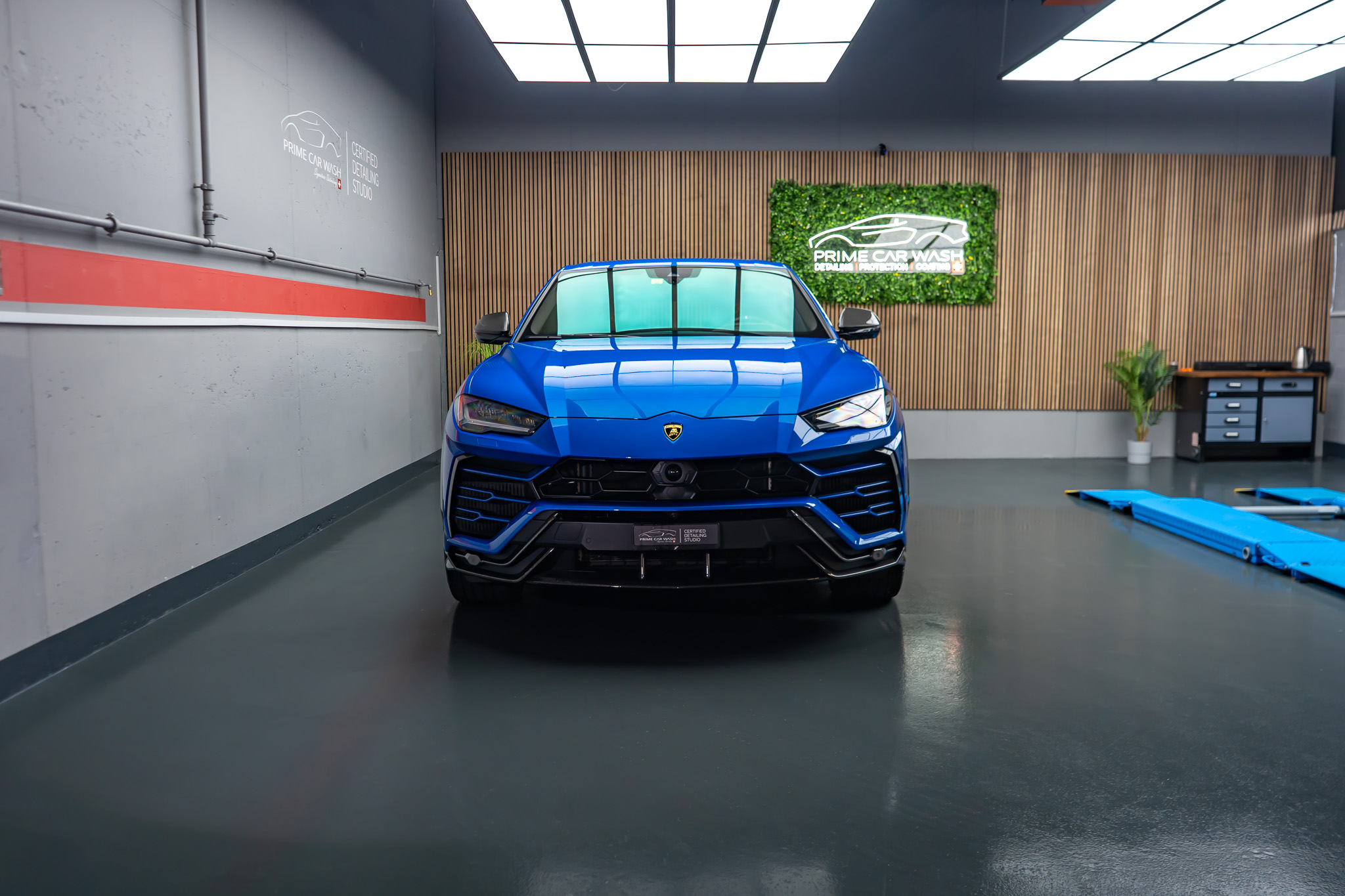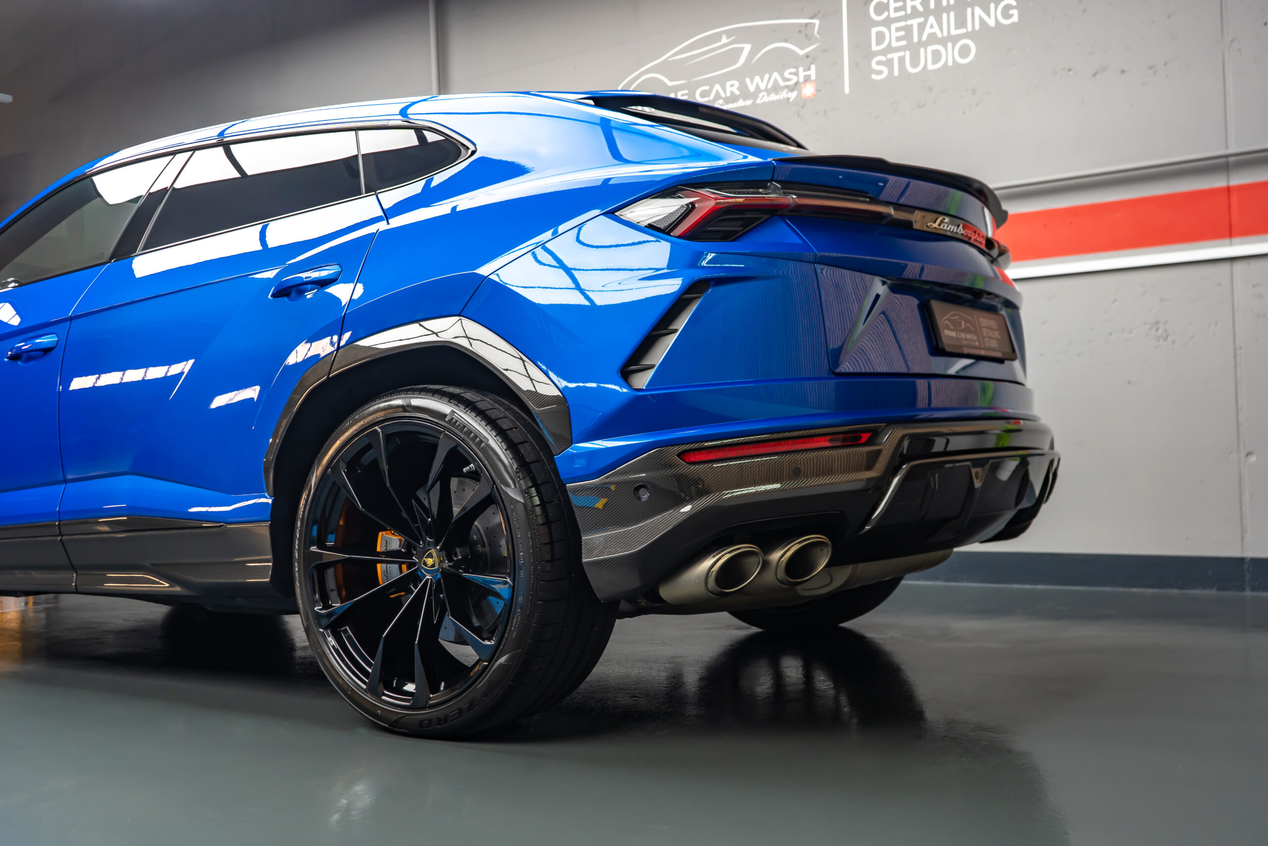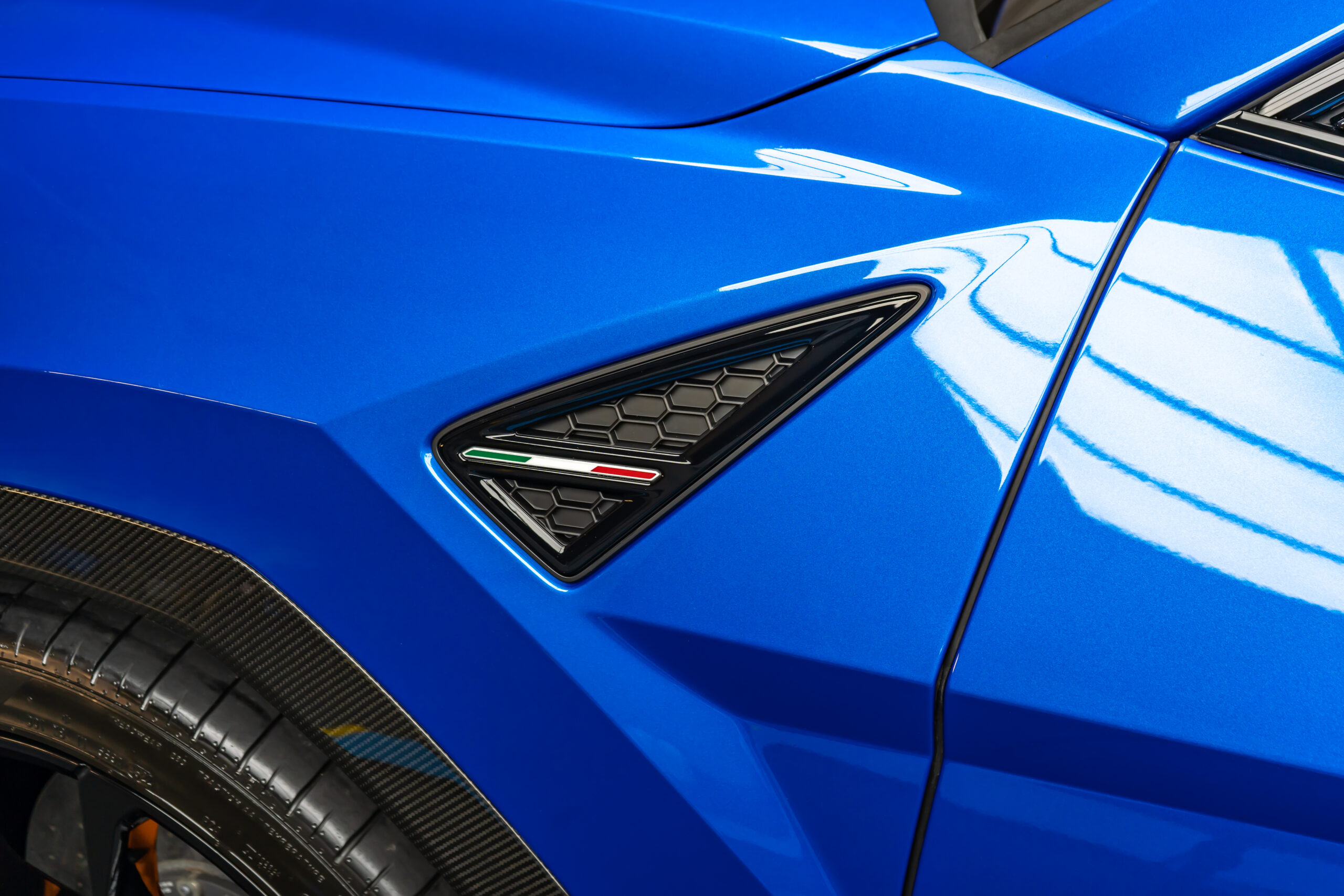On this Urus, the bumper, fenders, hood and carbon side mirrors were protected with XPEL Ultimate Plus film. Unlike conventional paint protection films with a thickness of 120-150 µ, the Xpel Ultimate Plus with a thickness of 200 µ offers maximum impact and abrasion resistance. It is completely transparent and virtually invisible.