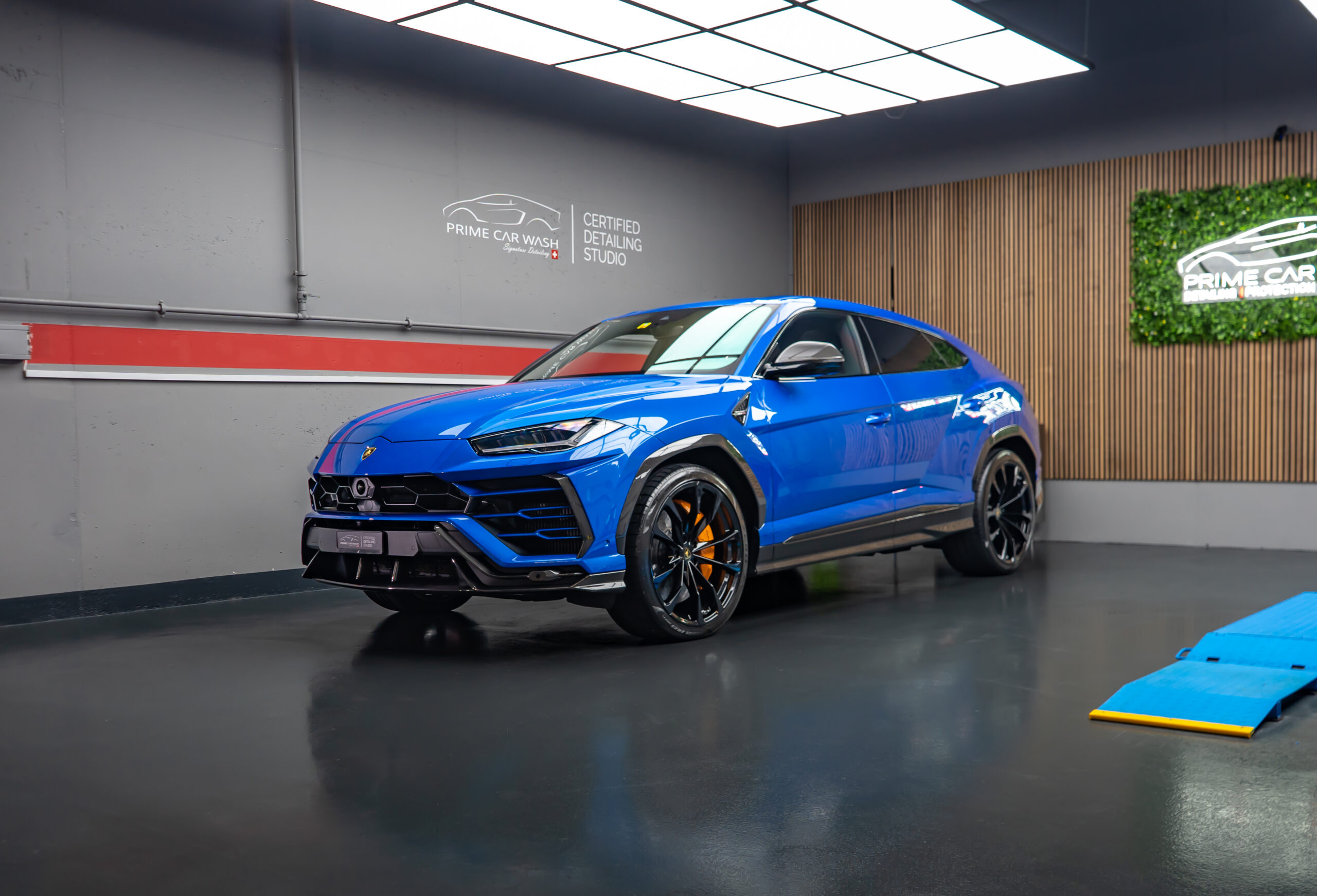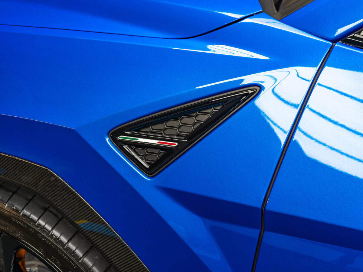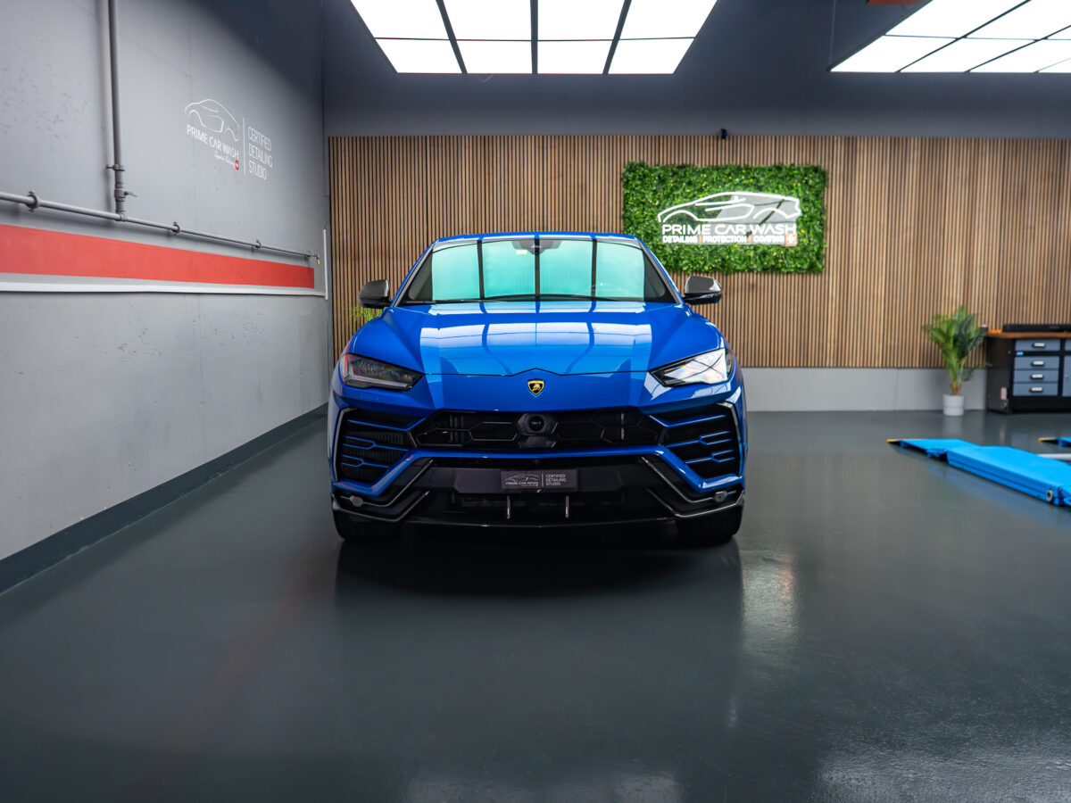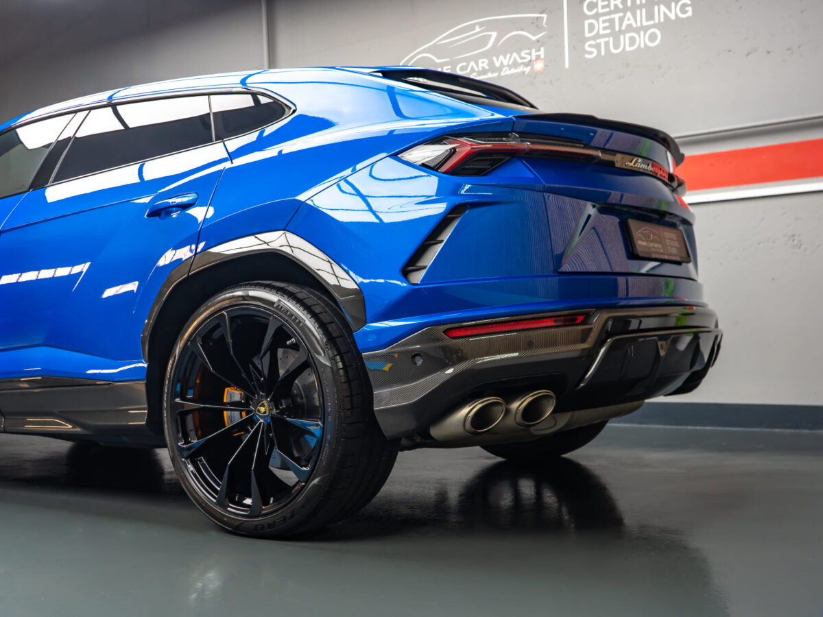 On this Urus, the bumper, fenders, hood and carbon side mirrors were protected with XPEL Ultimate Plus film. Unlike conventional paint protection films with a thickness of 120-150 µ, the Xpel Ultimate Plus with a thickness of 200 µ offers maximum impact and abrasion resistance. It is completely transparent and virtually invisible.