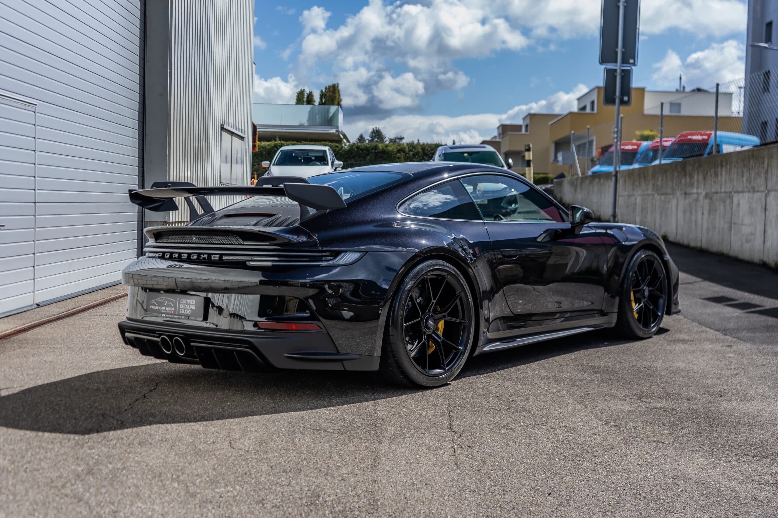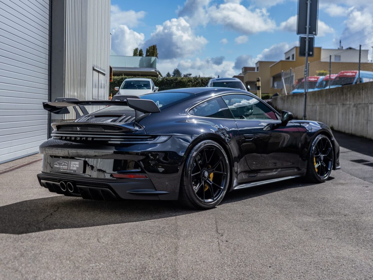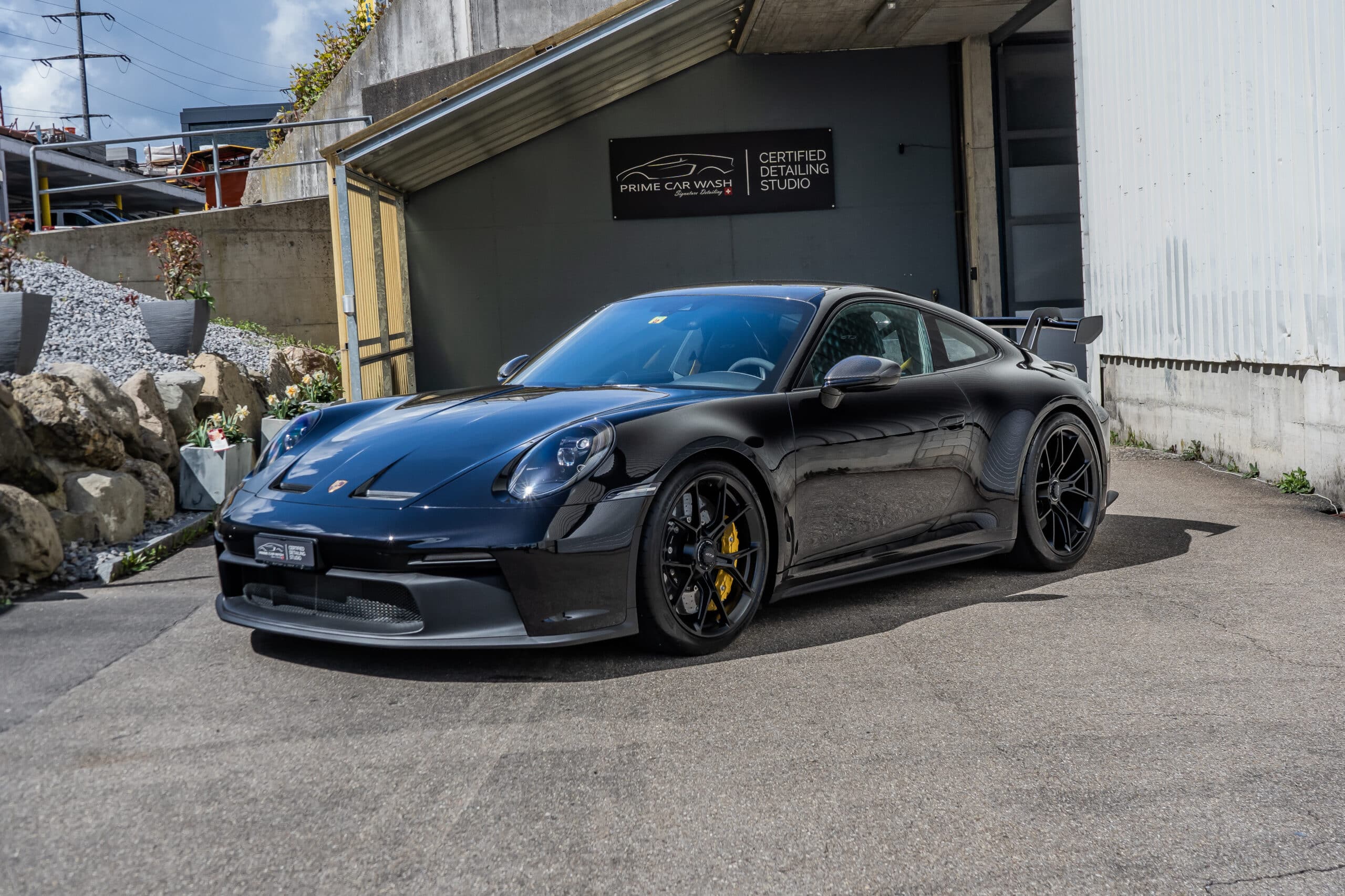 Porsche 992 GT3 Vorwäsche 21 Stufige Handwäsche Detaillierte Felgenreinigung Lackreinigung mit Spezialknete Lackschutzfolierung Das Fahrzeug wurden mit unserer Selbstheilenden Lackschutzfolie geschützt. Keramikbeschichtung Keramikbeschichtung vom Kompletten Fahrzeug inkl. Folie