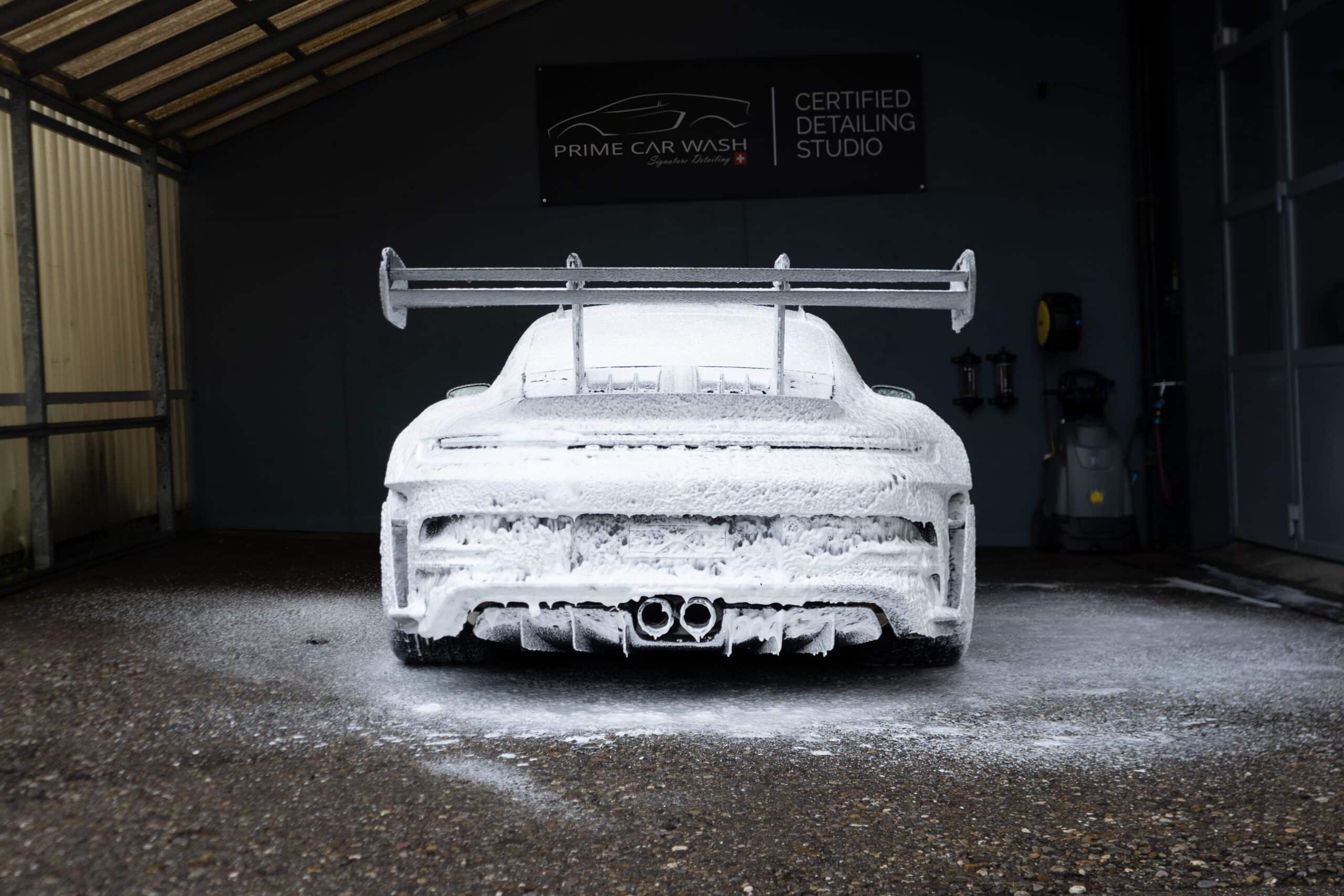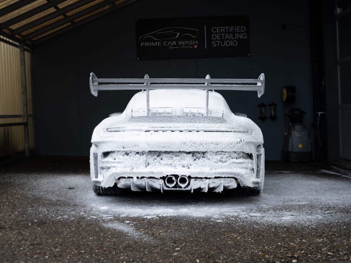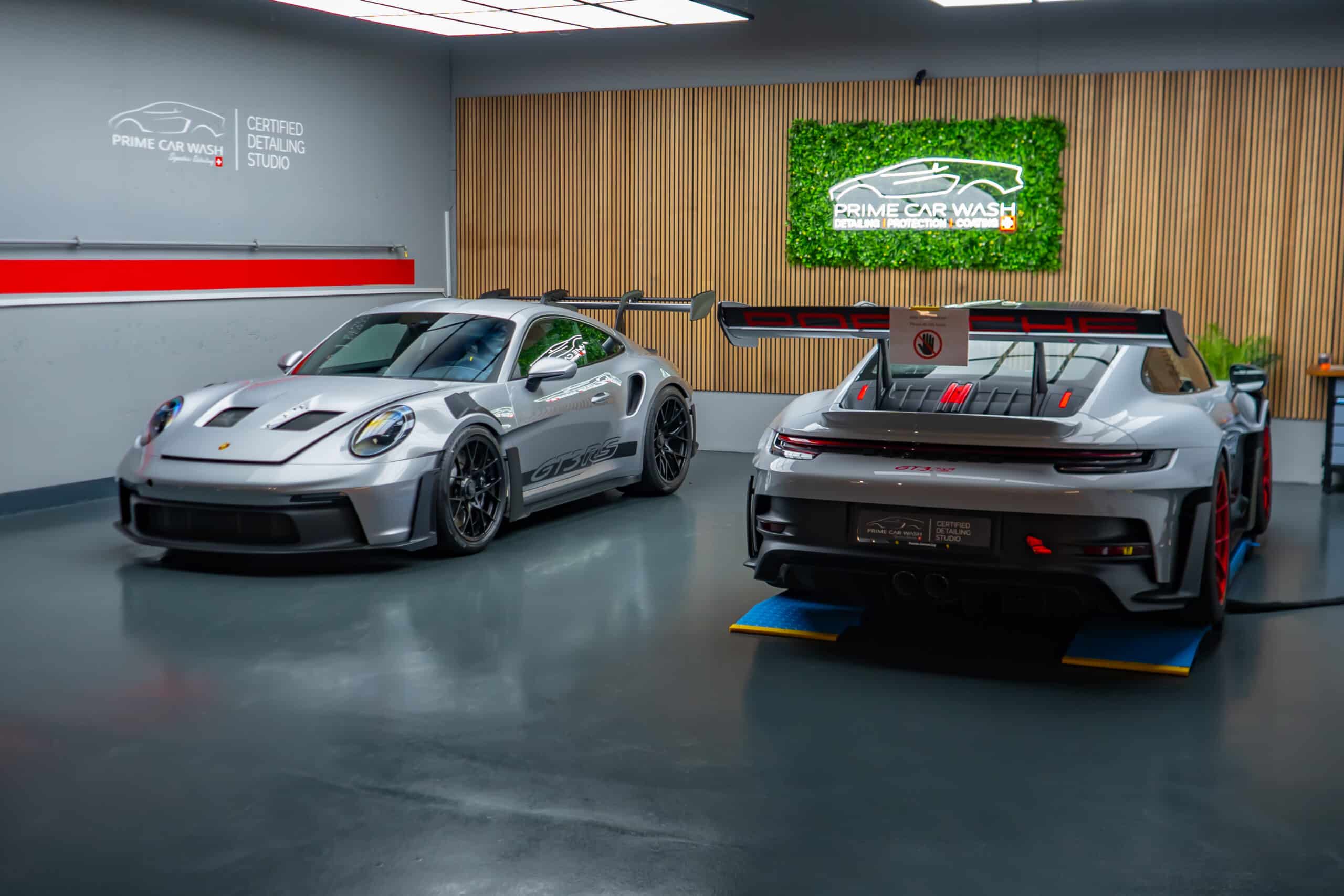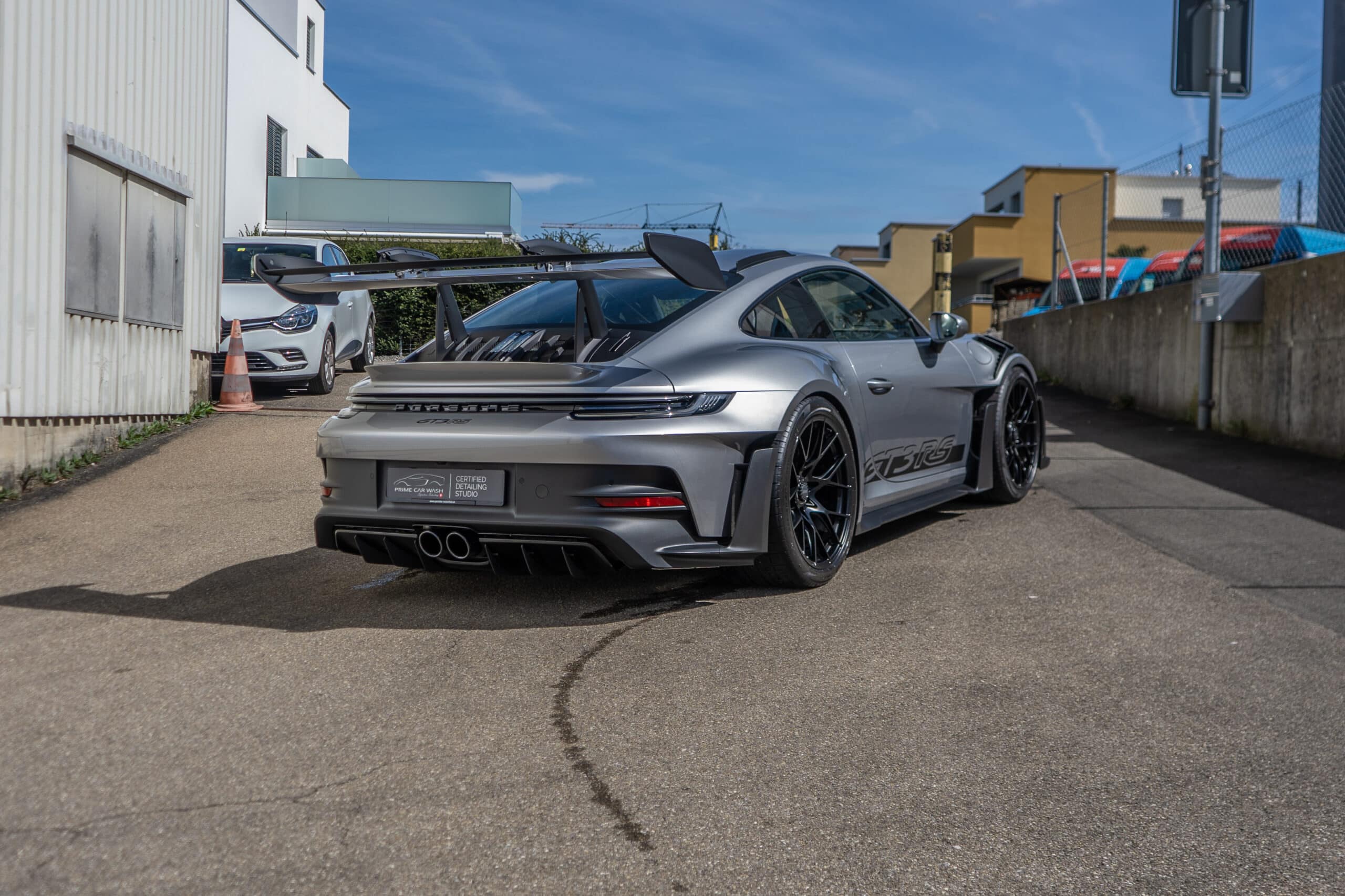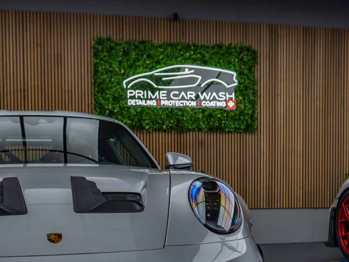 On this Beautiful Porsche 992 GT3 RS in GT-Silver, the bumper, fenders, hood and side mirrors were protected with XPEL Ultimate Plus film. Unlike conventional paint protection films with a thickness of 120-150 µ, the Xpel Ultimate Plus with a thickness of 200 µ offers maximum impact and abrasion resistance. It is completely transparent and virtually invisible.