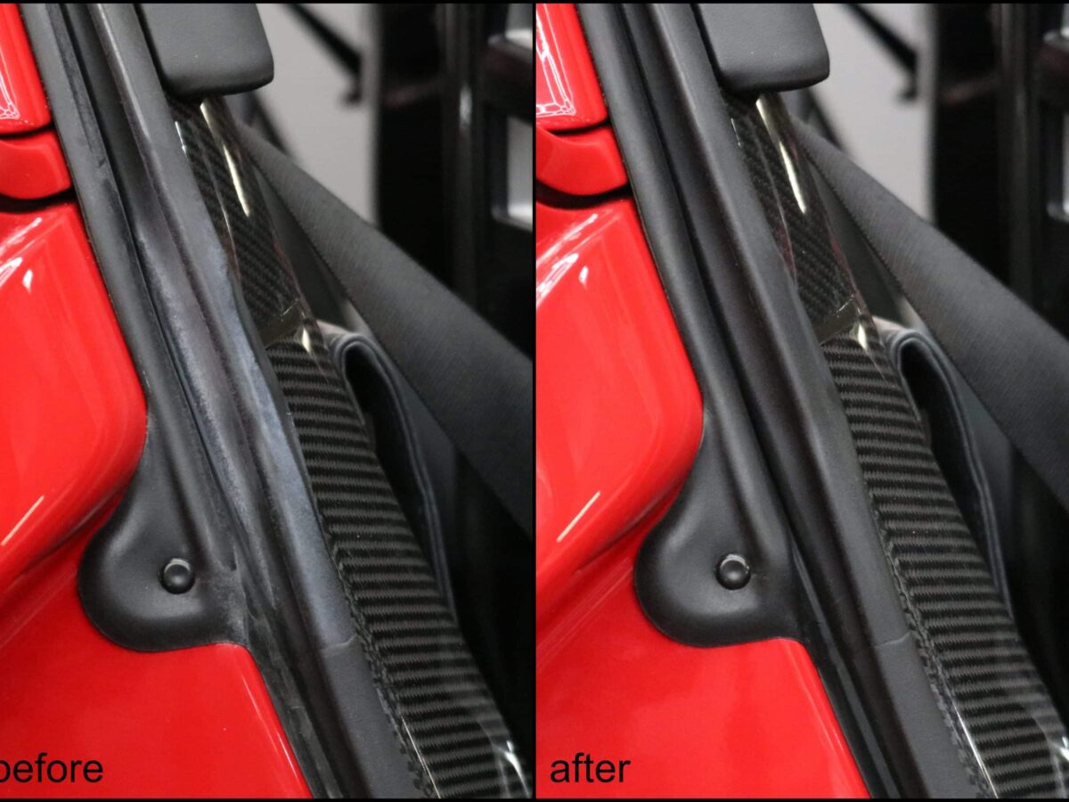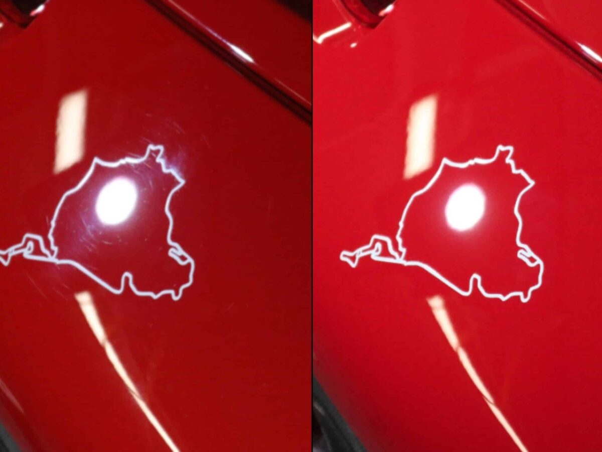 Die Originale 16 Jahre alte Folie wurde entfernt und durch die neue Selbstheilende Lackschutzfolie ersetzt.