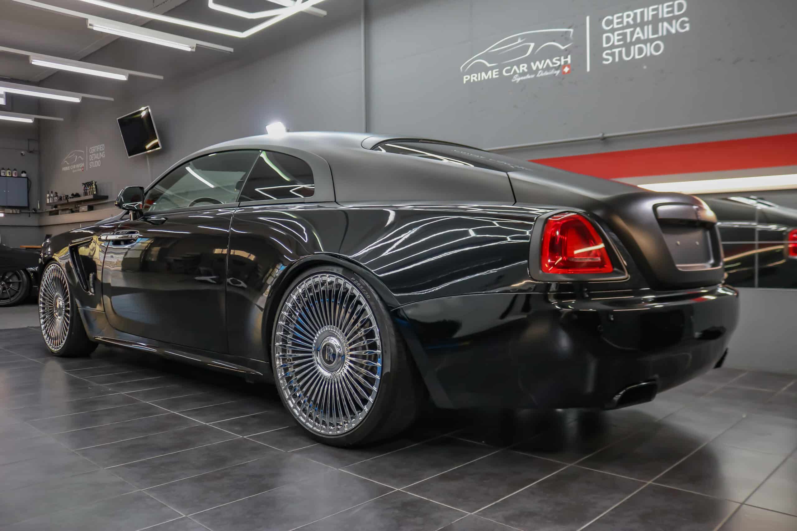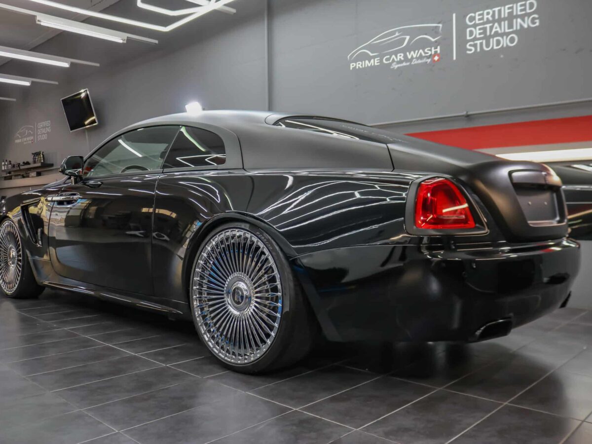 Rolls Royce Wraith Exterieur Detaillierte Handwäsche Neuwagen Keramikbeschichtung Exterieur Kunststoff Keramikbeschichtung Keramikbeschichtung der Windschutzscheibe Interieur Interieur Aufbereitung Kunststoffpflege Lederpflege